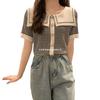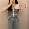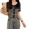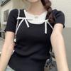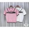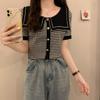 Nuevo Verano 2024 Estilo Coreano Versátil Dulce Reductor de Edad Jersey de Cuello Marinero Ajustado de Manga Corta Top de Punto para Mujer