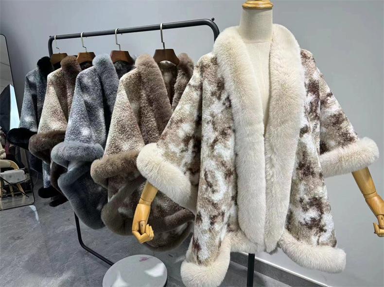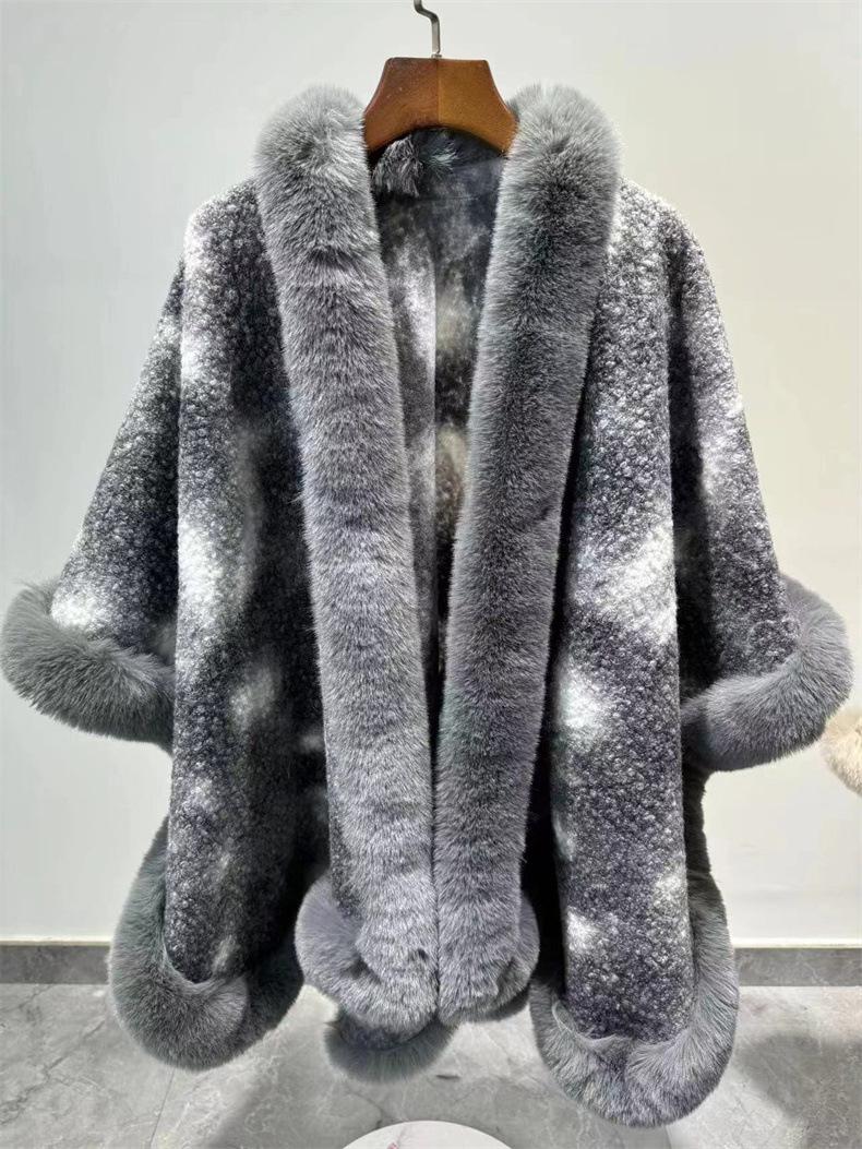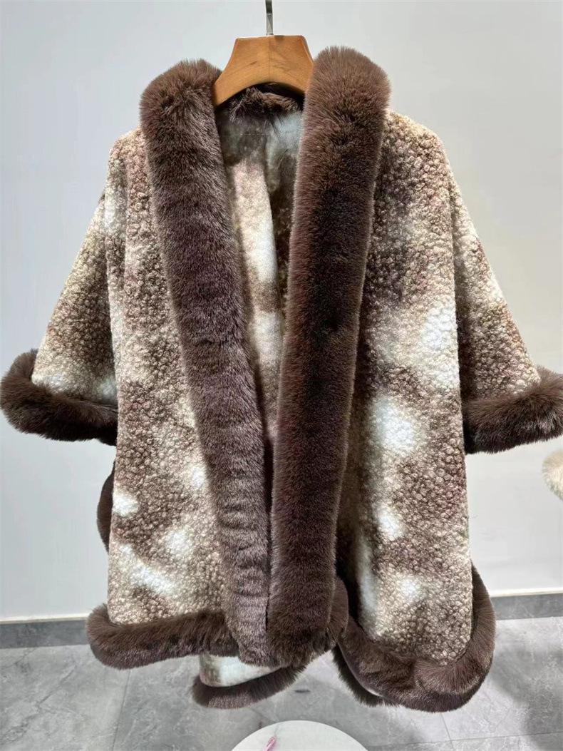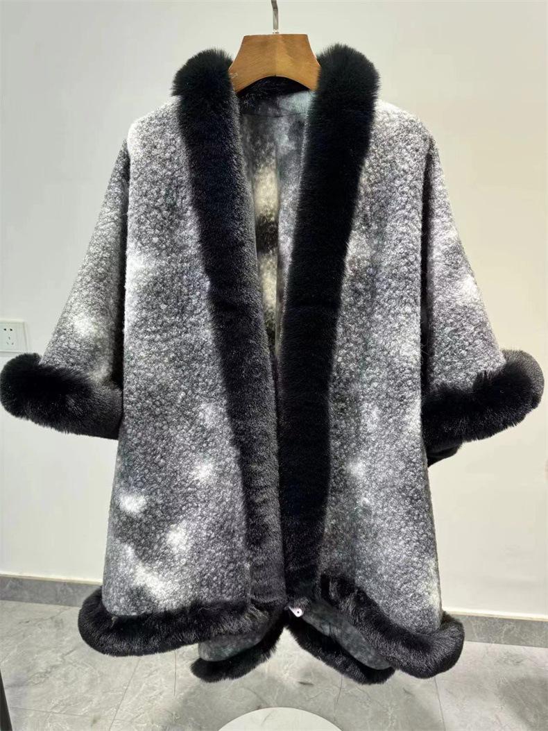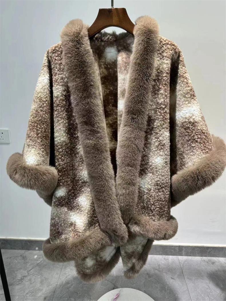 Chal para Mujer Otoño e Invierno Cálido y a la Moda Felpa Combinación de Colores Engrosado Nuevo Abrigo Exterior Capa de Viaje