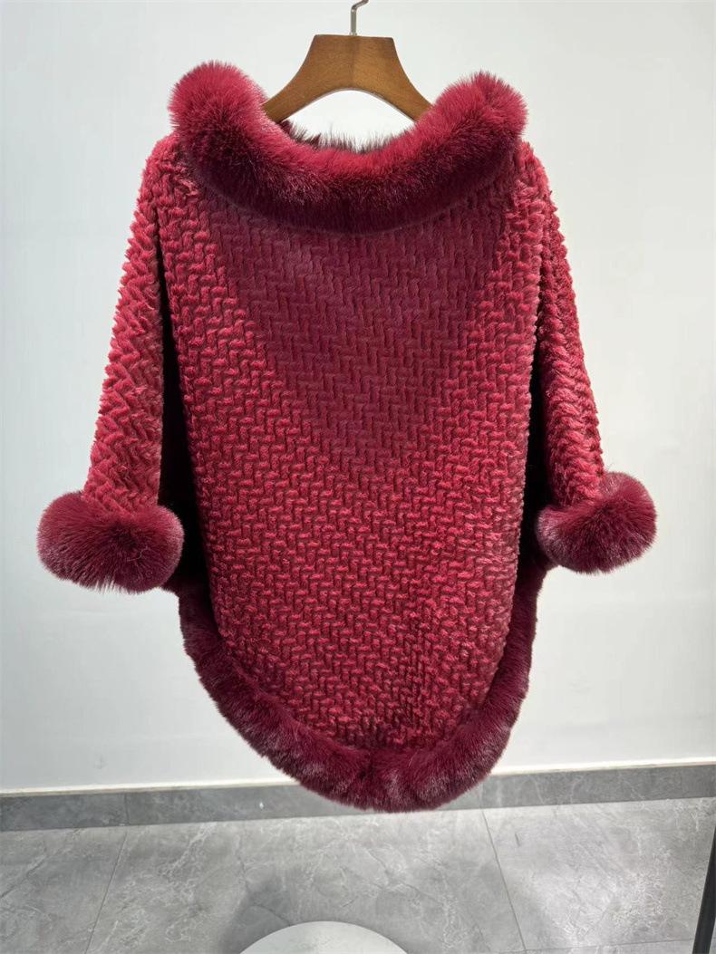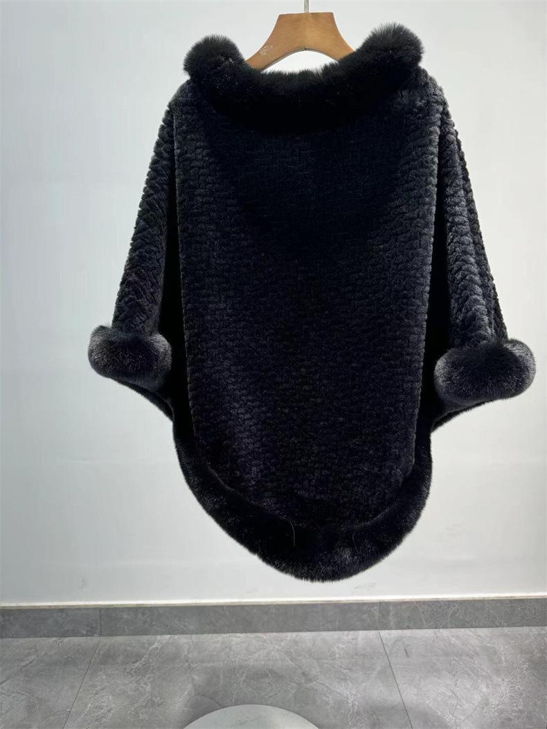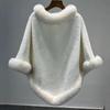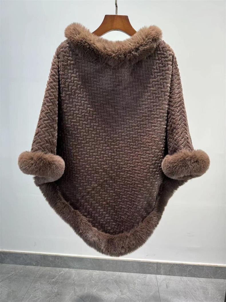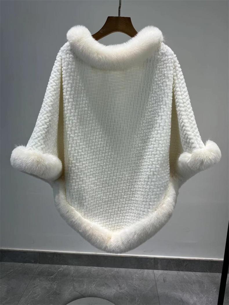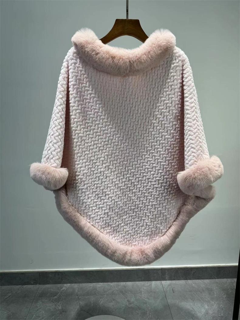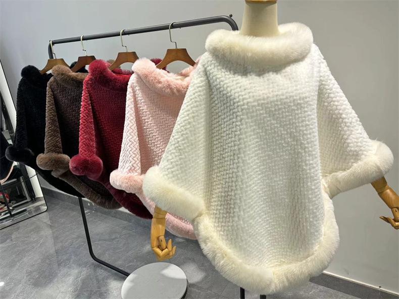 Chaleco Chal de Cuello de Piel de Conejo Imitación Suelto Europeo y Americano Transfronterizo Diseño de Jersey de Moda de Color Puro Capa de Talla Grande