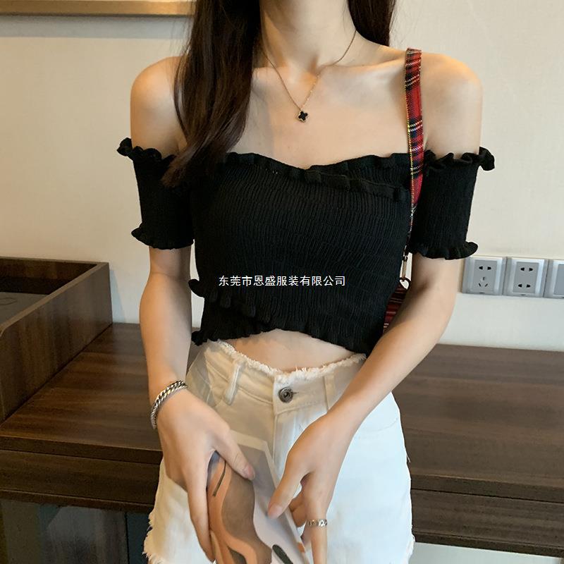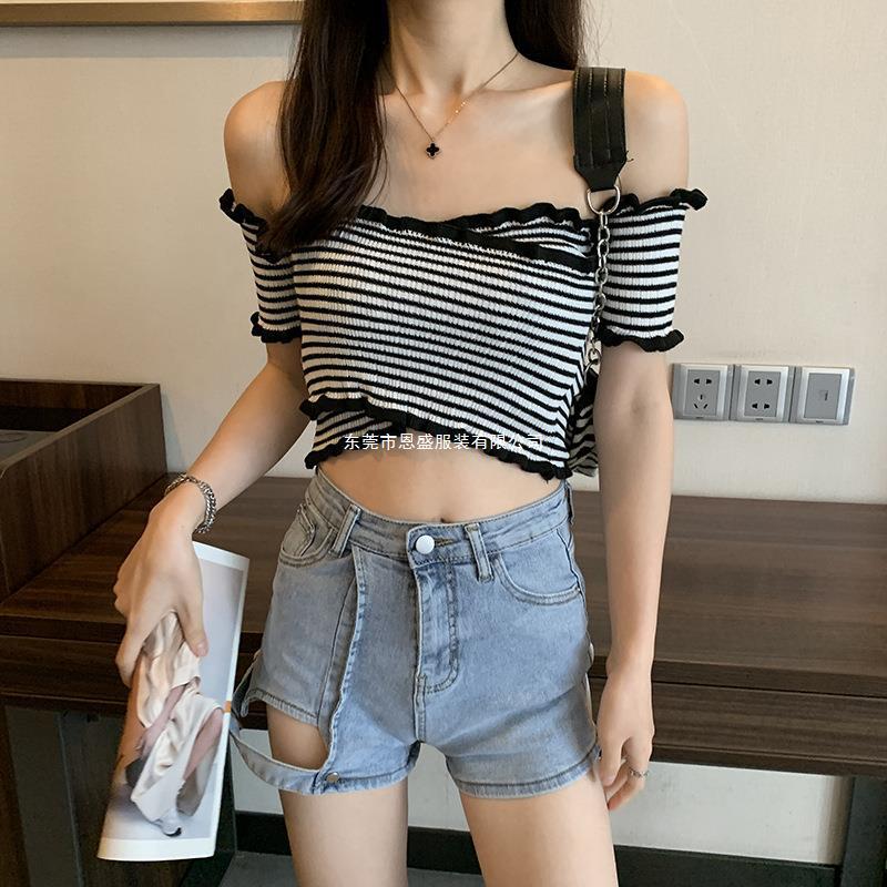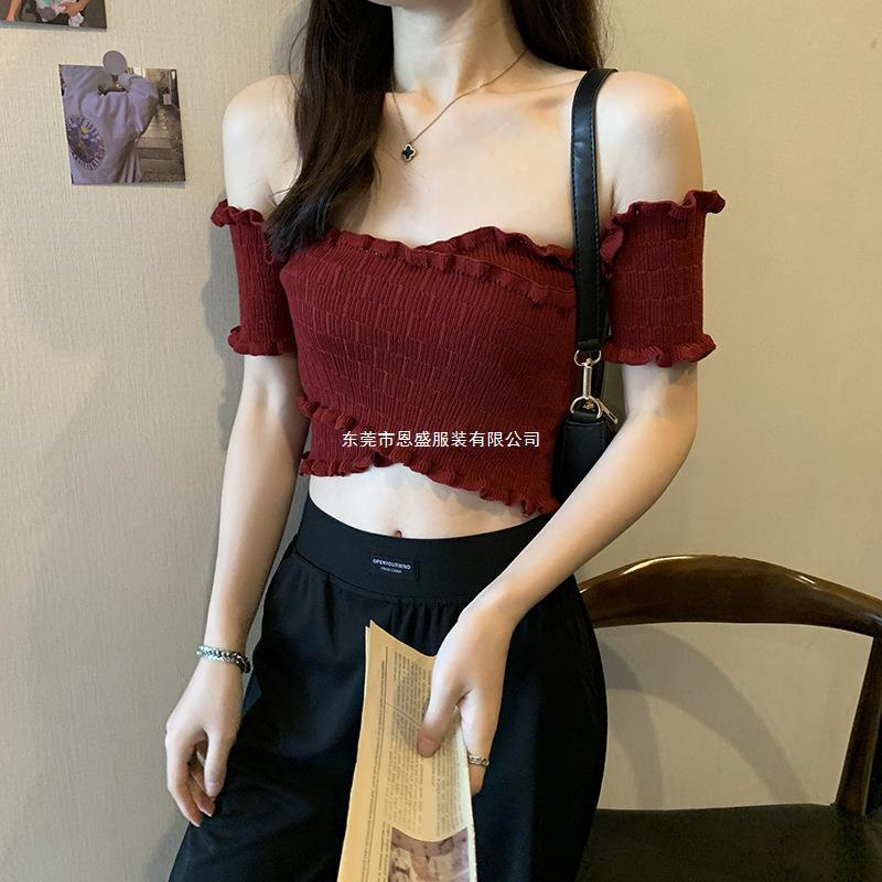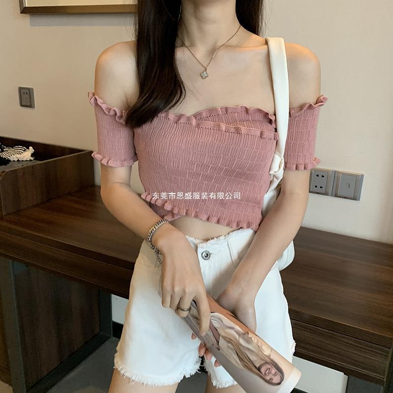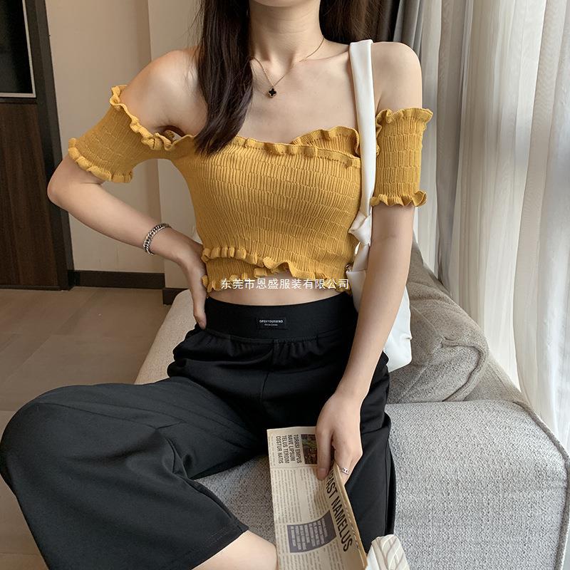 Suéter de Punto Manga Corta 2024 Verano Nuevo Diseño Corto Cruzado Sexy Elegante Un Hombro Camiseta Top para Mujer
