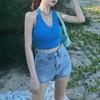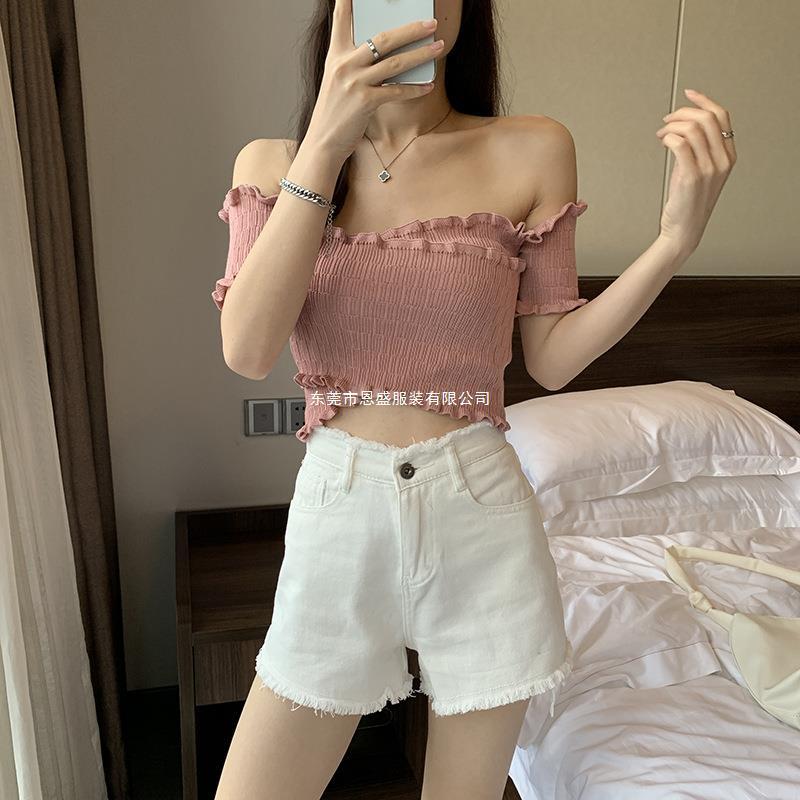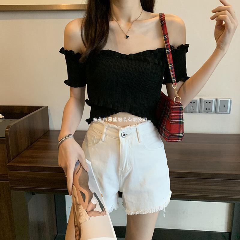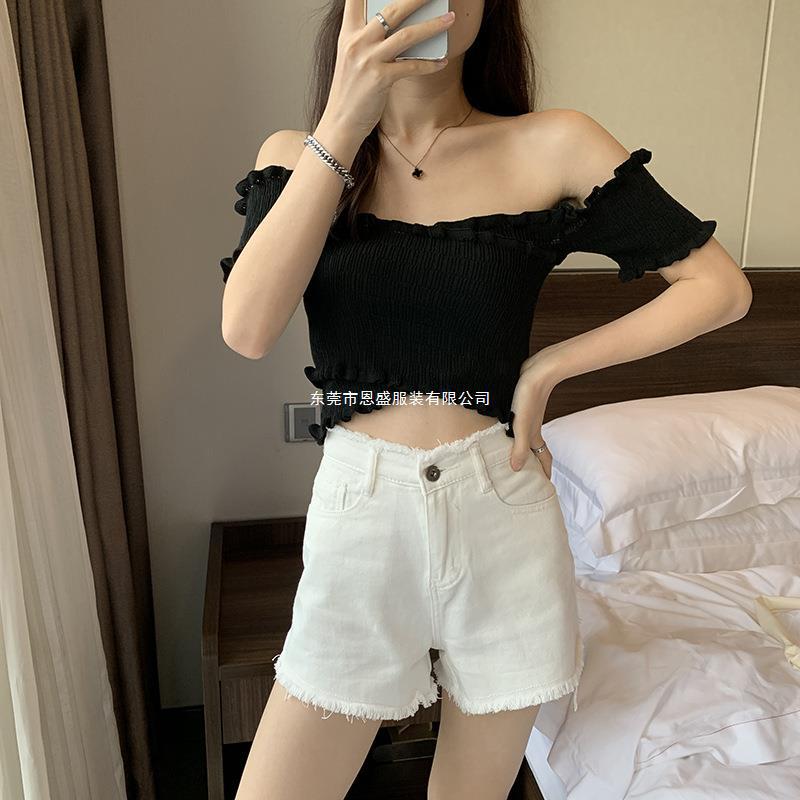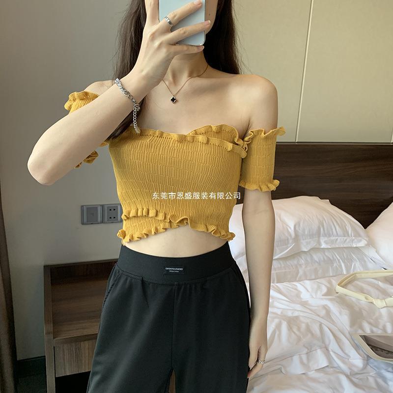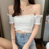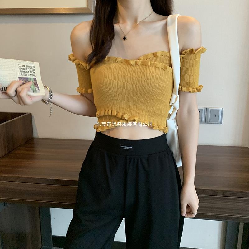 Suéter de Punto Manga Corta 2024 Verano Nuevo Diseño Corto Cruzado Sexy Elegante Un Hombro Camiseta Top para Mujer
