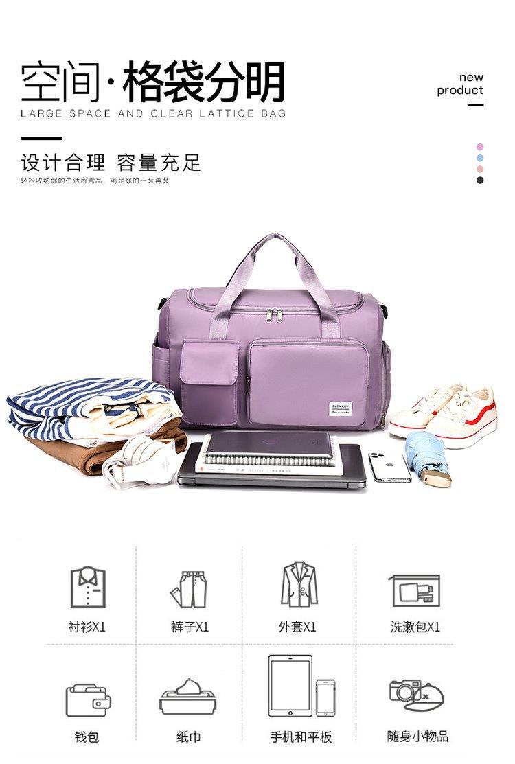 Bolsa de equipaje portátil de gran capacidad para distancias cortas, bolsa de viaje de negocios, bolsa deportiva de fitness, bolso cruzado separado para hombres, seco y húmedo