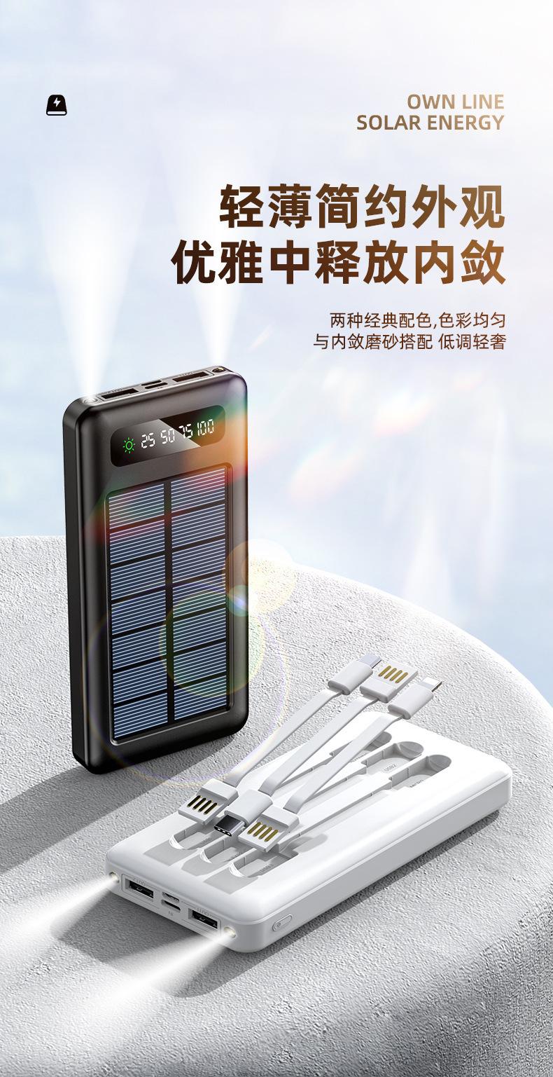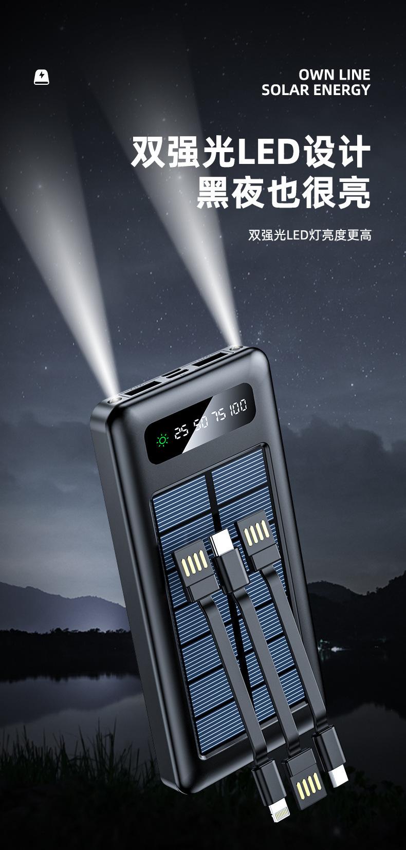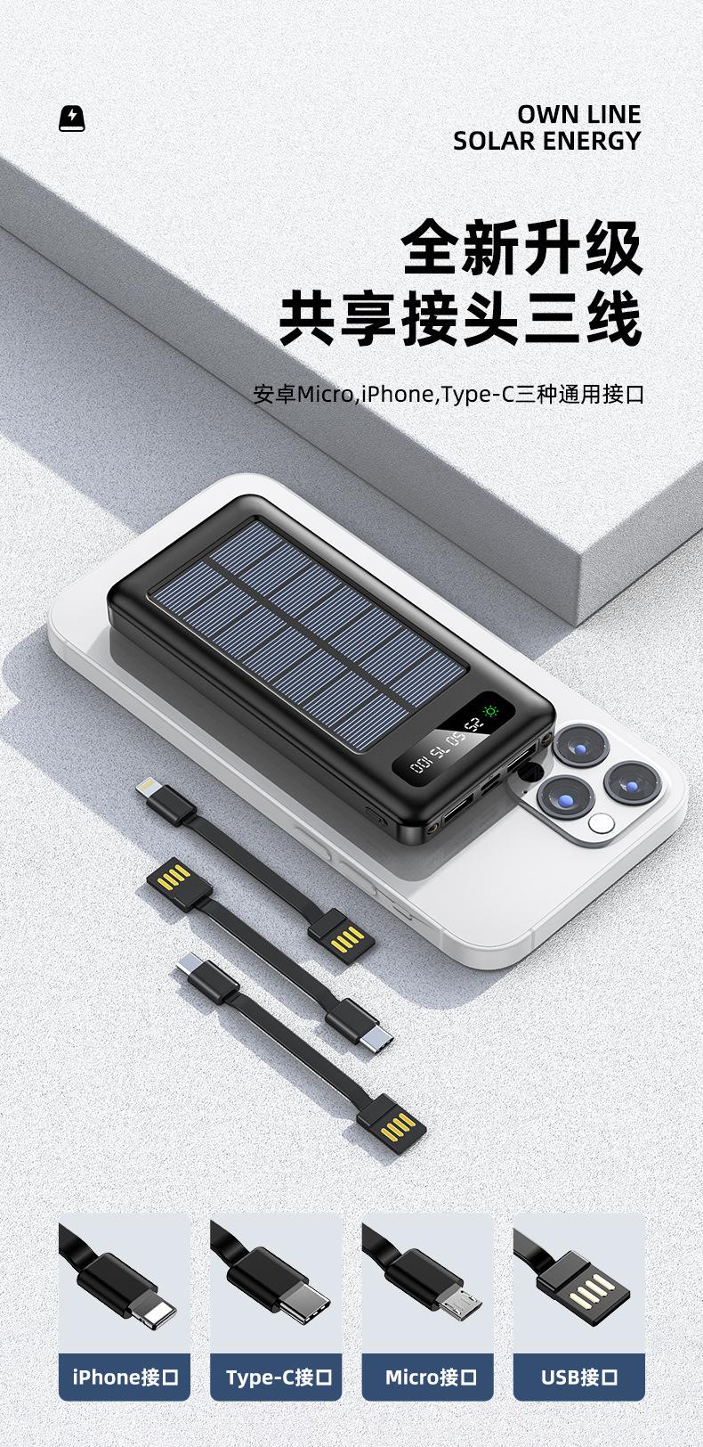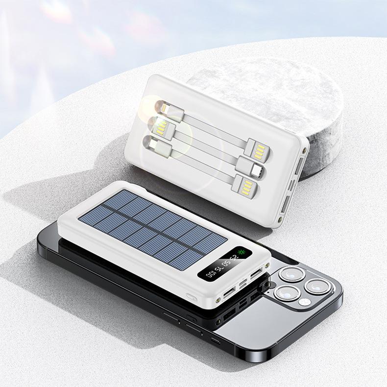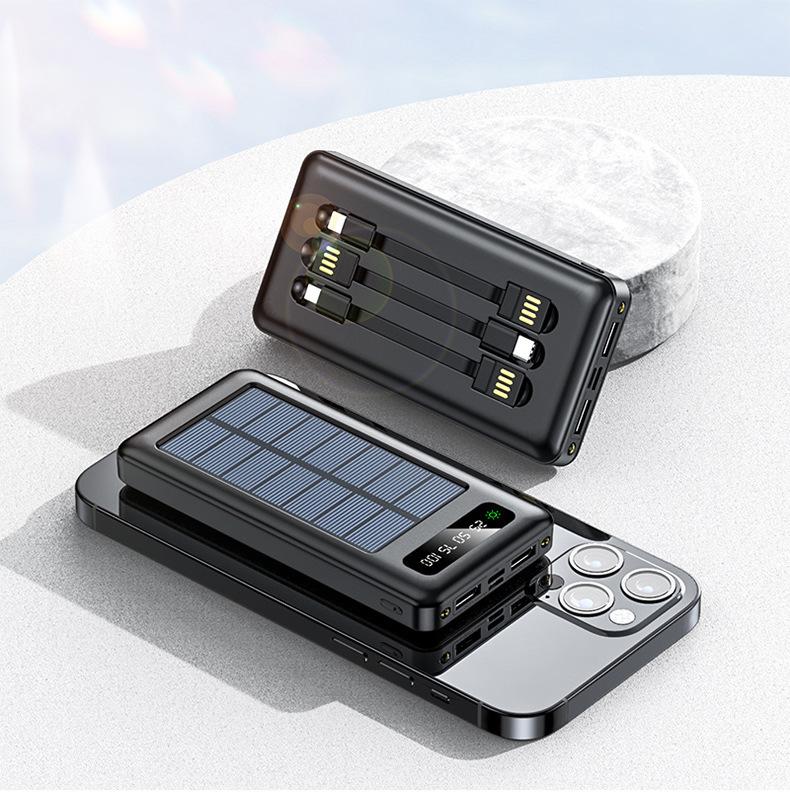 Energía Solar Autocinturón Pantalla Digital Tesoro de Carga 30000mAh Banco de Energía Móvil Set de Regalo Portátil Extraíble Cuatro Cables