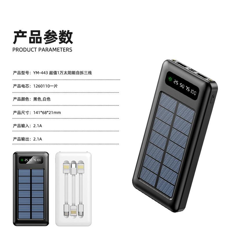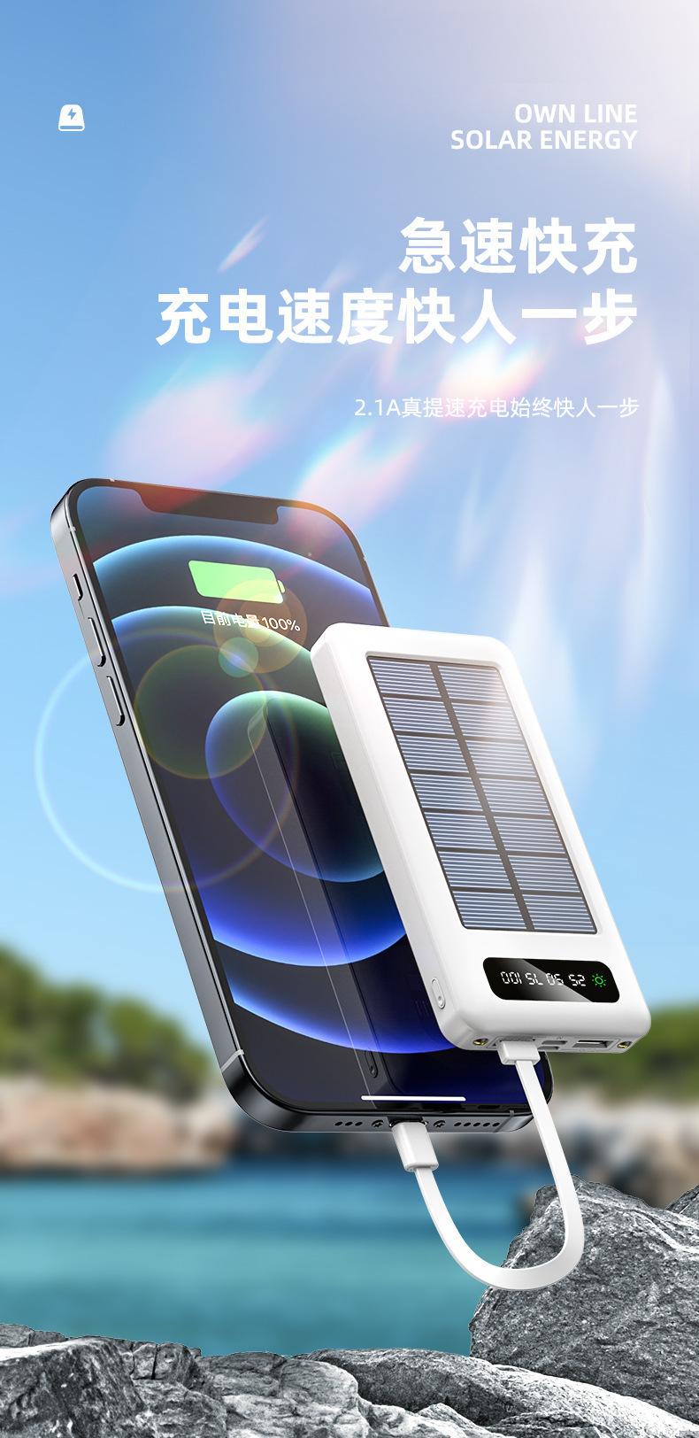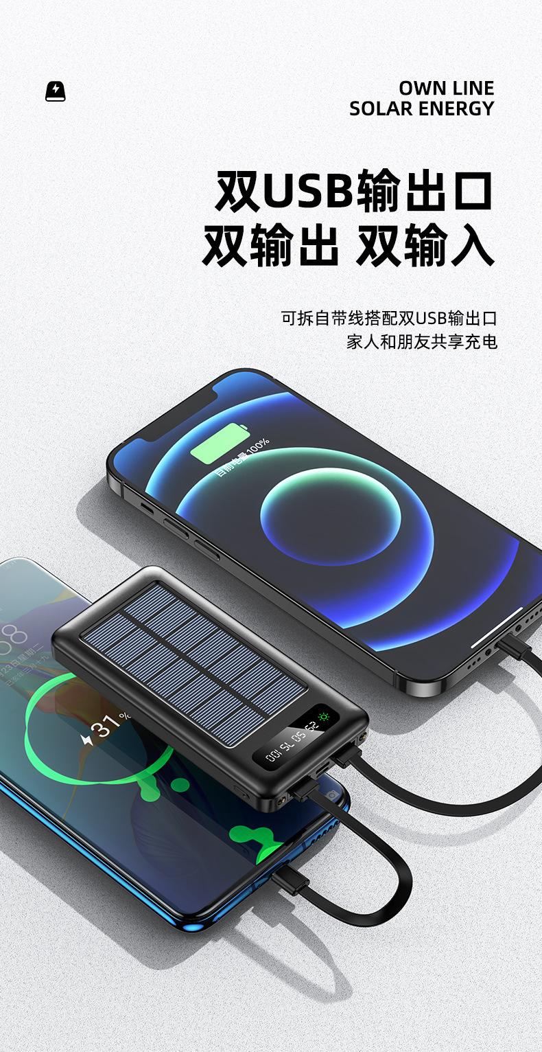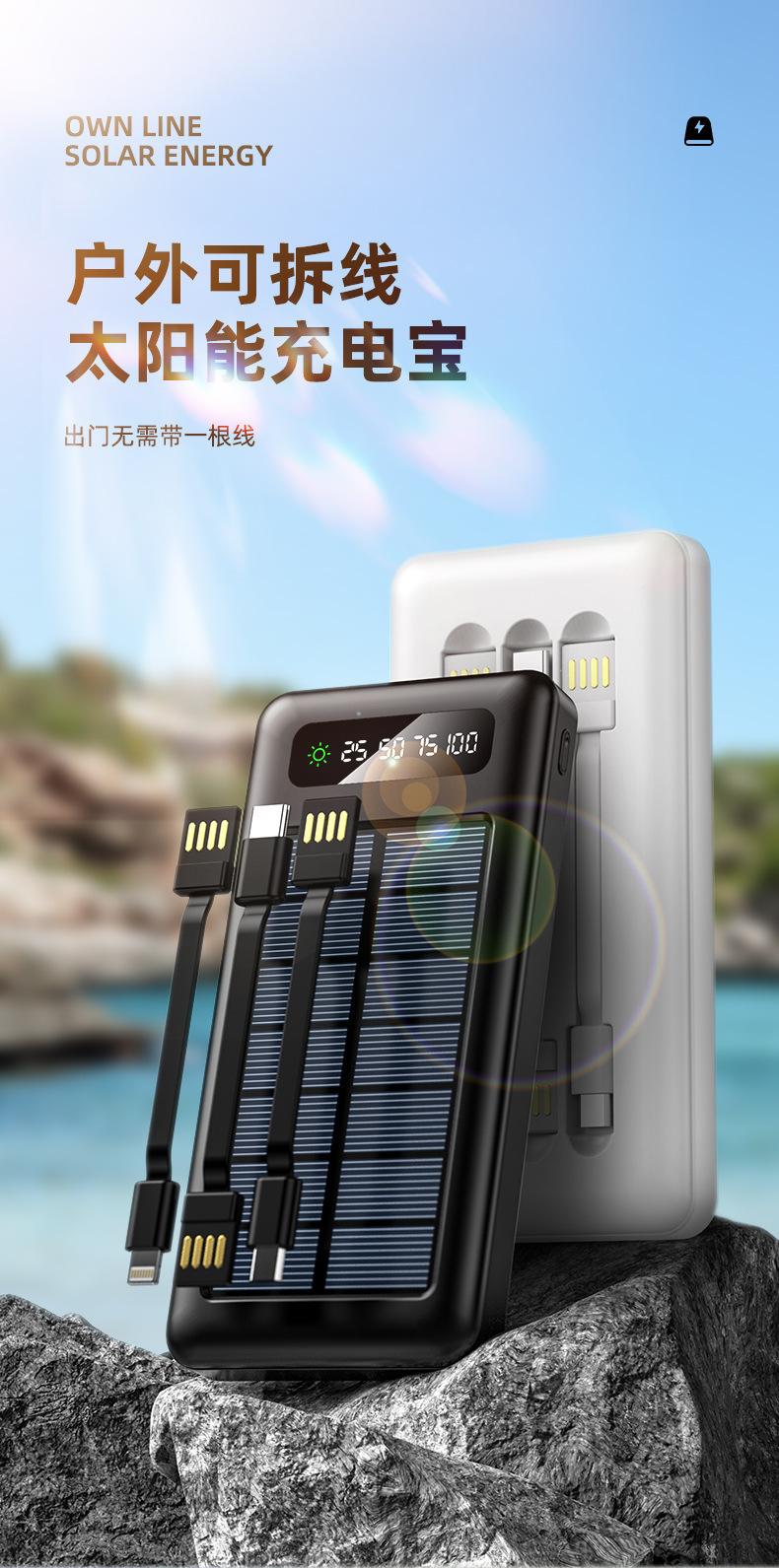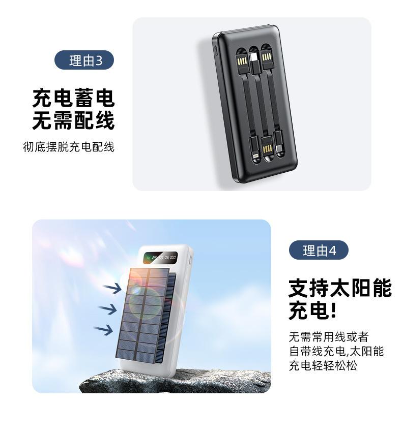 Energía Solar Autocinturón Pantalla Digital Tesoro de Carga 30000mAh Banco de Energía Móvil Set de Regalo Portátil Extraíble Cuatro Cables