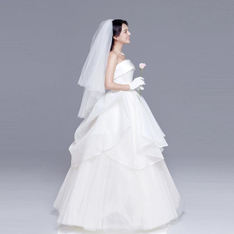 Vestido de Novia Ligero Estilo Francés, Vestido de Princesa sin Tirantes, Elegante Vestido Principal de Boda para Sesión de Fotos de Pareja