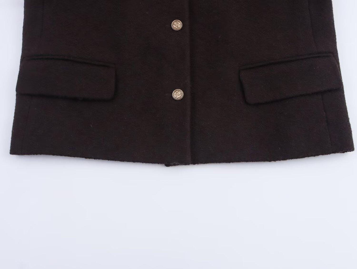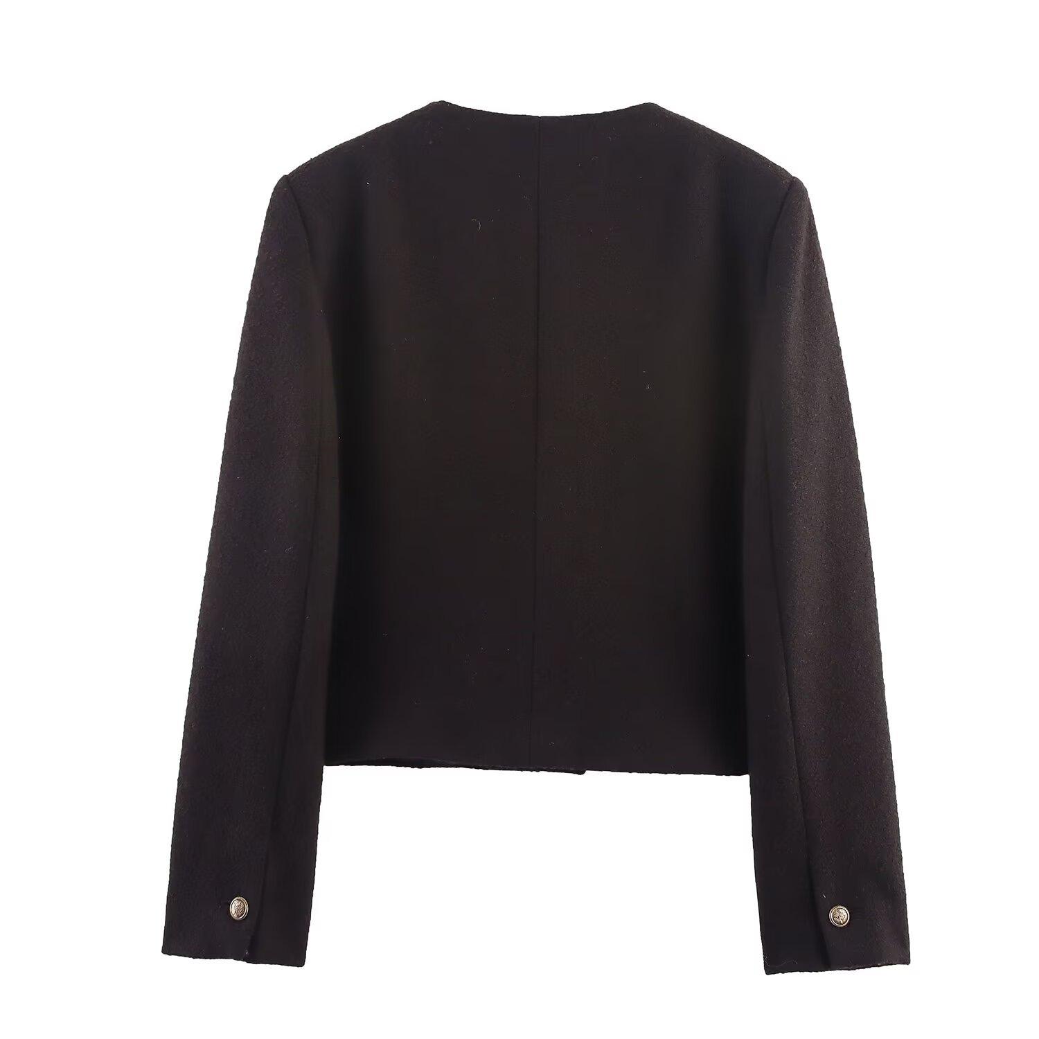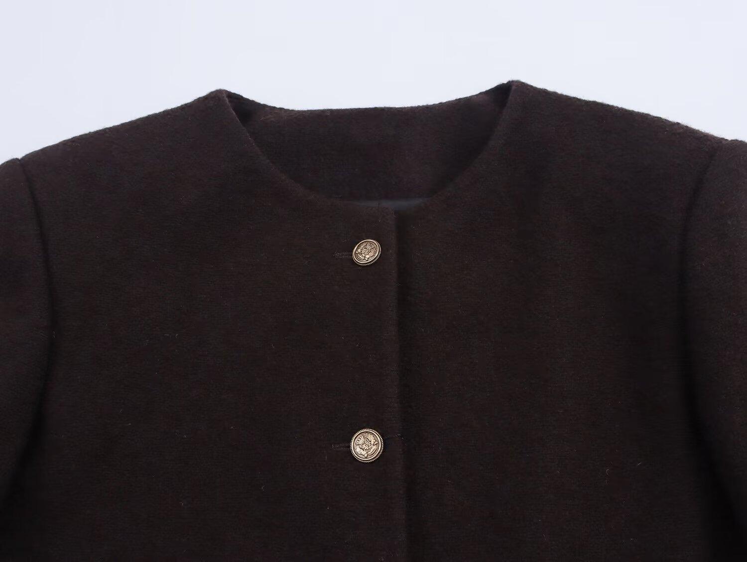 2025 Otoño Nuevo Ropa de Mujer Transfronteriza Europea y Americana Estilo Pequeña Fragancia Abrigo Corto de Lana de Cuello Redondo w103 90191