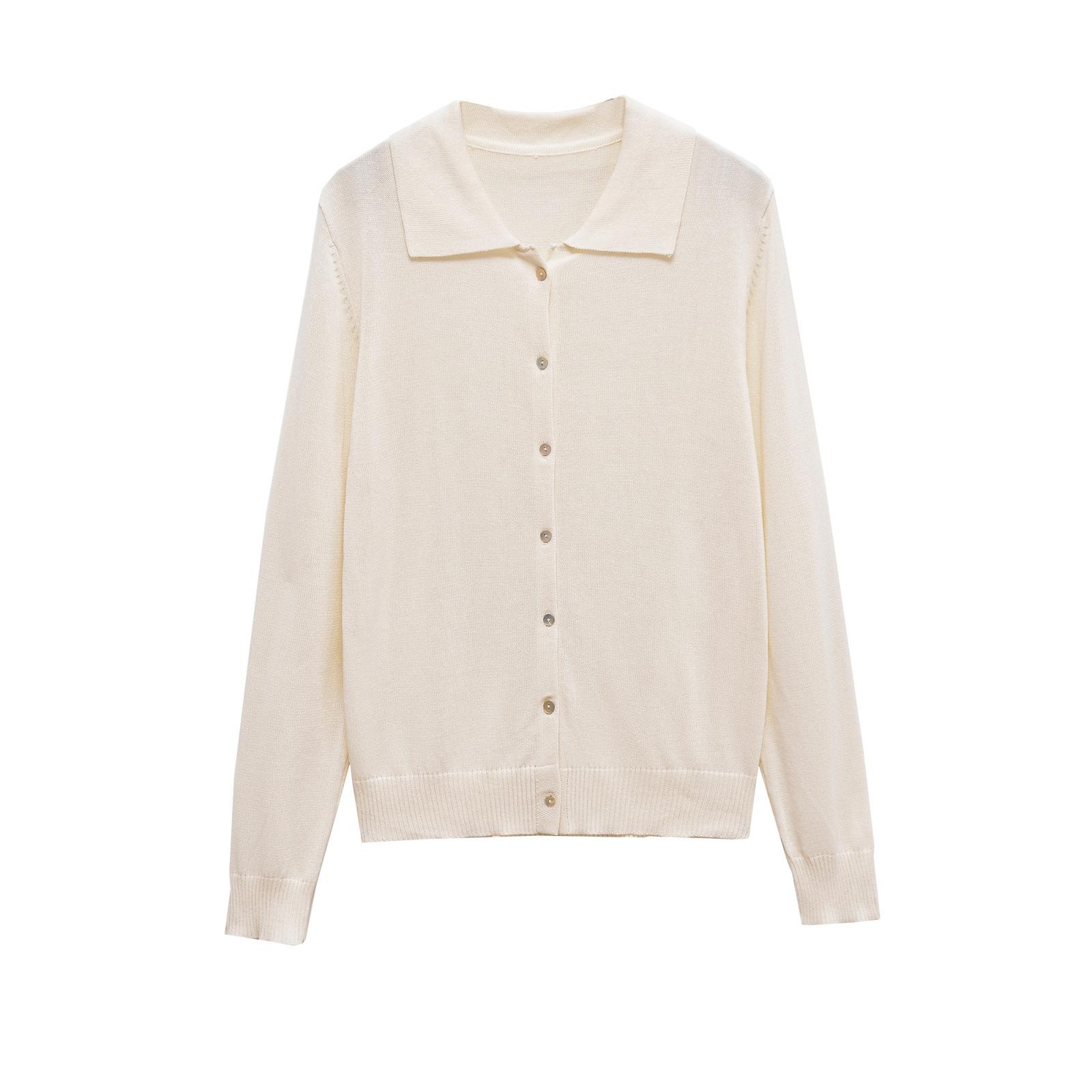 2025 Otoño Nuevo Moda Europea y Americana Transfronteriza para Mujer Cuello Polo Manga Larga Tejido Liso Top Pequeño w08 26248