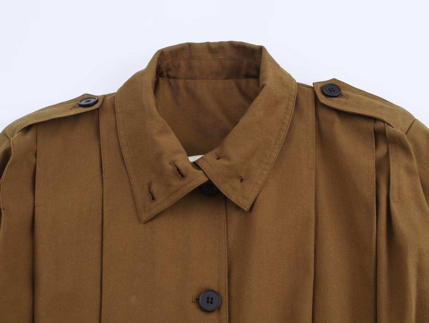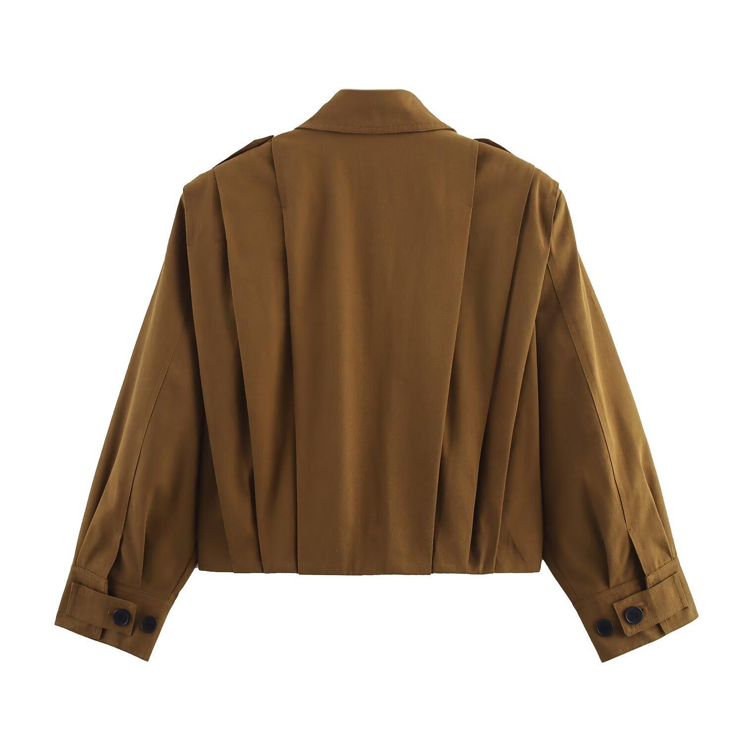 Otoño 2025 Nuevo Europeo y Americano Transfronterizo Moda Urbana para Mujer Chaqueta Casual Plisada con Cinturón w021 82648