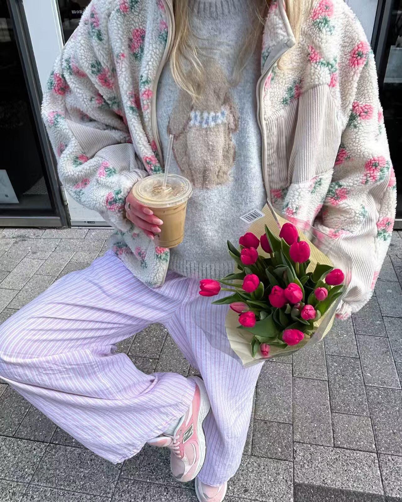 2025 Otoño/Invierno Nuevo Europeo y Americano Transfronterizo Moda Urbana para Mujer Chaqueta Abrigo de Felpa Jacquard w034 25169
