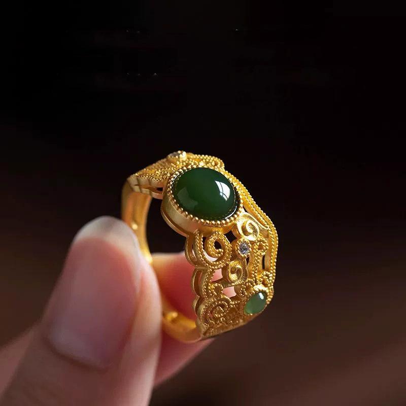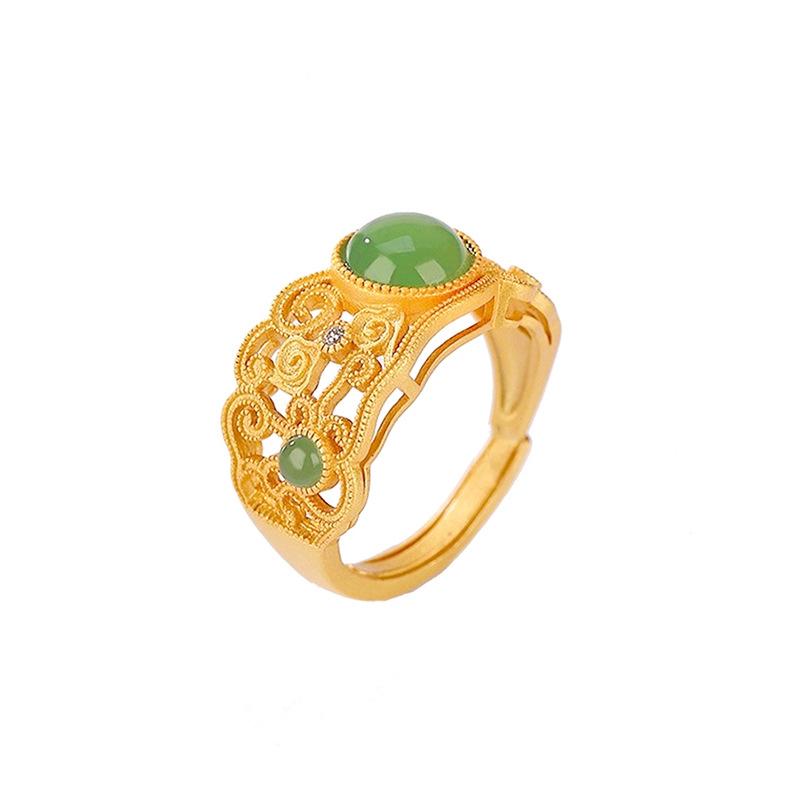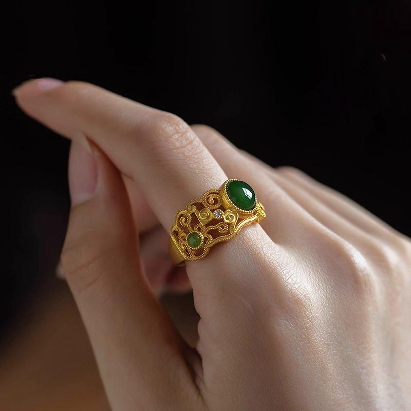 Anillo de Jade con Patrón de Nubes Calado Plateado Estilo Retro Chino de Alta Gama Atmosférico de Alto Grado Venta Directa de Fábrica