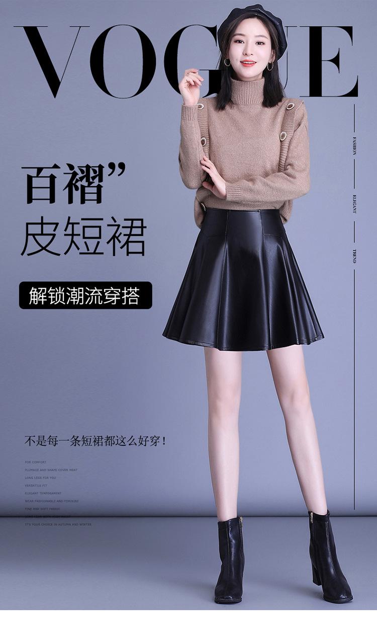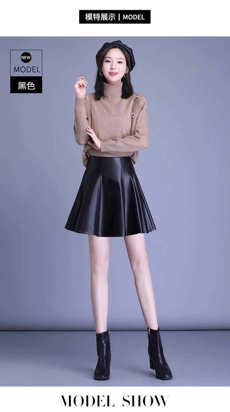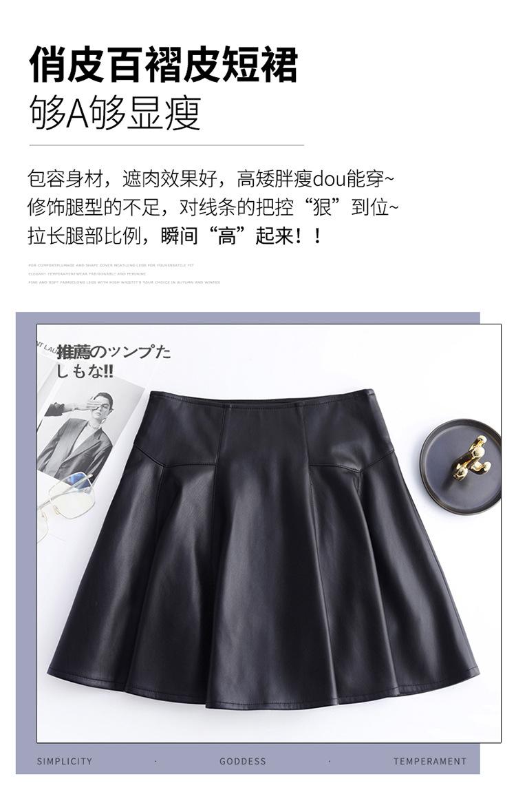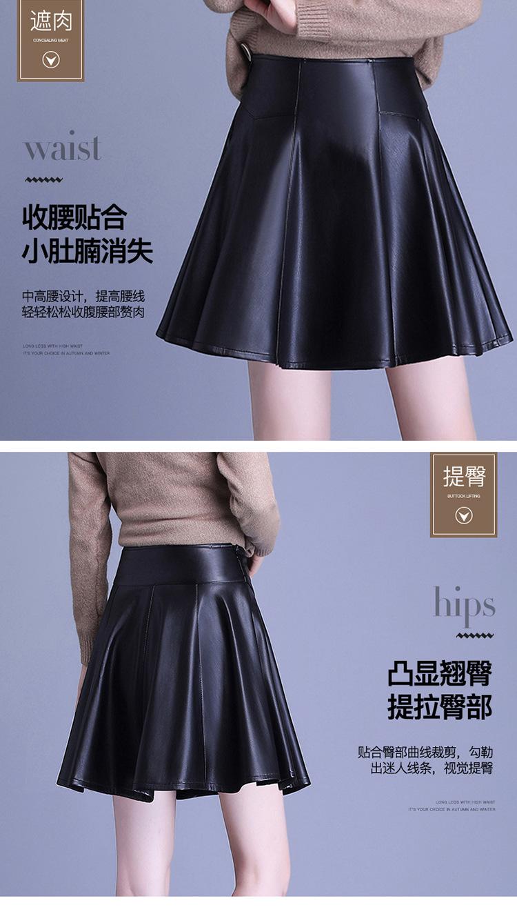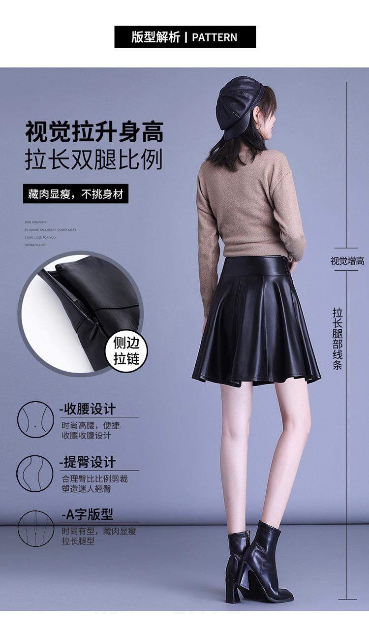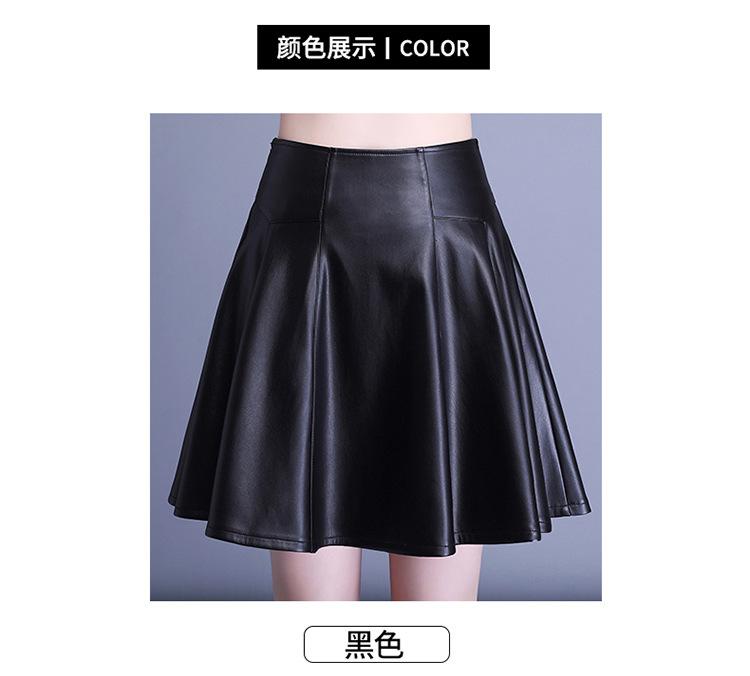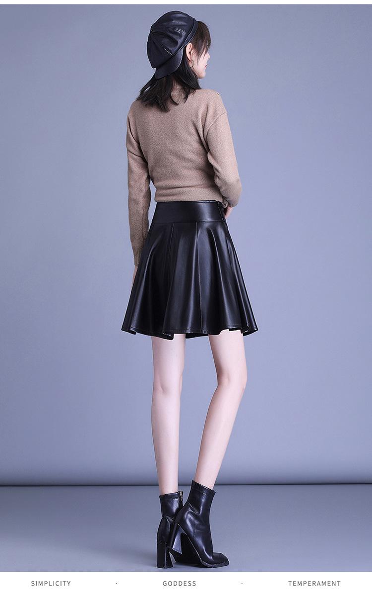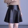 2025 Nueva Falda de Cuero PU de Otoño e Invierno para Mujer de Talla Grande Cintura Alta Delgada Elegante Falda Plisada Pequeña Acampanada