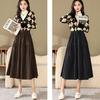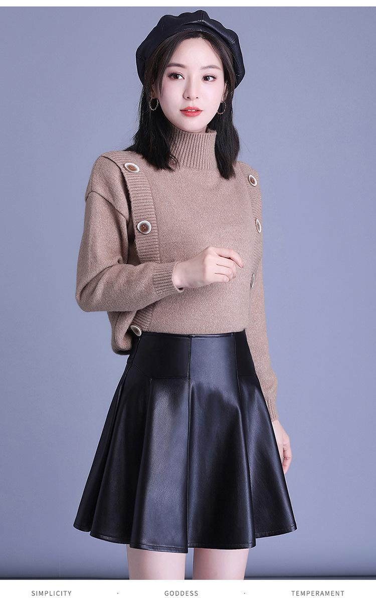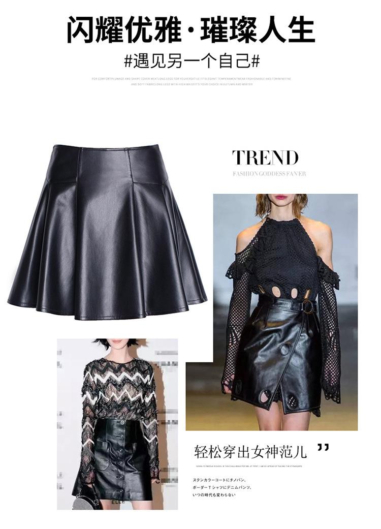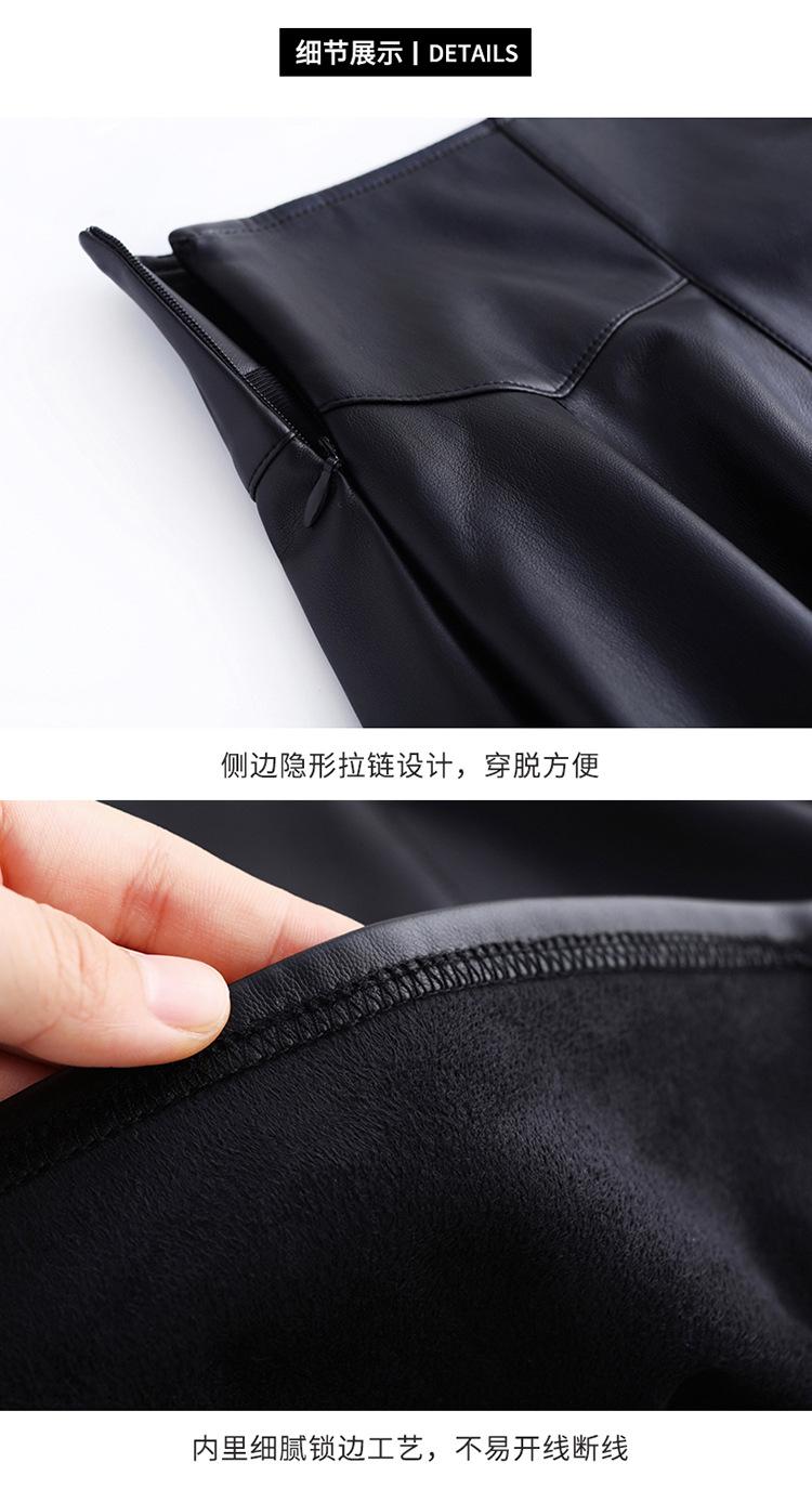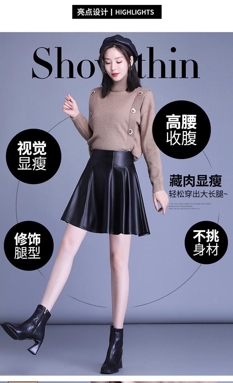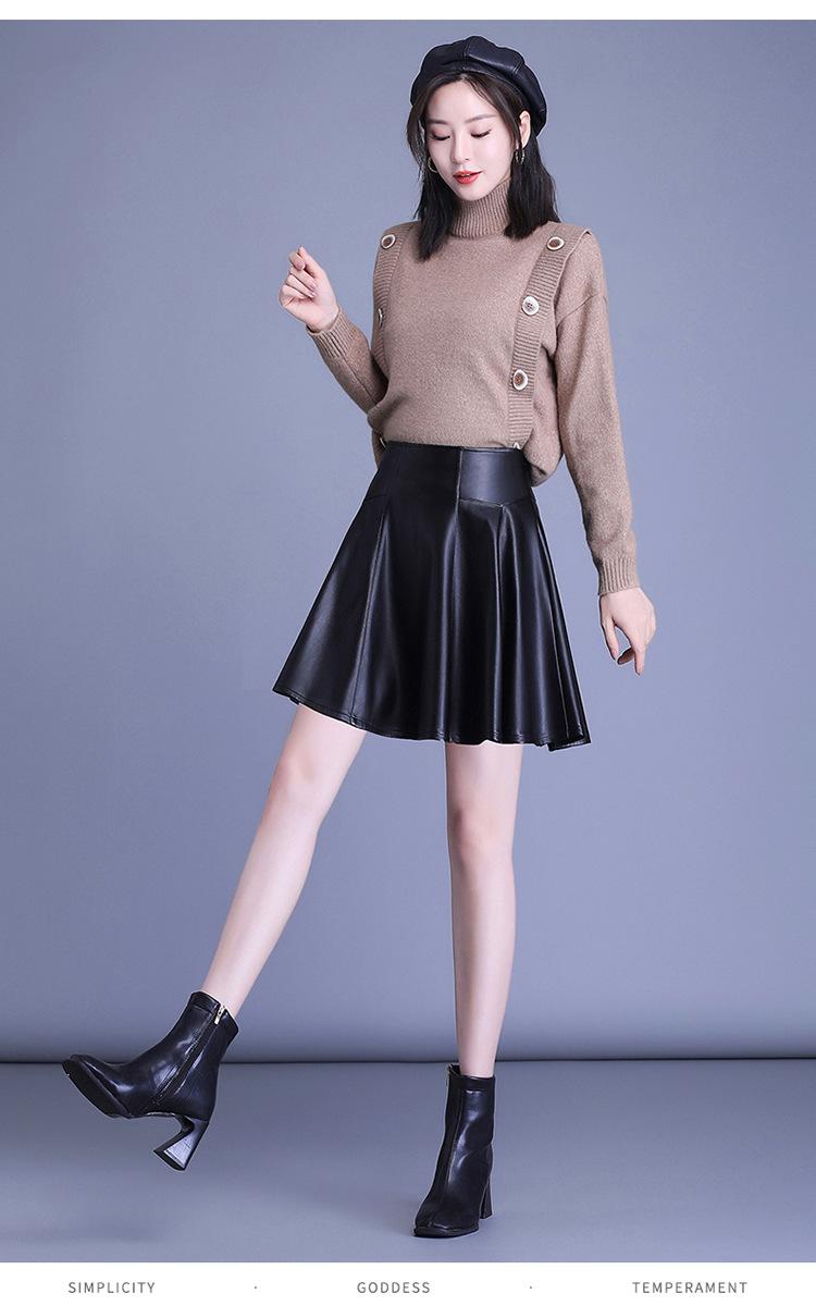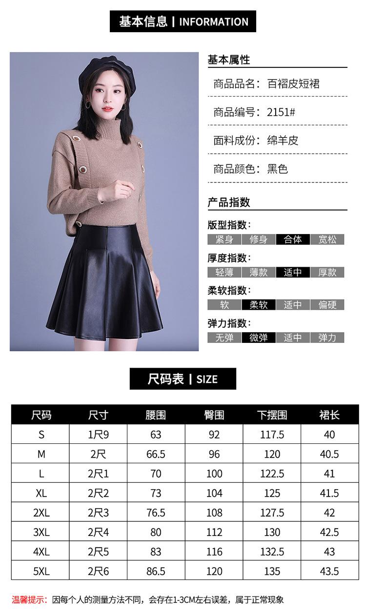 2025 Nueva Falda de Cuero PU de Otoño e Invierno para Mujer de Talla Grande Cintura Alta Delgada Elegante Falda Plisada Pequeña Acampanada