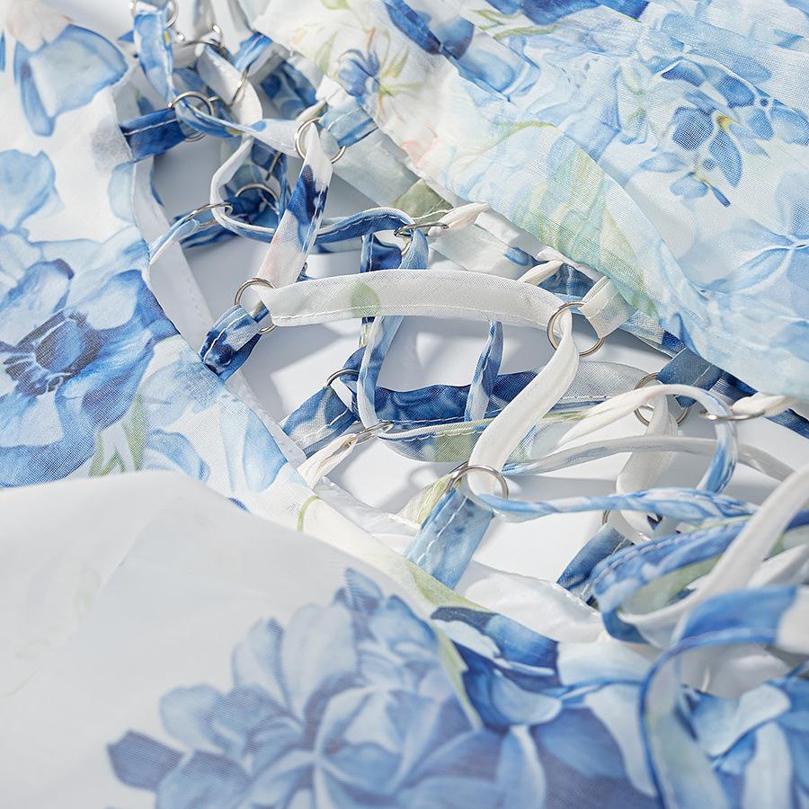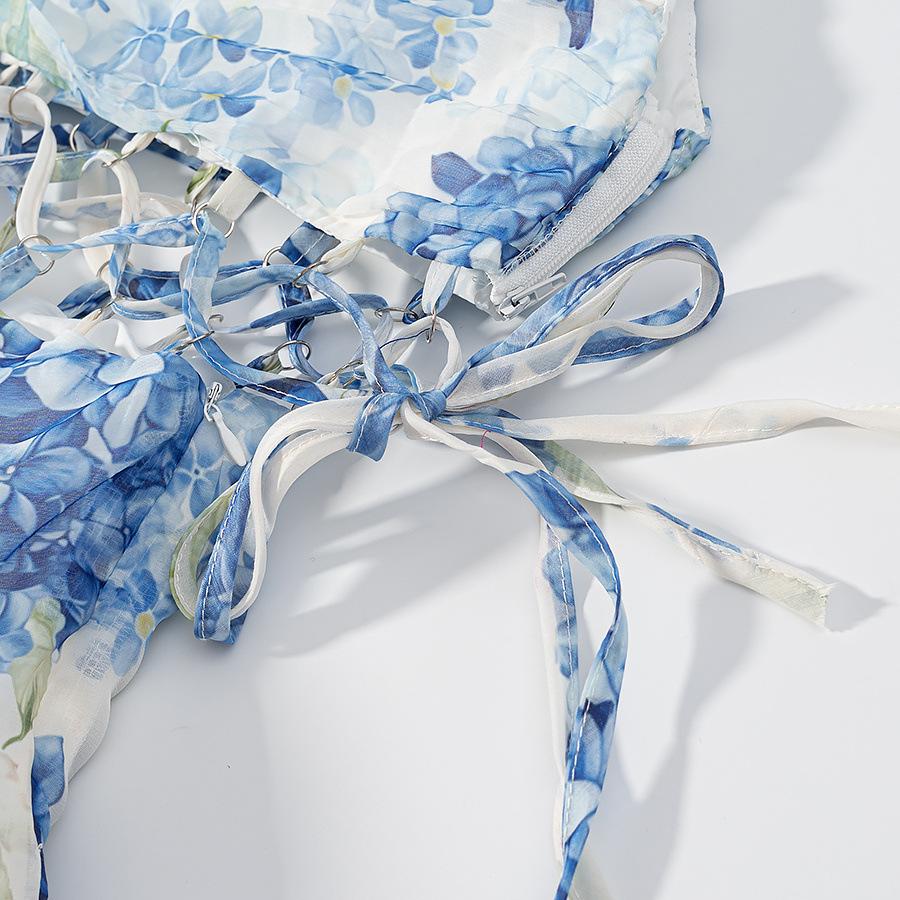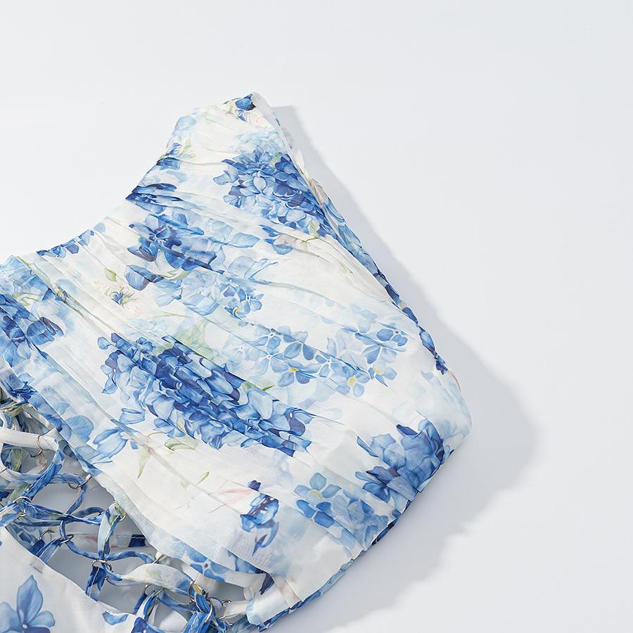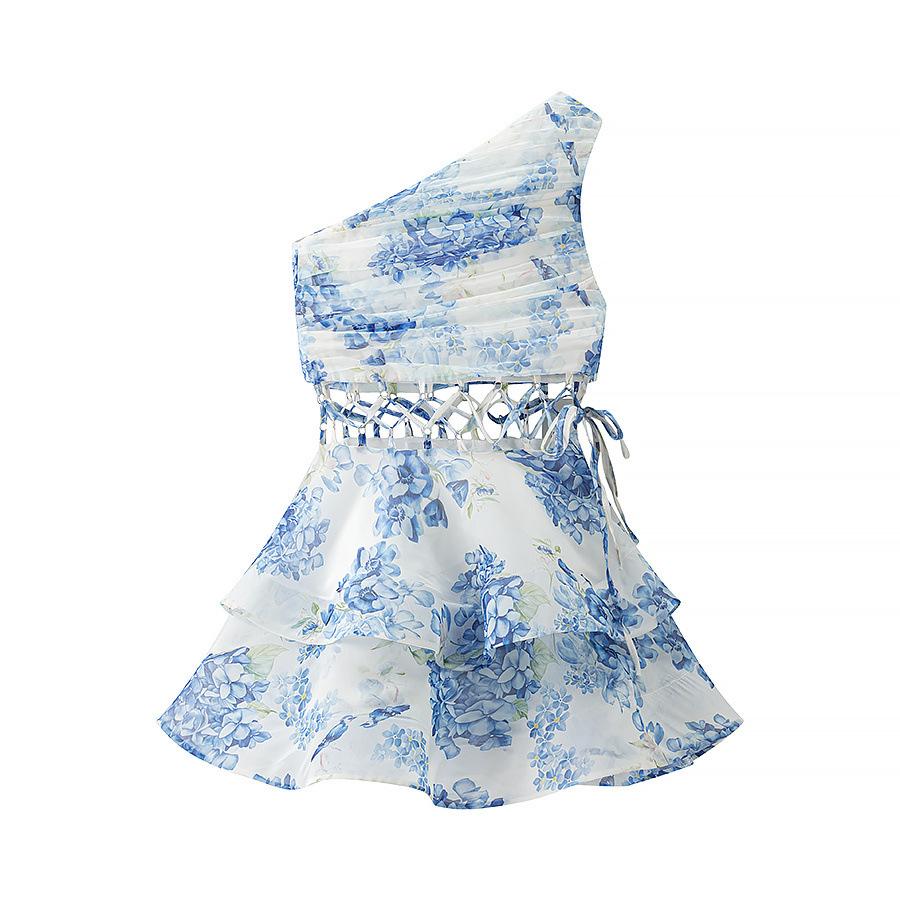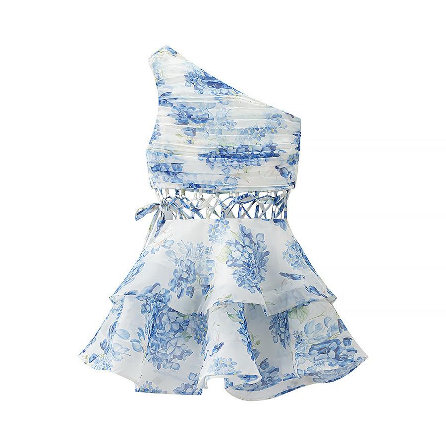 2025 Verano Nuevo Ropa de Mujer Transfronteriza Europea y Americana Vestido Floral Adelgazante con Abertura en la Cintura de un Hombro w091 2765