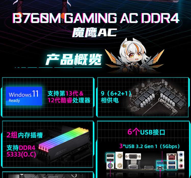 Placa Base para Computadora GIGABYTE B760M GAMING AC DDR4 Aplicable Soporta CPU de 13ª Generación 13400F