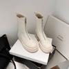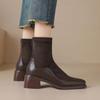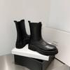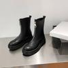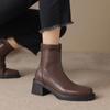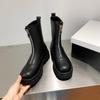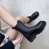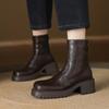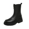 Botas Martin de Punta Redonda con Cremallera para Mujer Nuevas Color Sólido Tacón Medio Suela Gruesa Antideslizante Botas de Cuero para Mujer Otoño e Invierno Botas de Media Caña