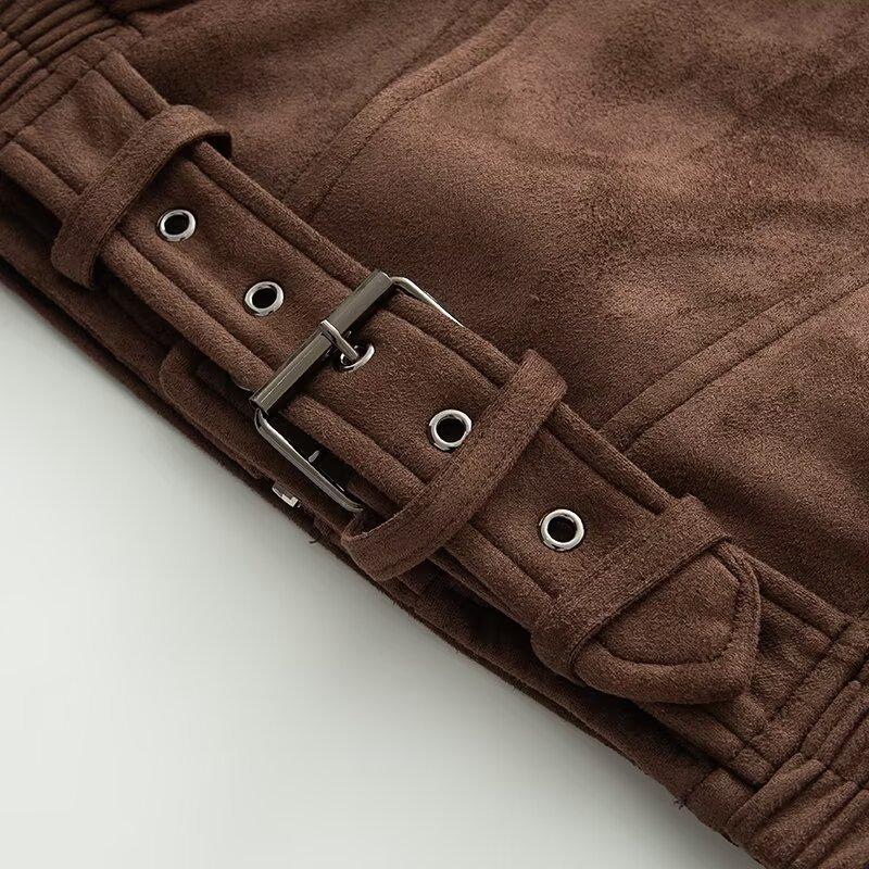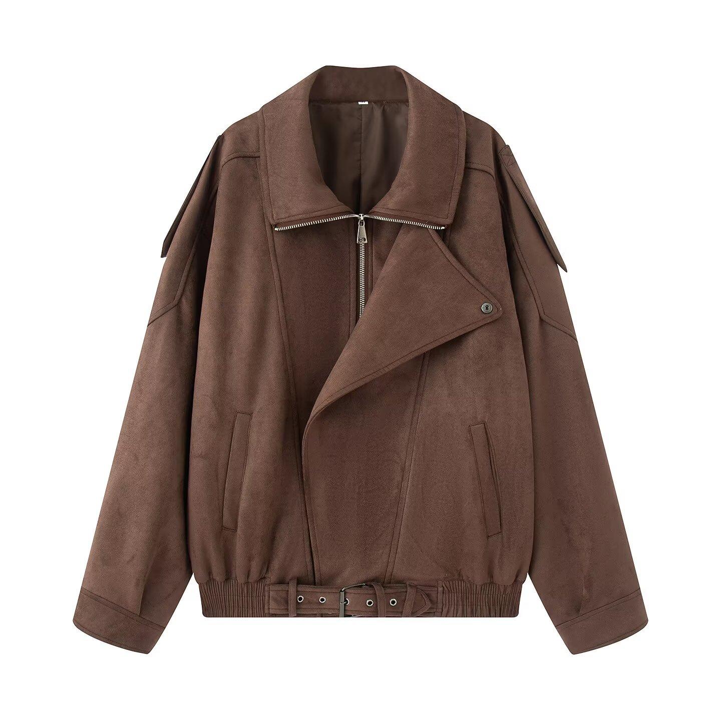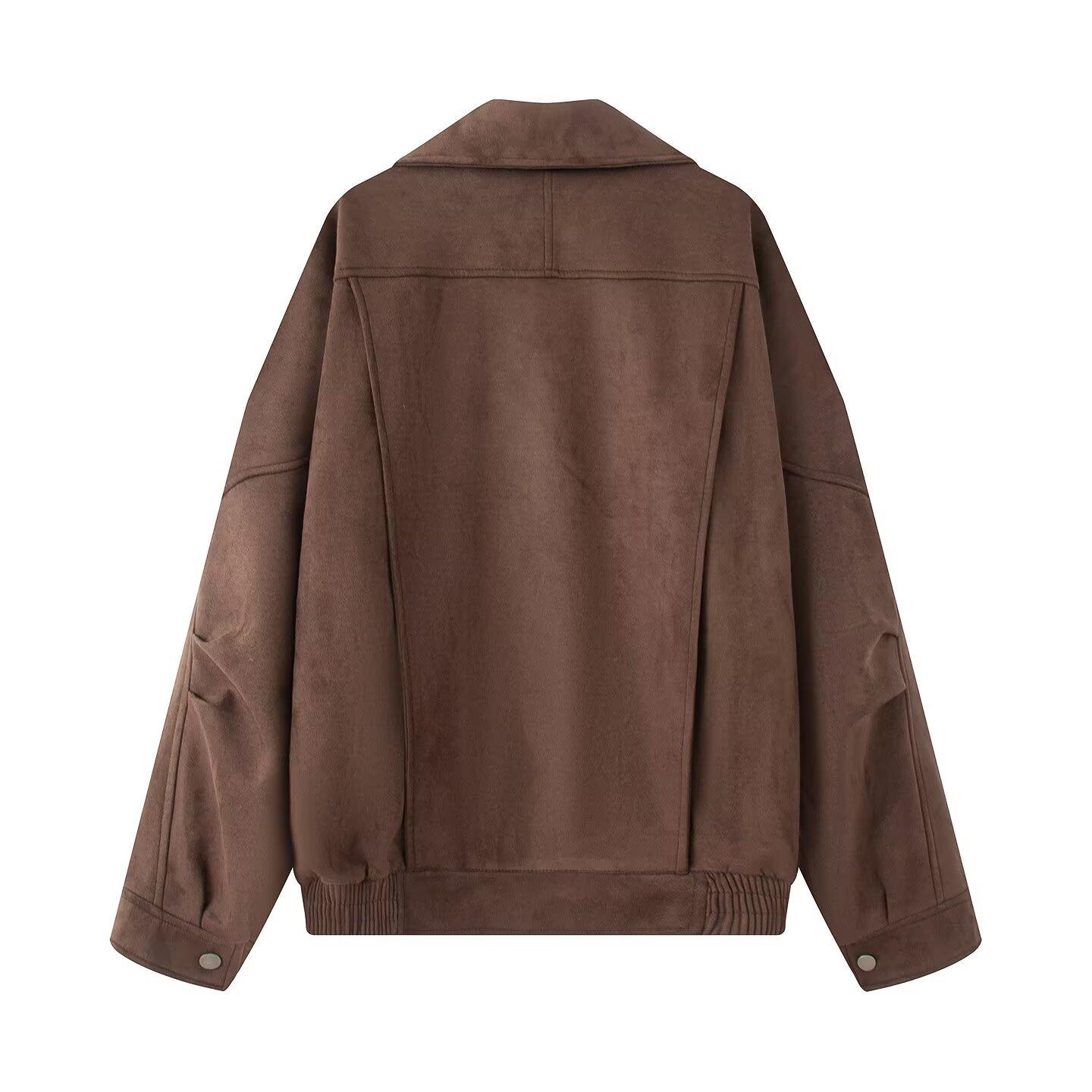 2025 Otoño/Invierno Nuevo Europeo y Americano Transfronterizo Moda Urbana para Mujer Chaqueta Holgada de Ante Abrigo w034 25155