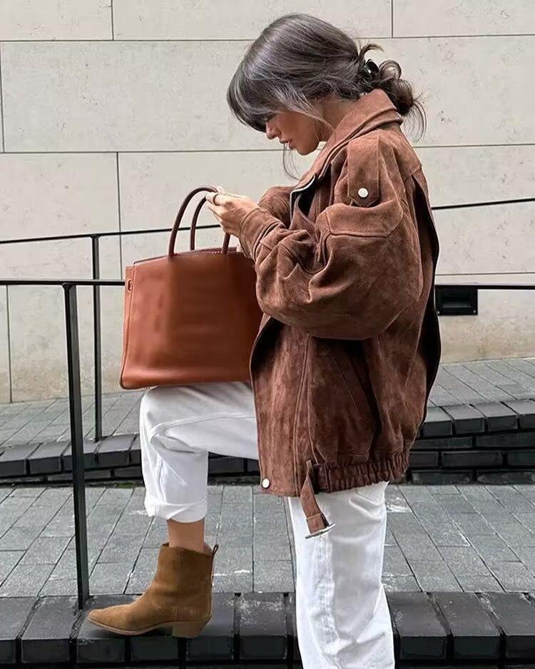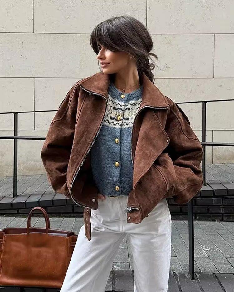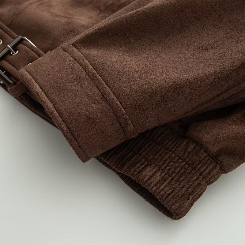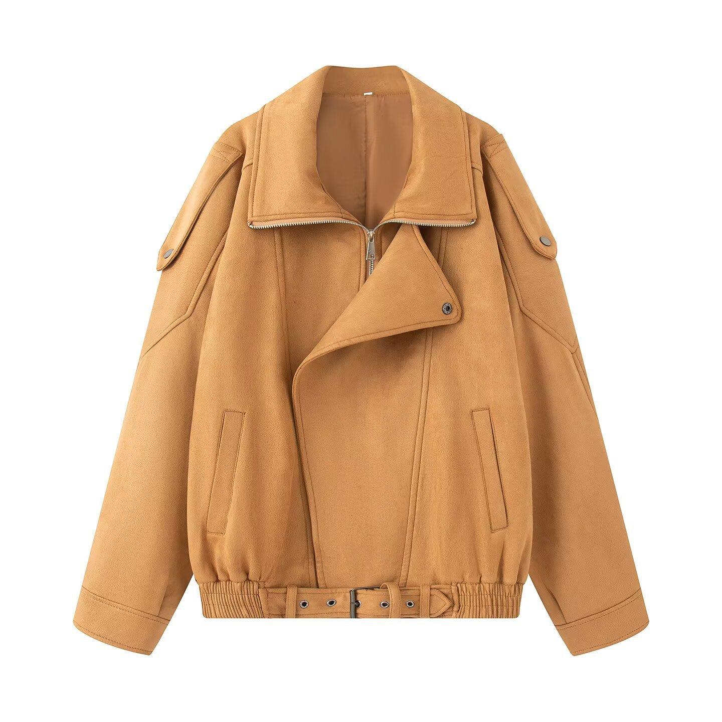 2025 Otoño/Invierno Nuevo Europeo y Americano Transfronterizo Moda Urbana para Mujer Chaqueta Holgada de Ante Abrigo w034 25155