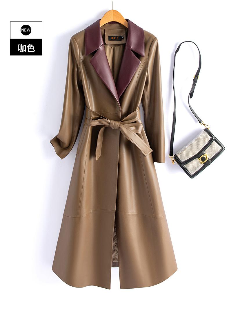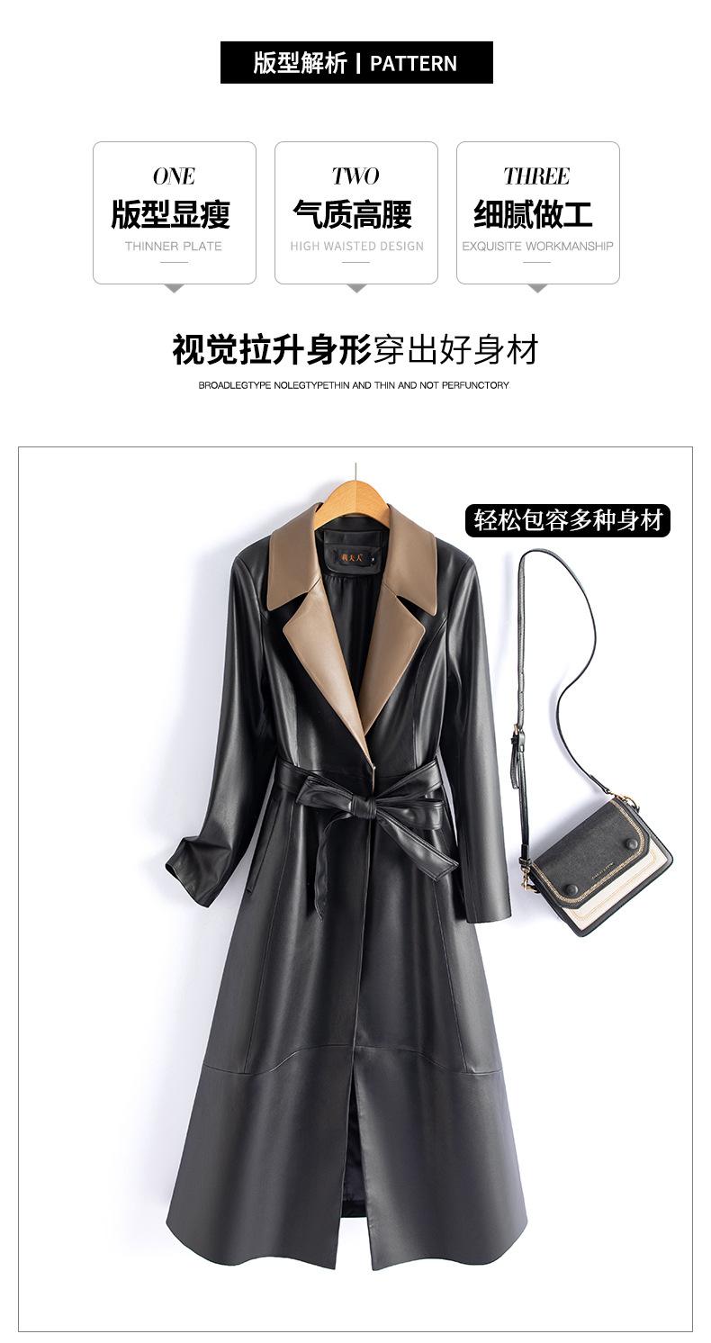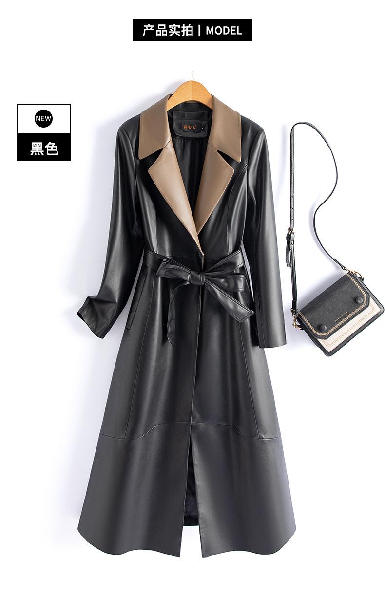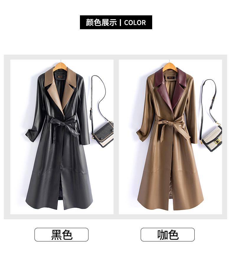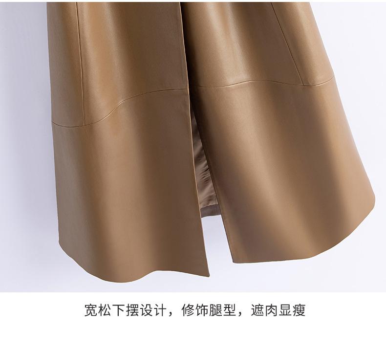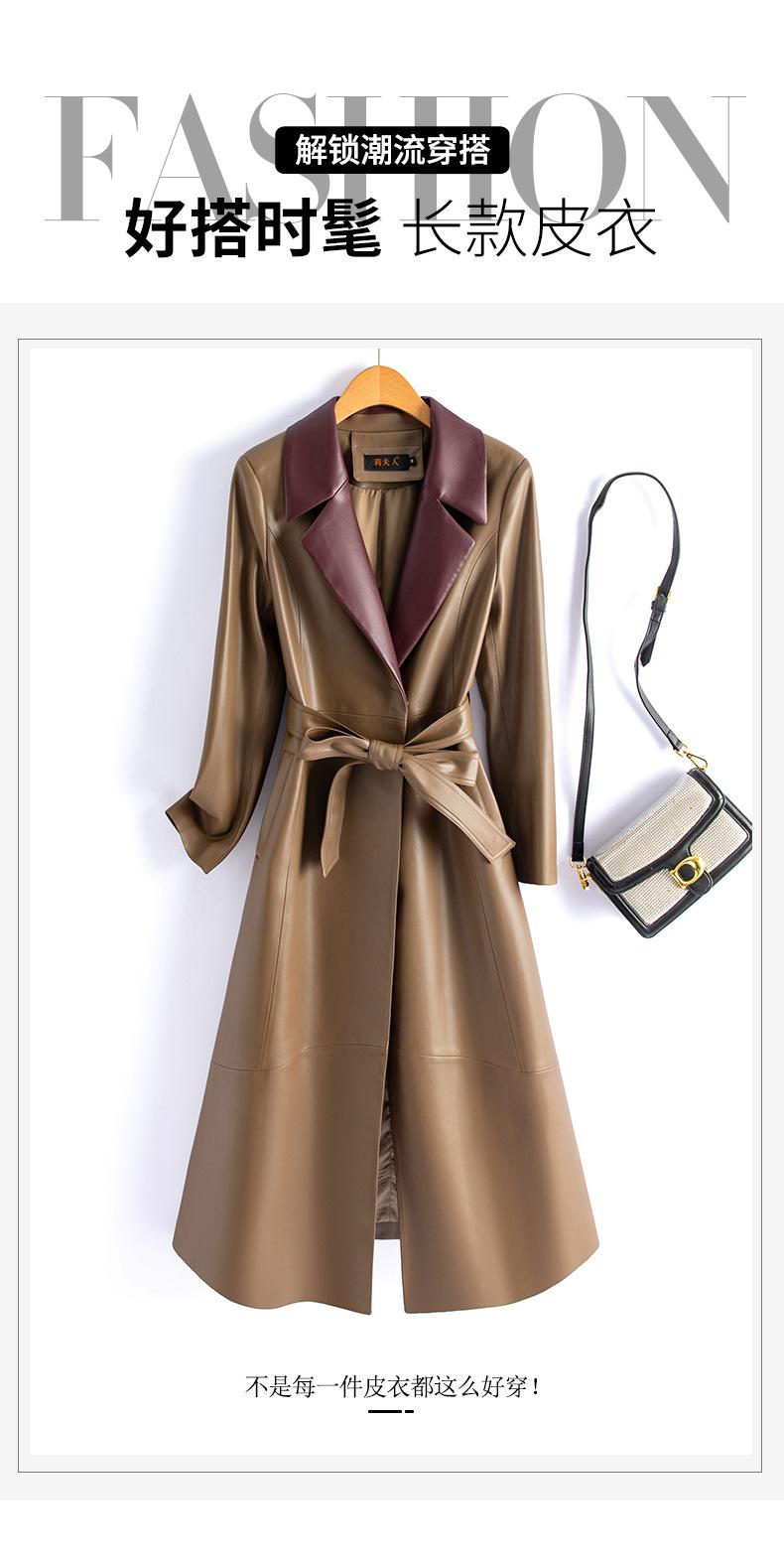 Chaqueta de Cuero Extra Larga Haining Estilo Coreano Nueva de Primavera y Otoño 2025 para Mujer, Corte Largo y Ajustado, Motocicleta Talla Grande