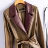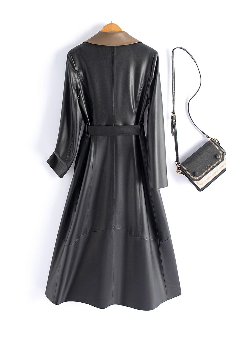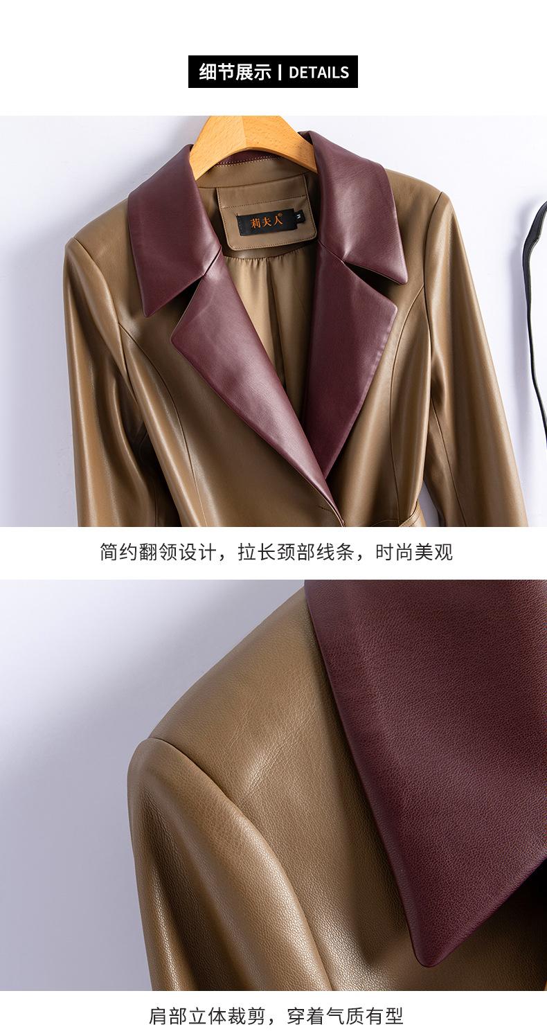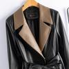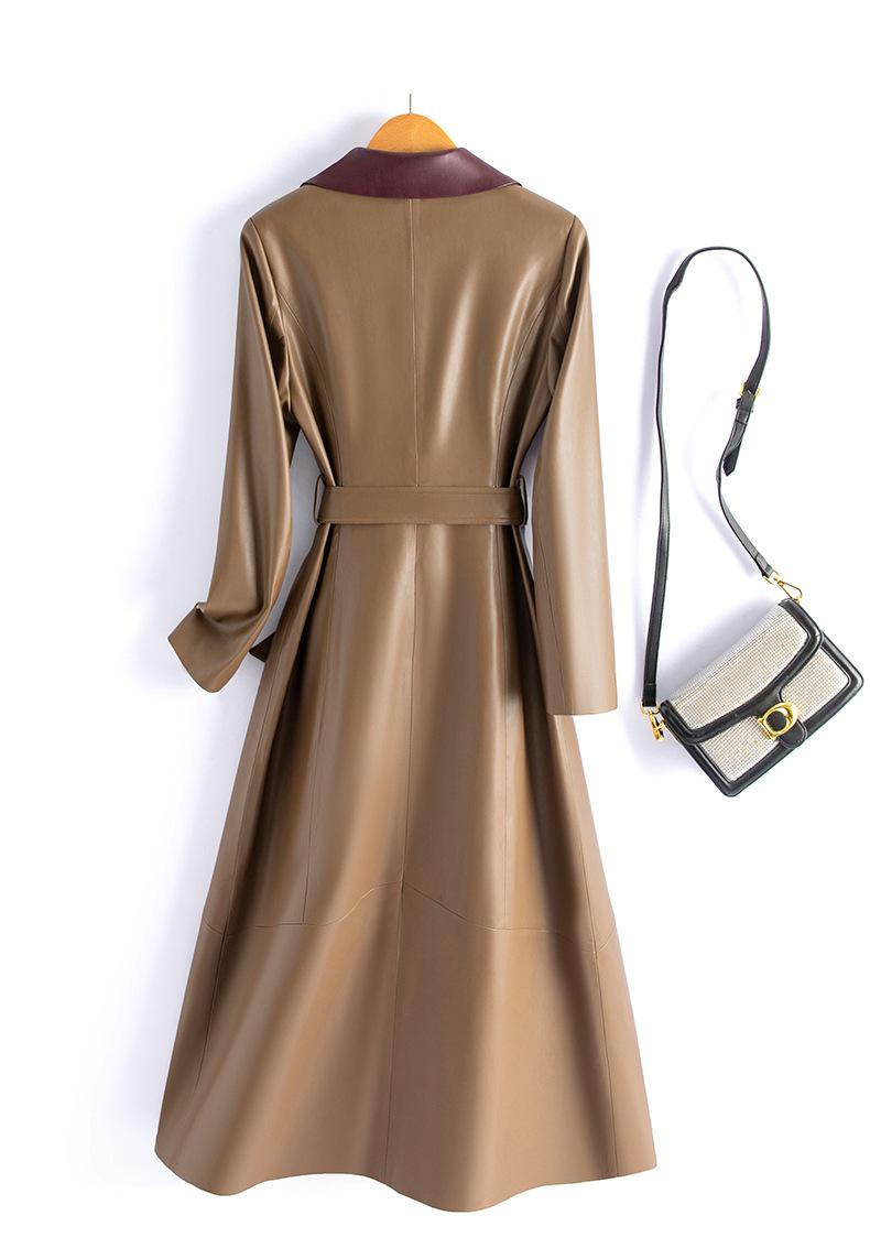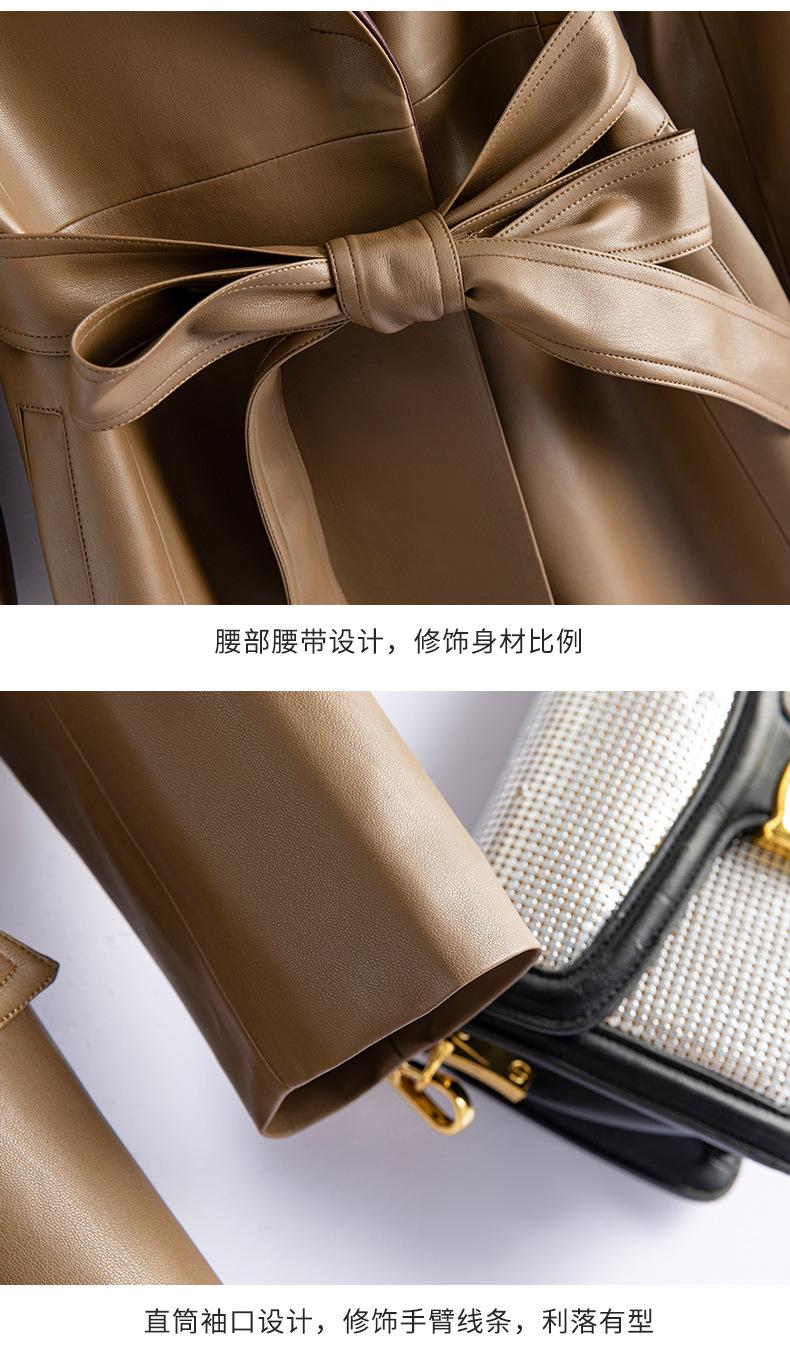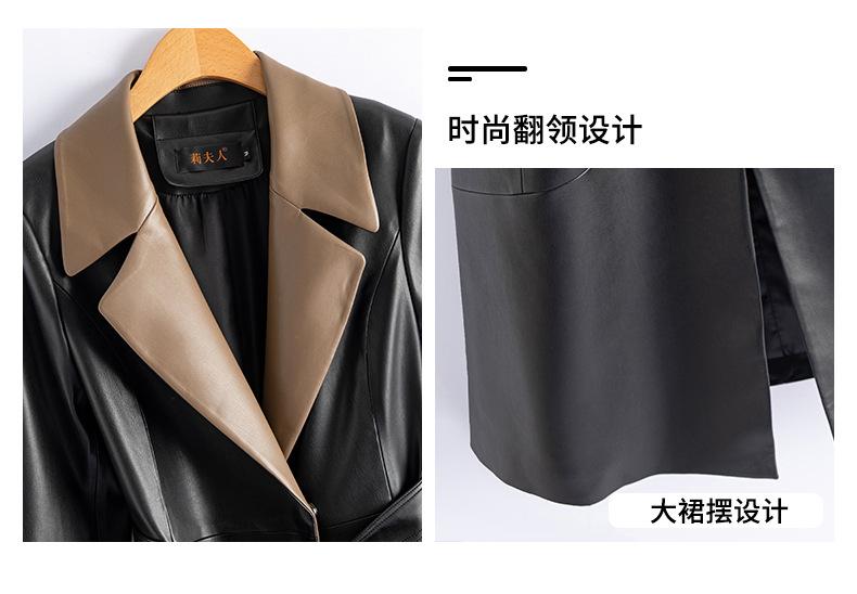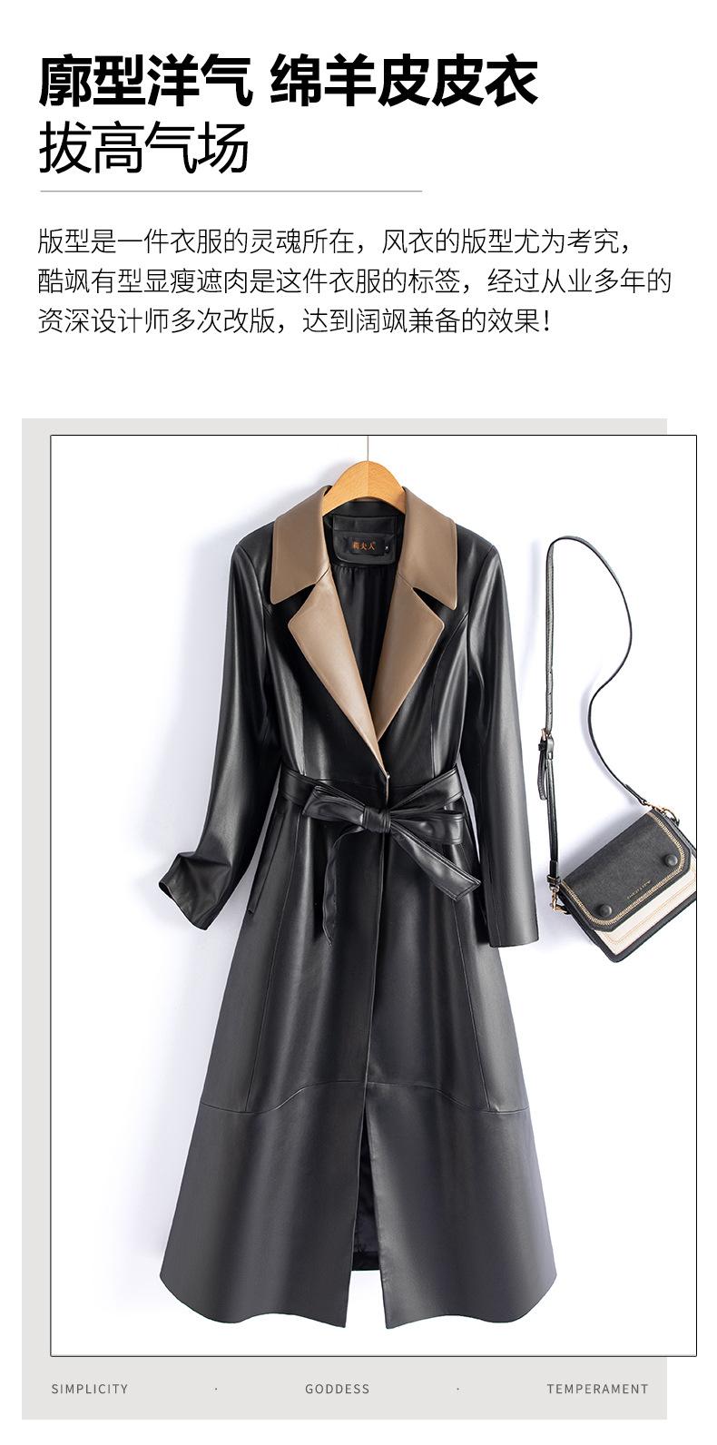 Chaqueta de Cuero Extra Larga Haining Estilo Coreano Nueva de Primavera y Otoño 2025 para Mujer, Corte Largo y Ajustado, Motocicleta Talla Grande
