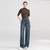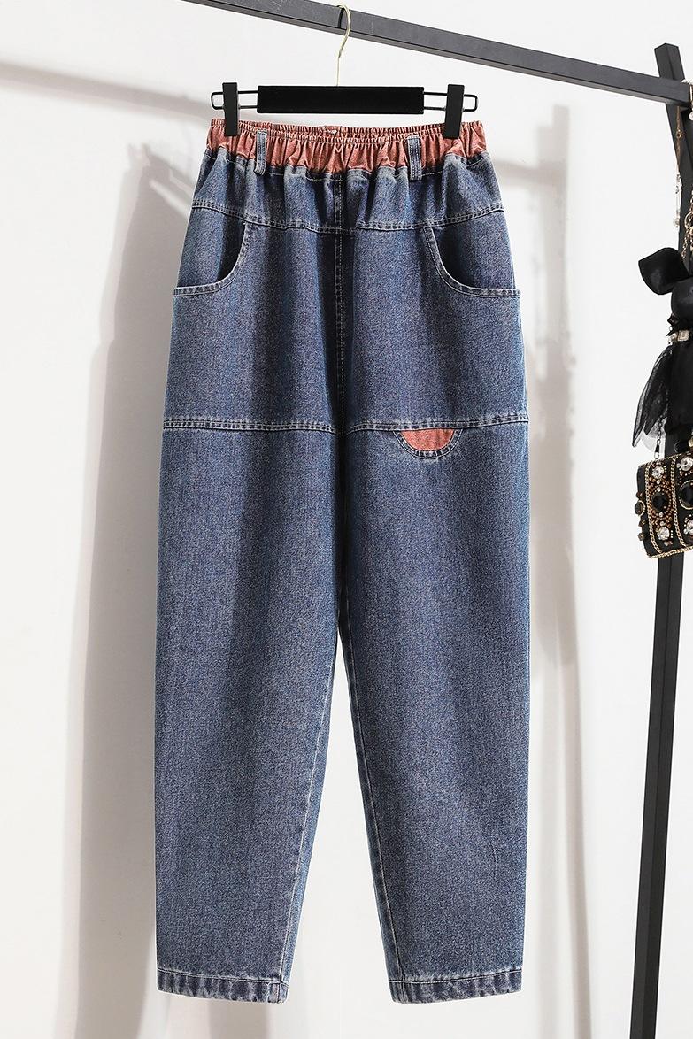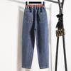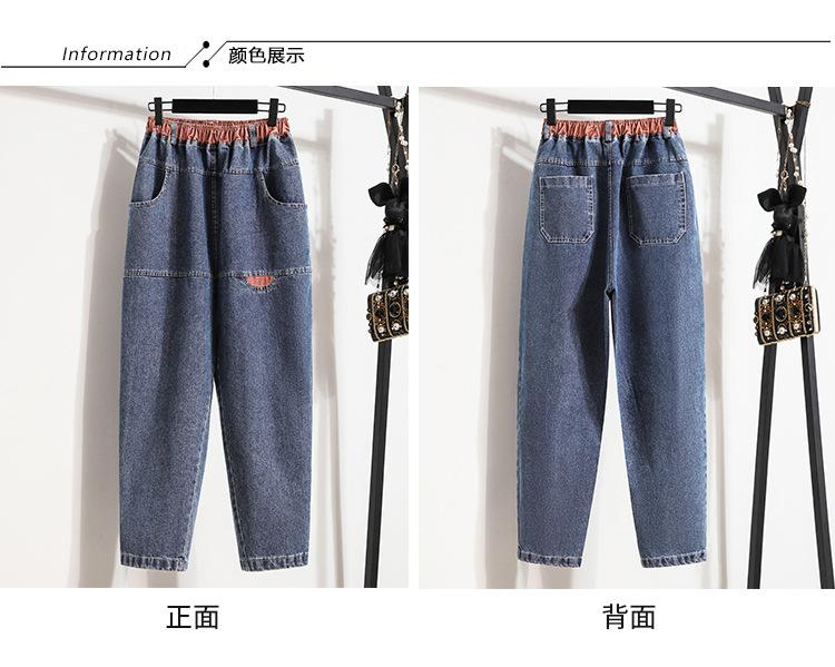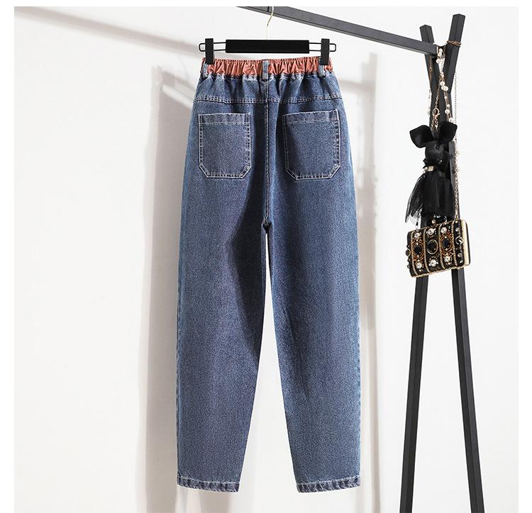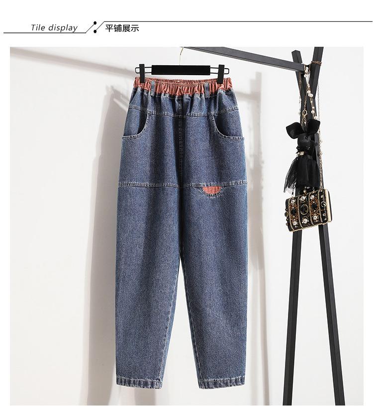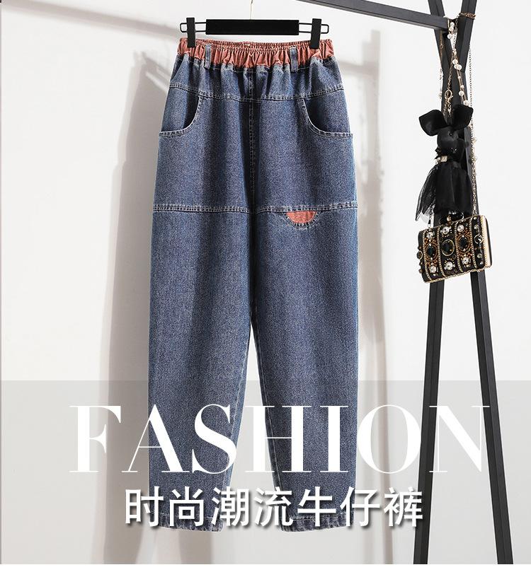 Foto Real Primavera 2025 Nuevo Denim Cintura Alta Pantalón Harem Lavado Talla Extra Pantalón Zanahoria Pantalón Largo Pantalón Nueve Puntos Mujer