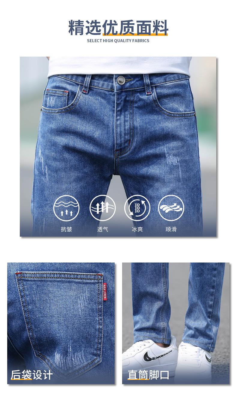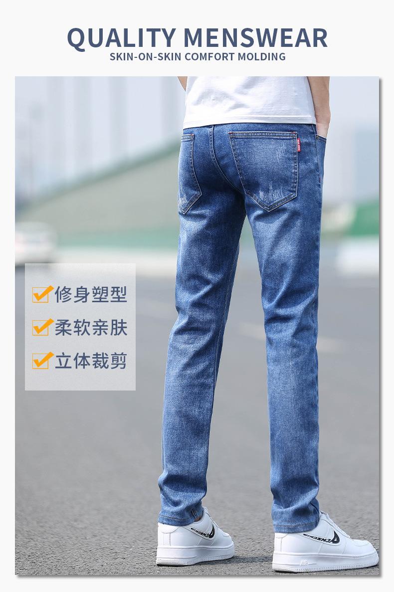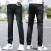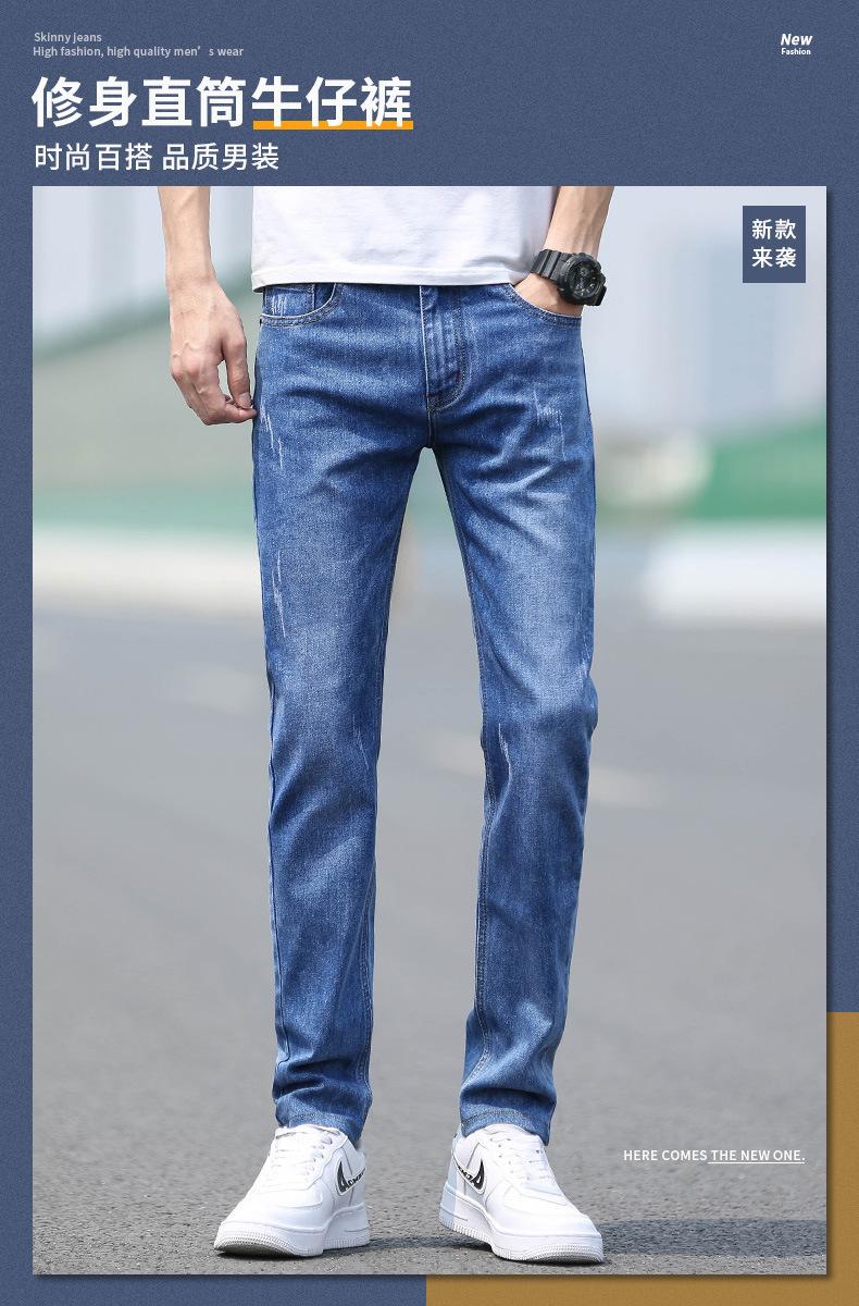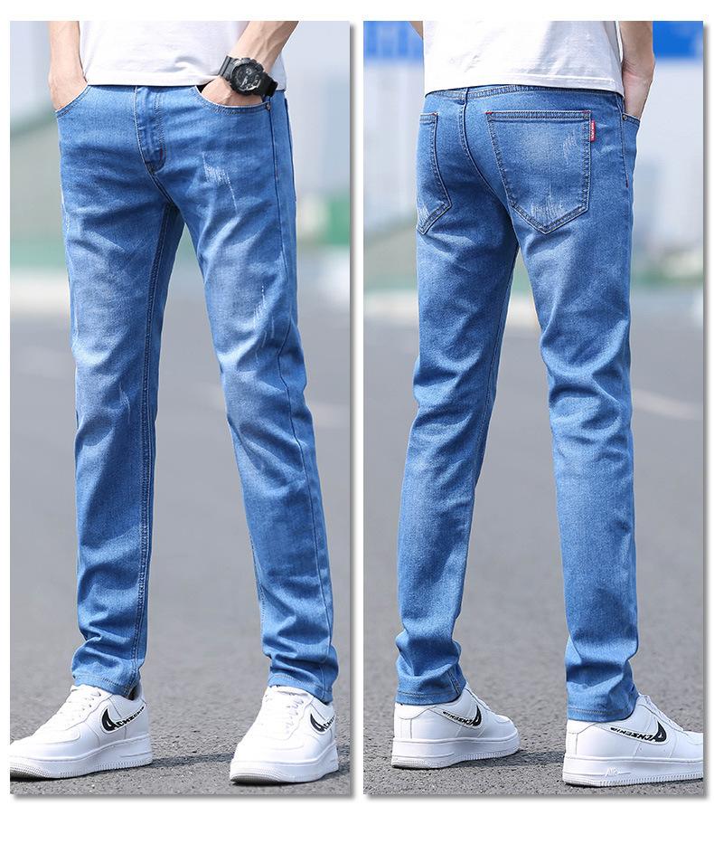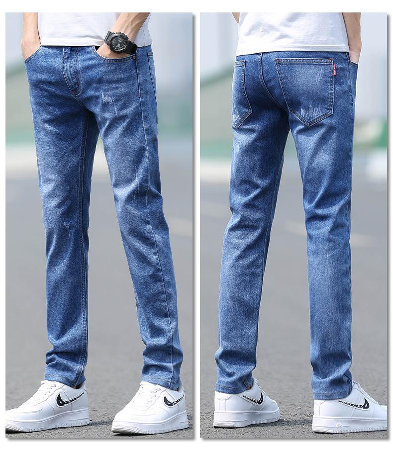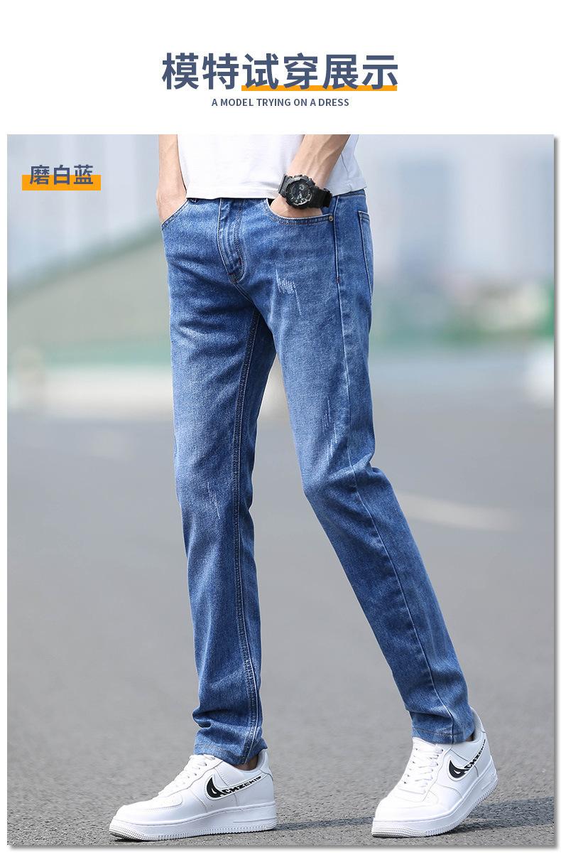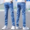 Jeans de Primavera y Verano para Hombre, Pantalones de Mezclilla Blancos Elásticos de Corte Slim, Pantalones Rectos Pequeños Lavados de Cintura Media para Hombre a la Moda