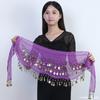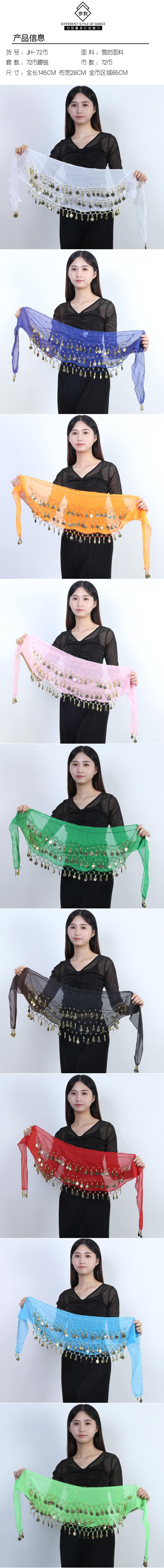 Venta al por mayor Cadena de cintura para danza del vientre 72 Monedas de oro Cinturón de cintura Danza india Cinturón de gasa de tres capas Accesorios Pañuelo de cadera Venta al por mayor