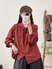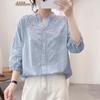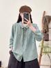 Otoño Nuevo Japonés Mori Girl Bordado Doble Capa Gasa de Algodón Camisa Manga Larga Suelta Cuello Vuelto Versátil Blusa Venta al por Mayor