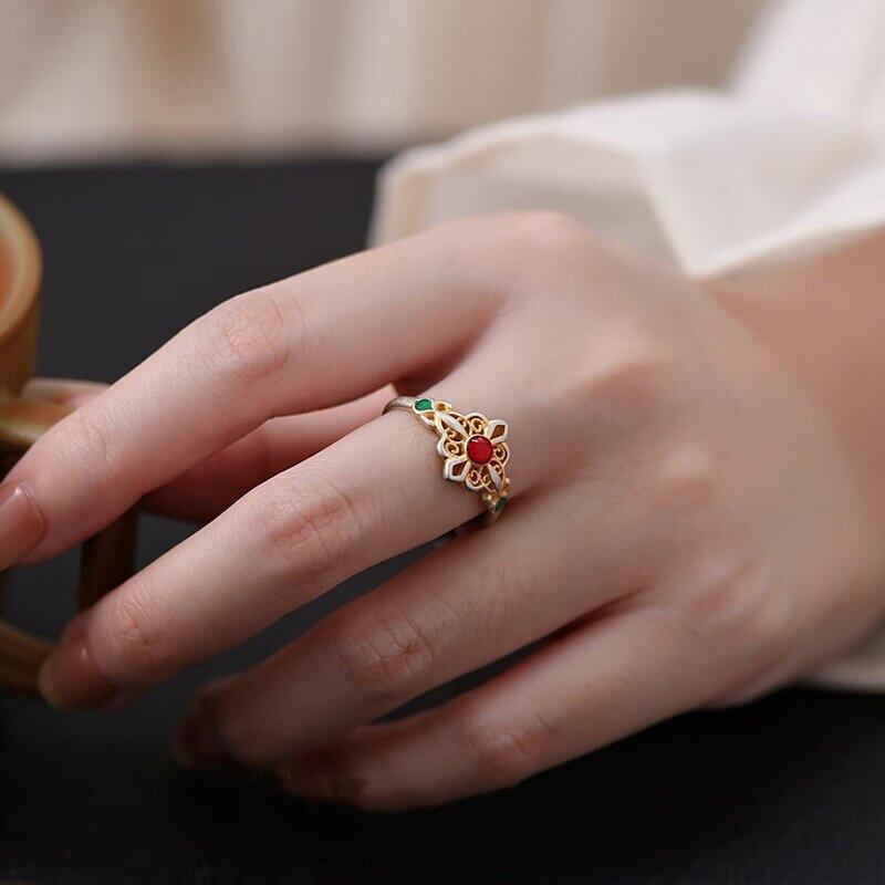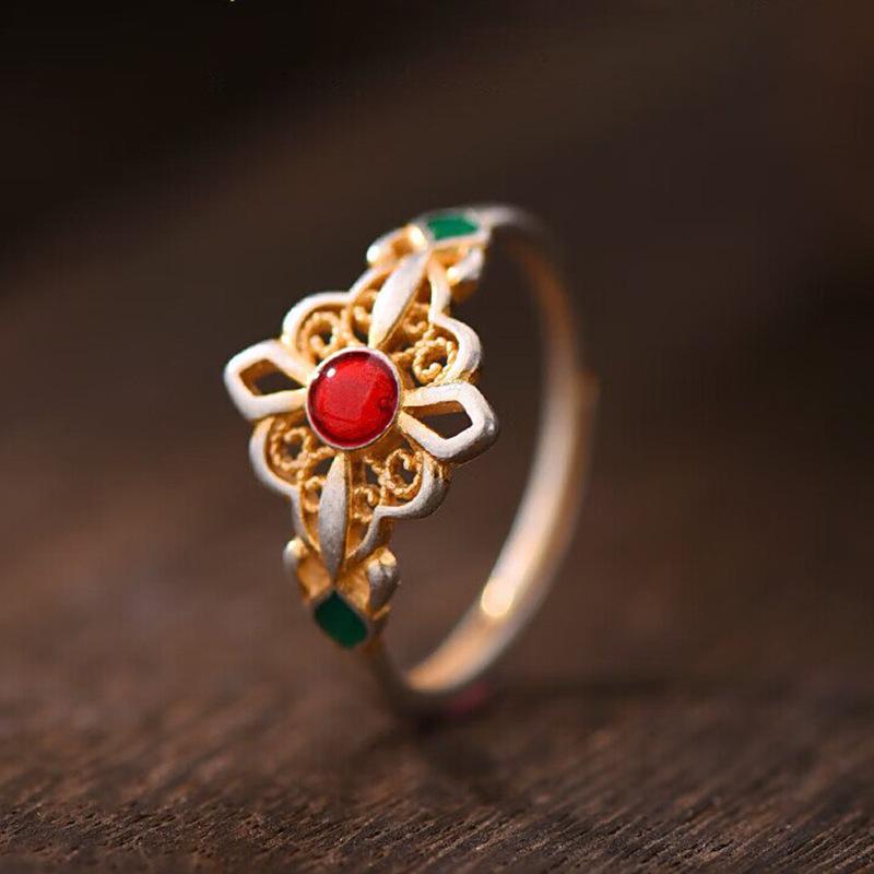 Anillo dorado de esmalte pintado en oro plateado, estilo para mujer, nuevo estilo nacional chino, anillo abierto para dedo, se puede usar, ventas directas de fábrica