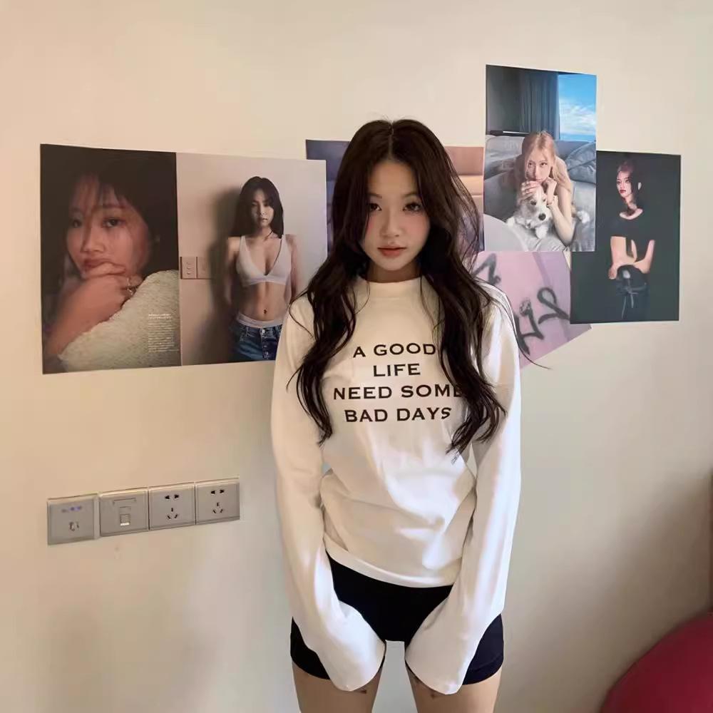 Playera de Manga Larga con Estampado de Letras para Mujer 2025 Primavera y Otoño Nueva Camiseta Básica Ajustada Adelgazante Top de Chica Picante