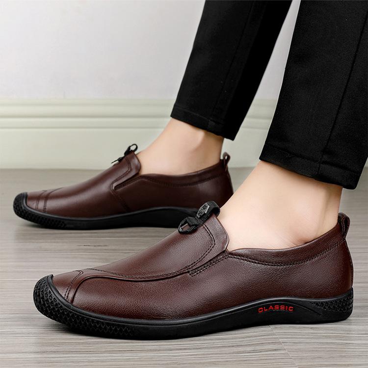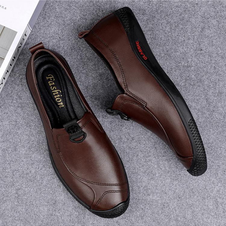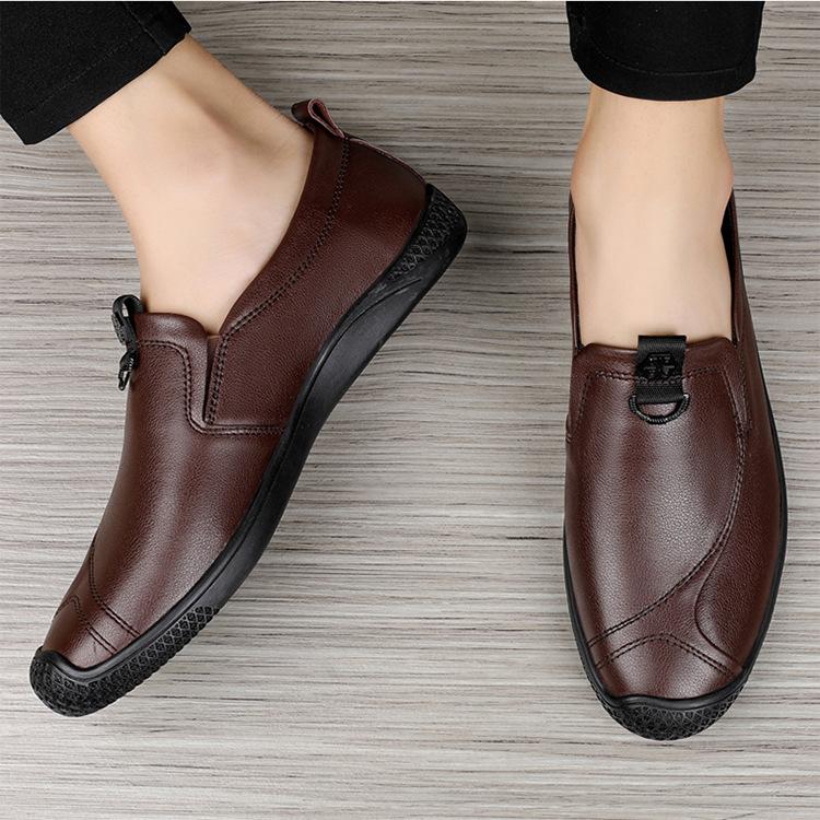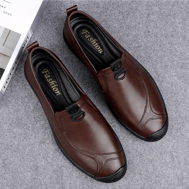 Zapatos casuales de cuero transpirables para hombre 2023, capa superior de piel de vaca, superficie de cuero suave, cómodos zapatos para ir al trabajo para hombres de mediana edad, zapatos de cuero para el trabajo de oficina