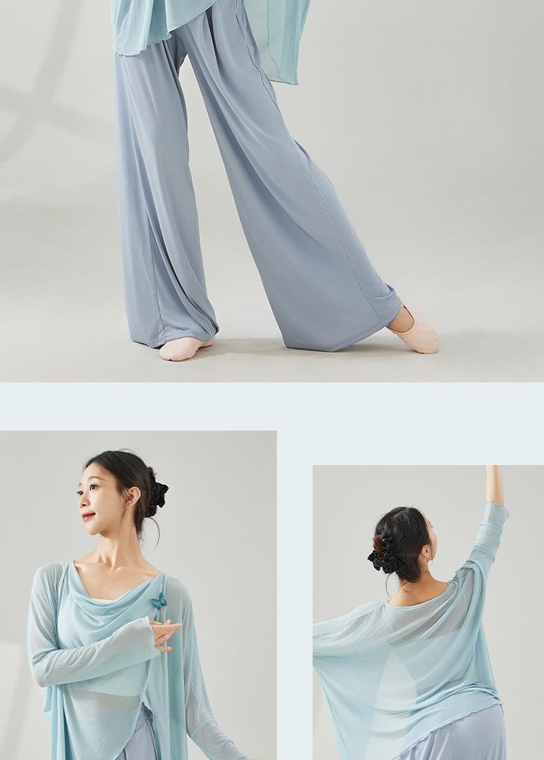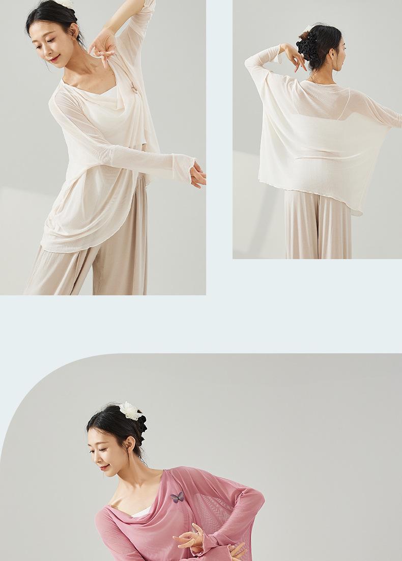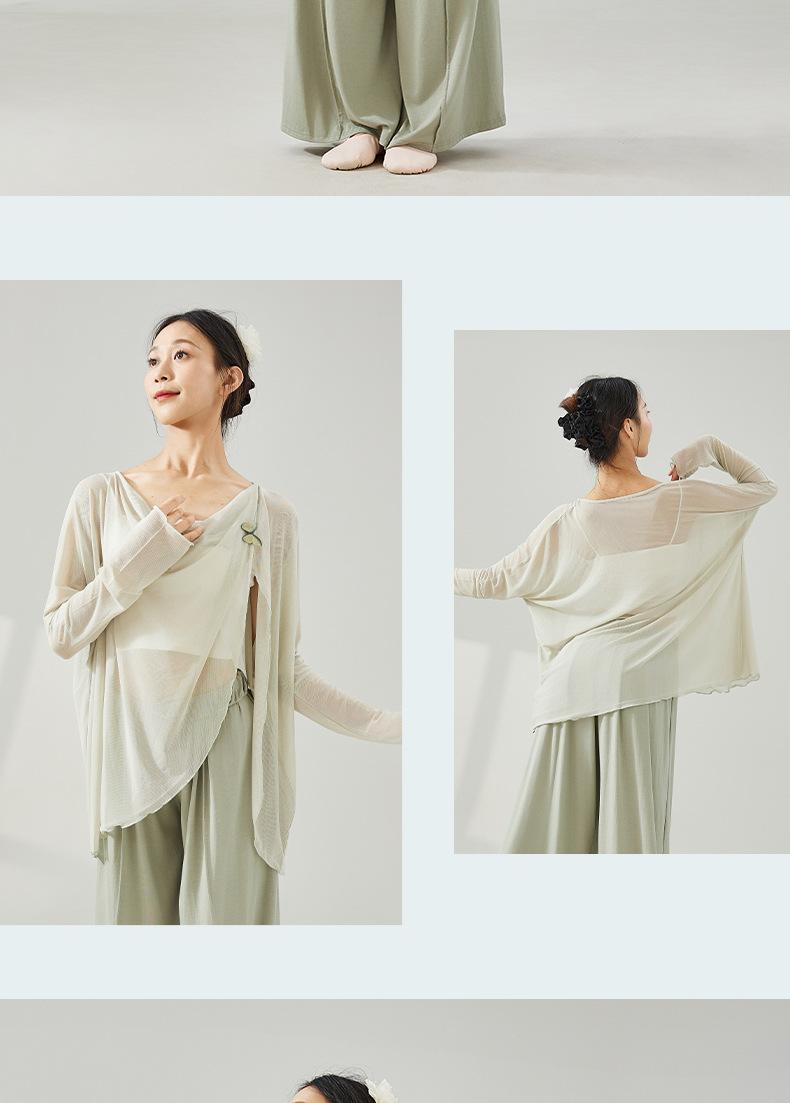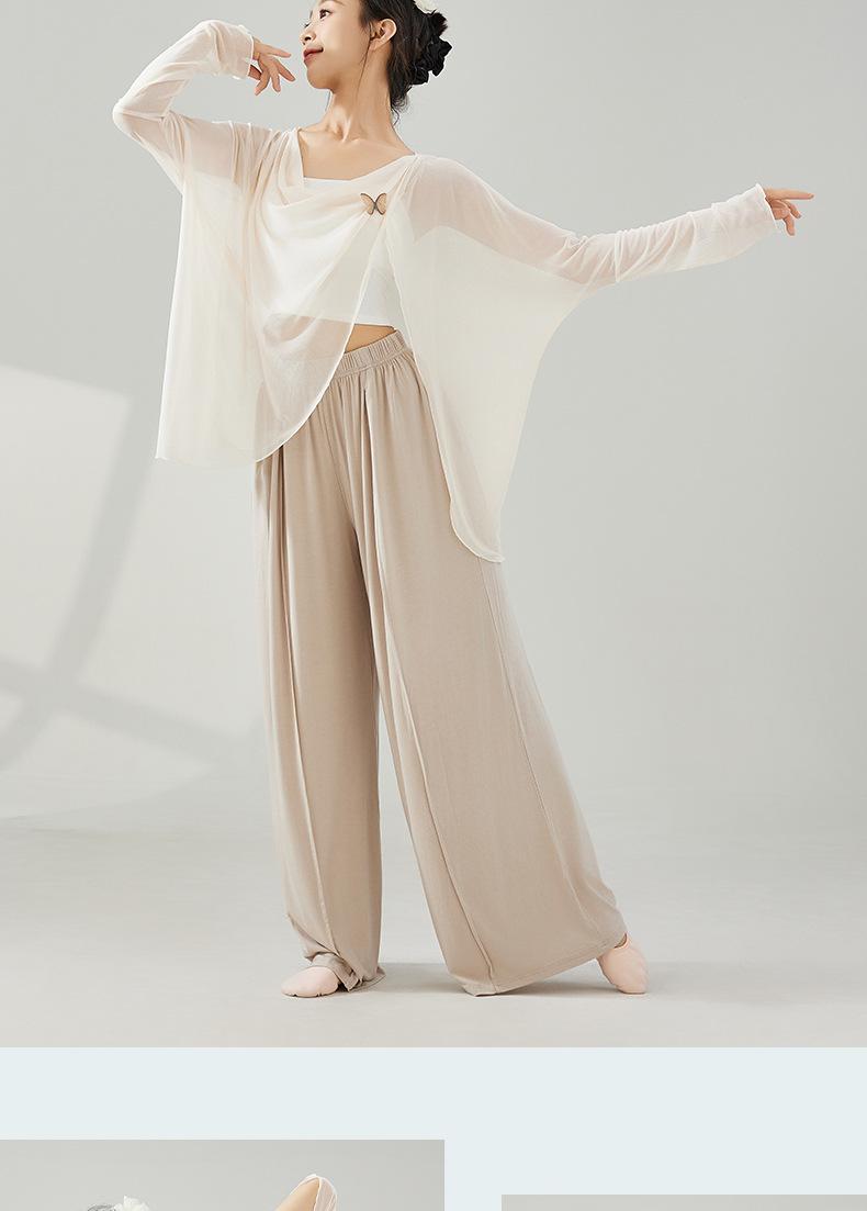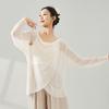 Ropa de Danza Moderna para Mujer, Blanco Clásico, Elegante, Tops de Danza Holgados de Malla para Entrenamiento Corporal Chino de Manga Larga para Adulto