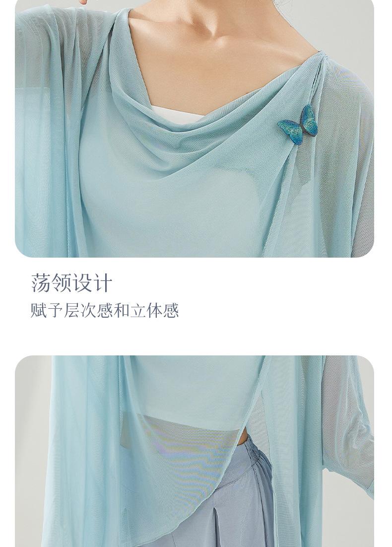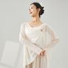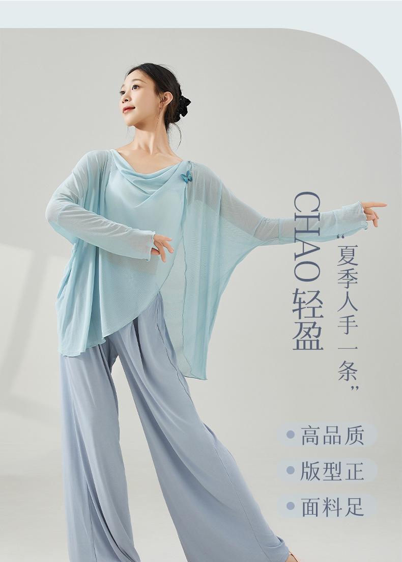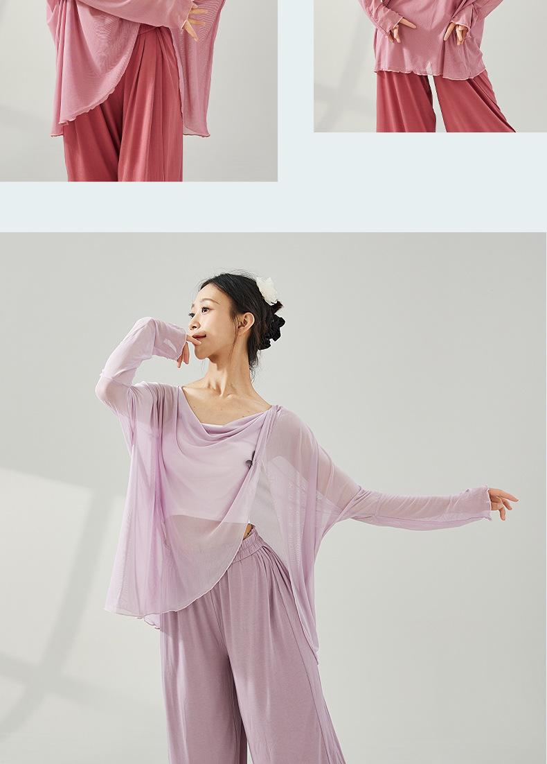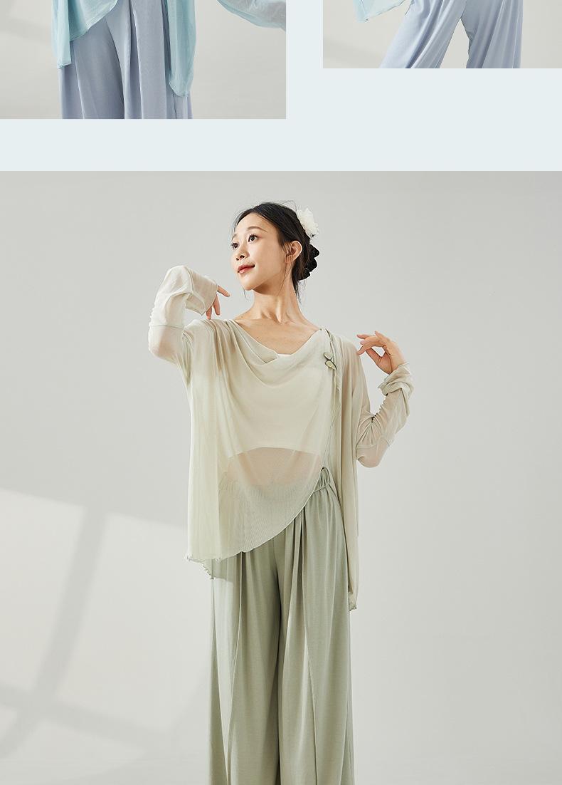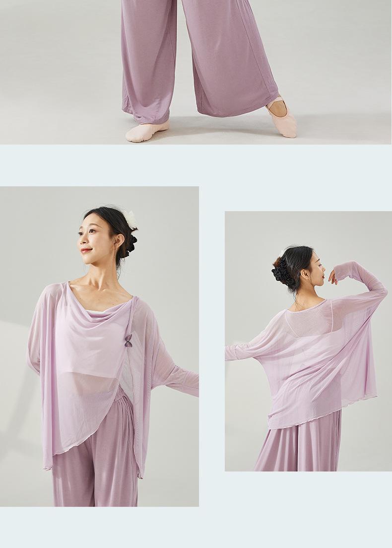 Ropa de Danza Moderna para Mujer, Blanco Clásico, Elegante, Tops de Danza Holgados de Malla para Entrenamiento Corporal Chino de Manga Larga para Adulto