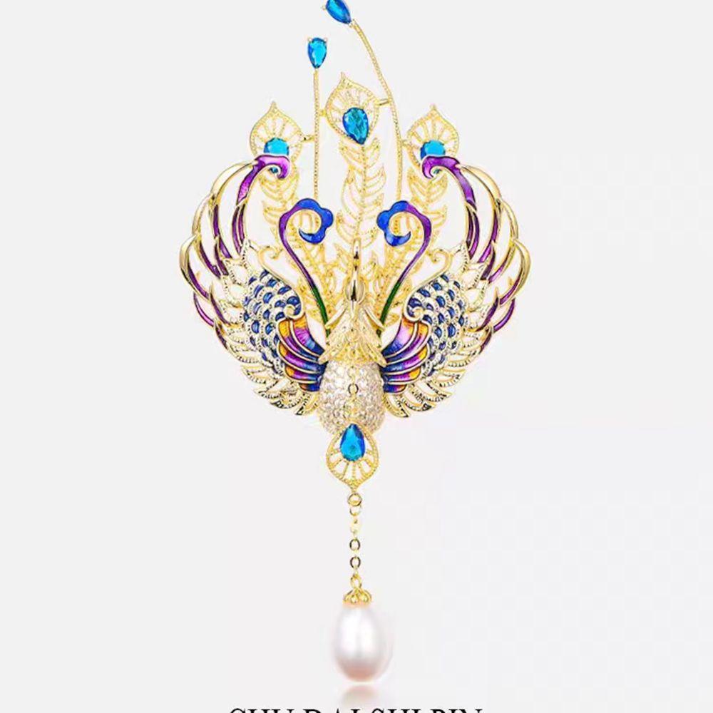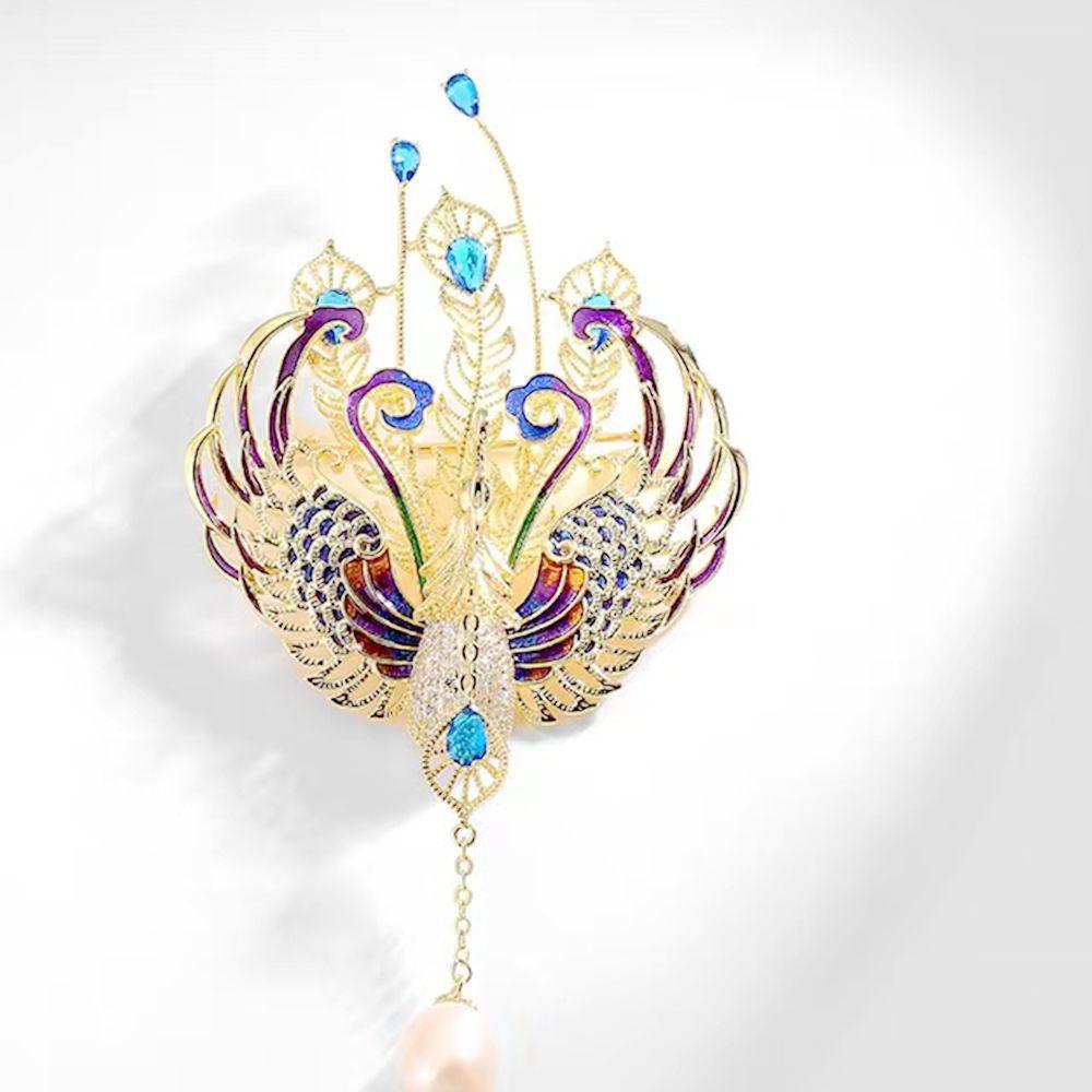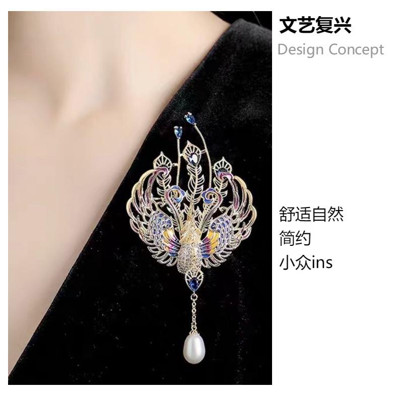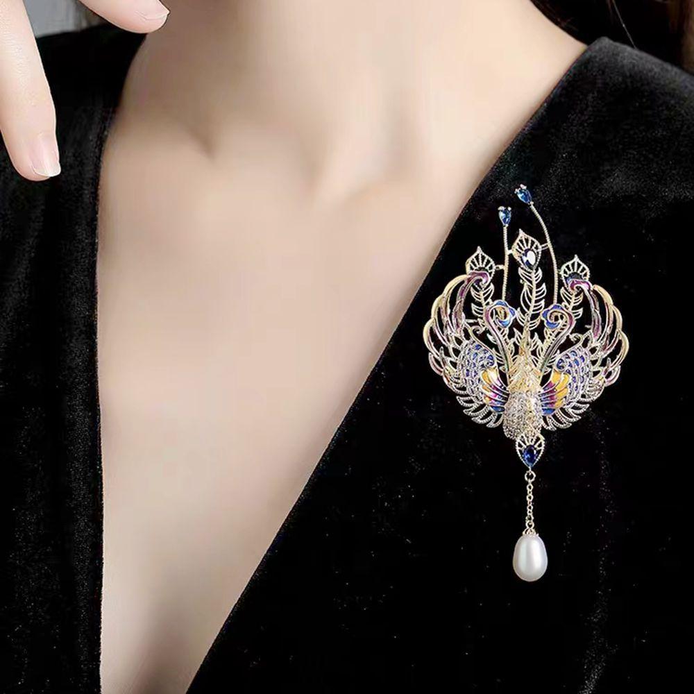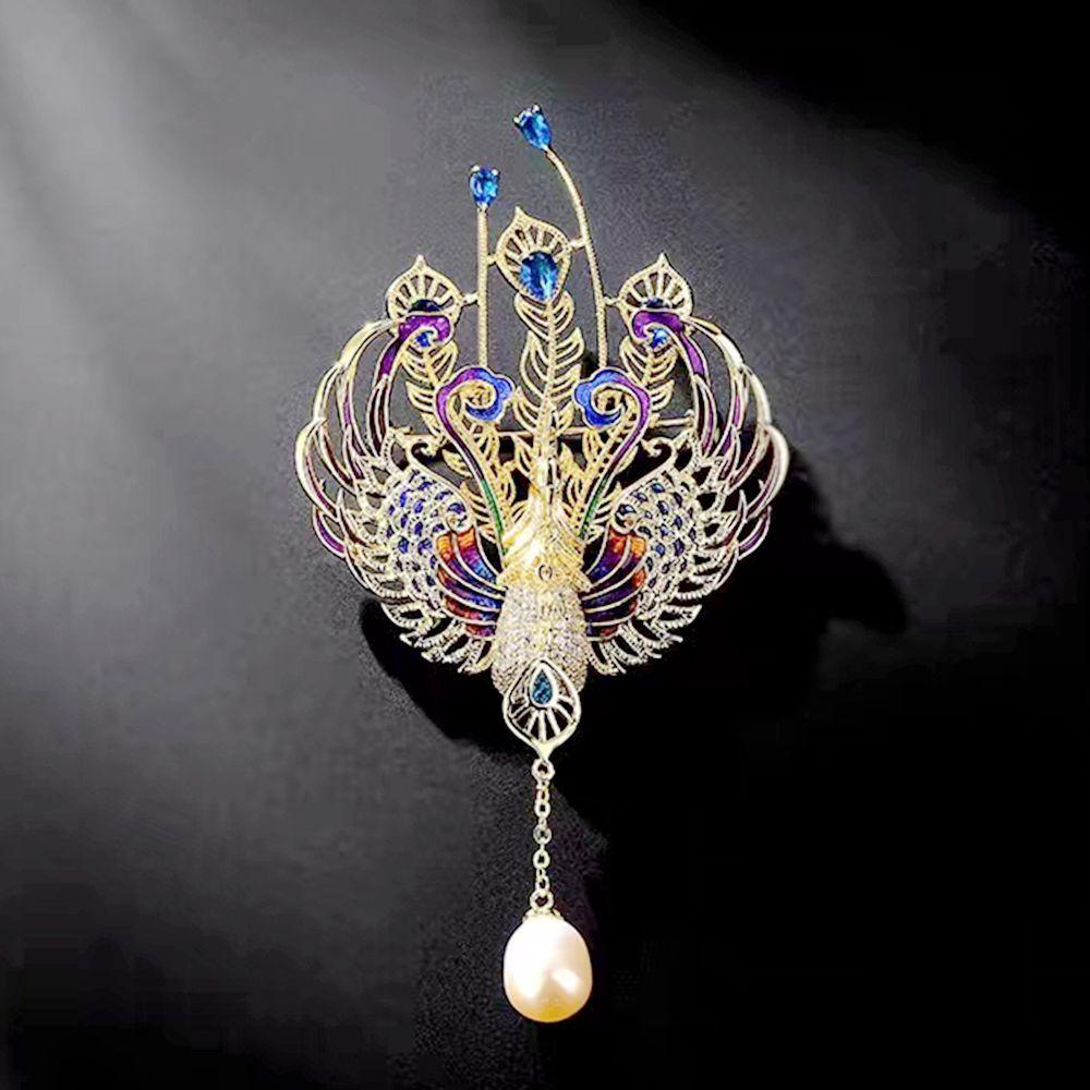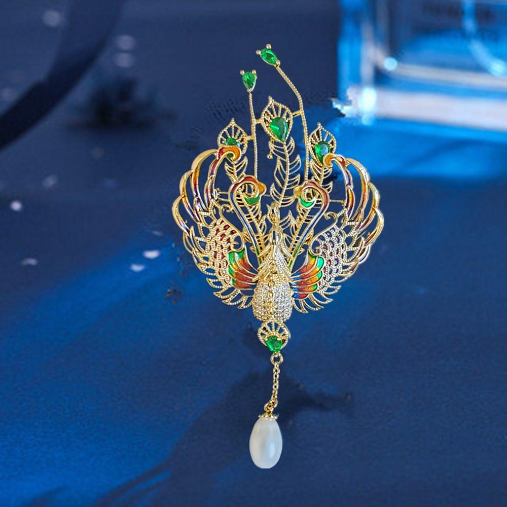 Broche de Fénix de Esmalte de Lujo Guofeng Cien Pájaros Cara Fénix para Mujer de Alta Gama Joker Pin Decorativo para Ropa