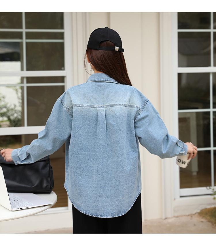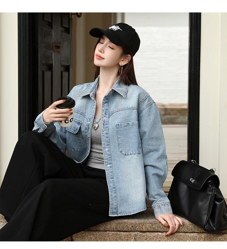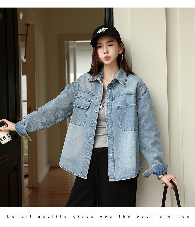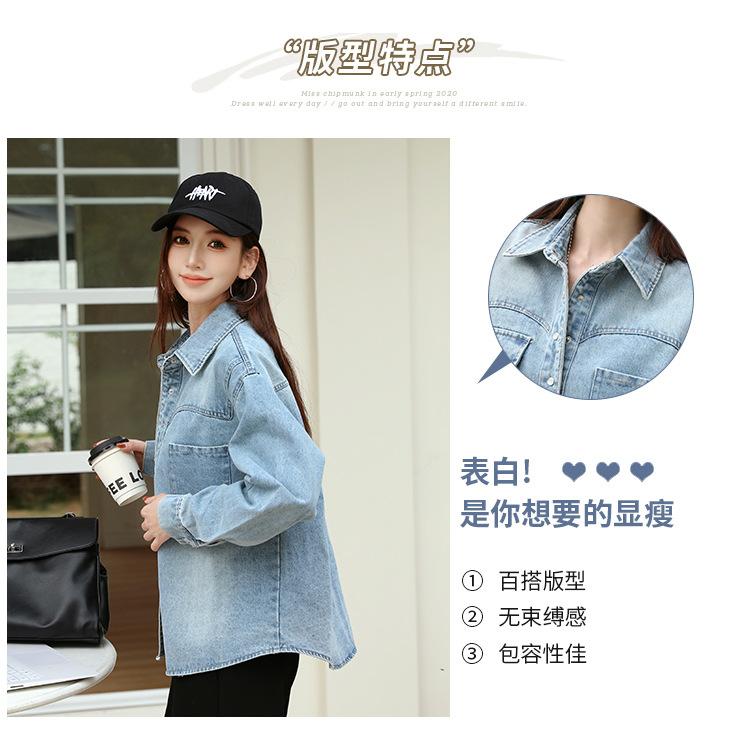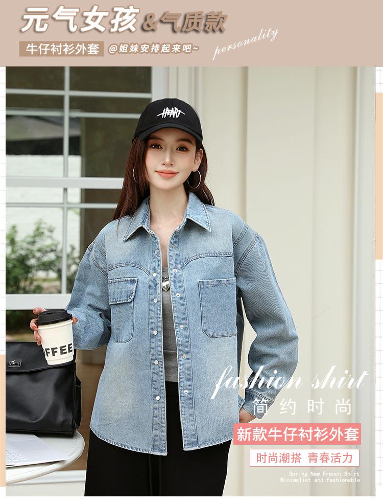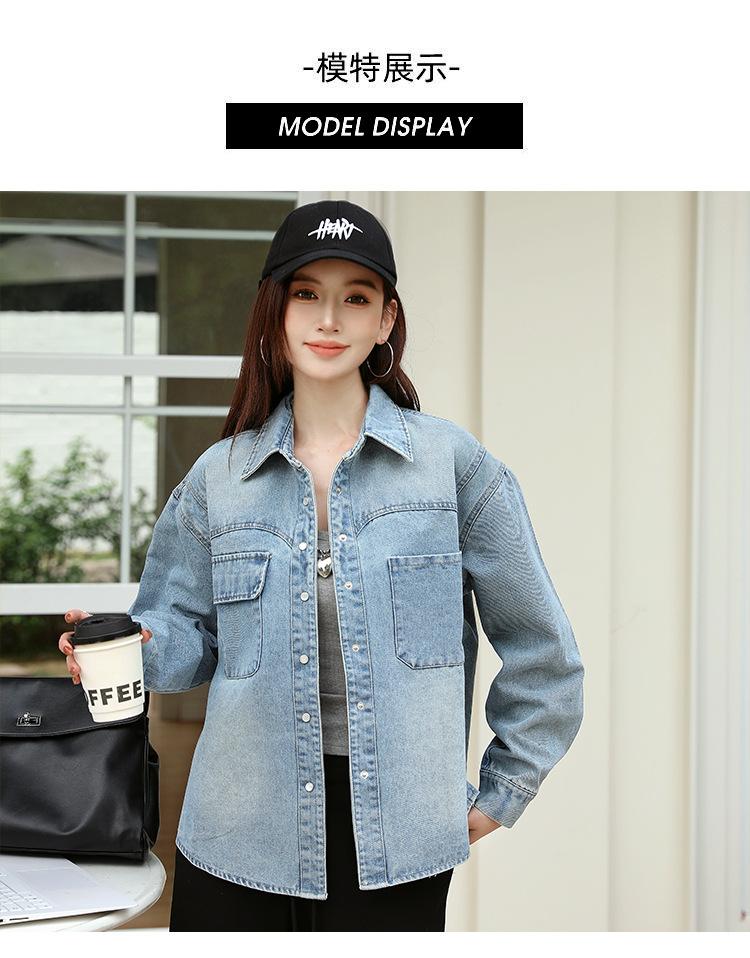 Foto real primavera nuevo temperamento elegante retro amigable con la piel lujo ligero casual versátil chaqueta camisa de mezclilla