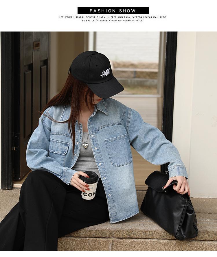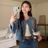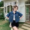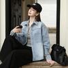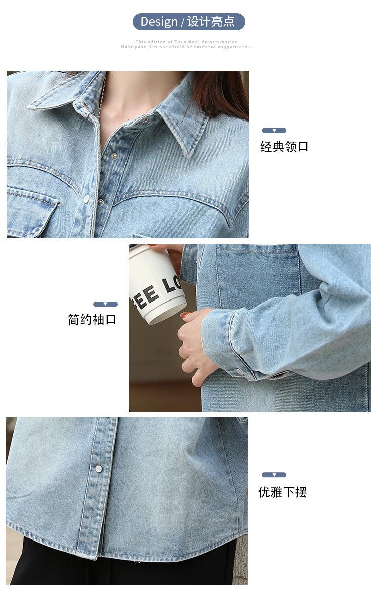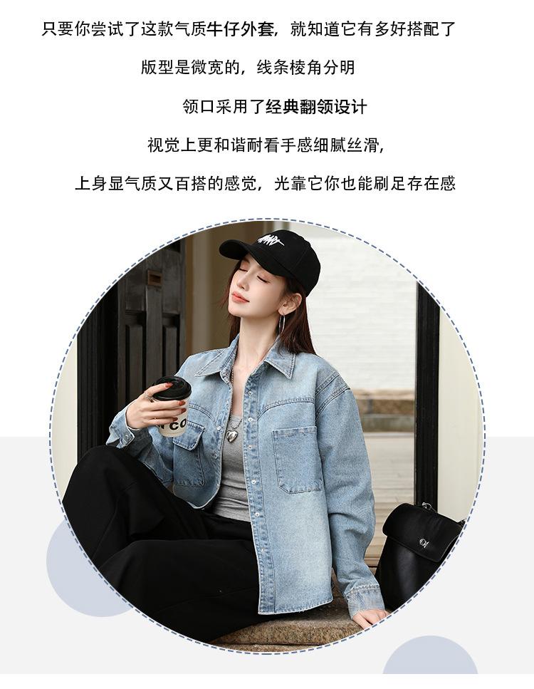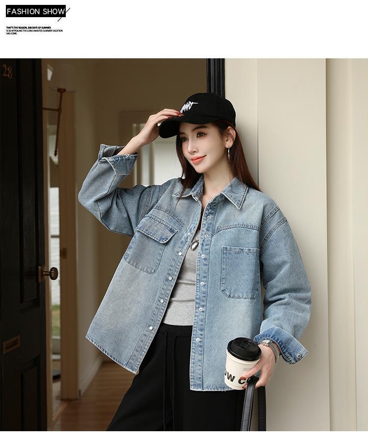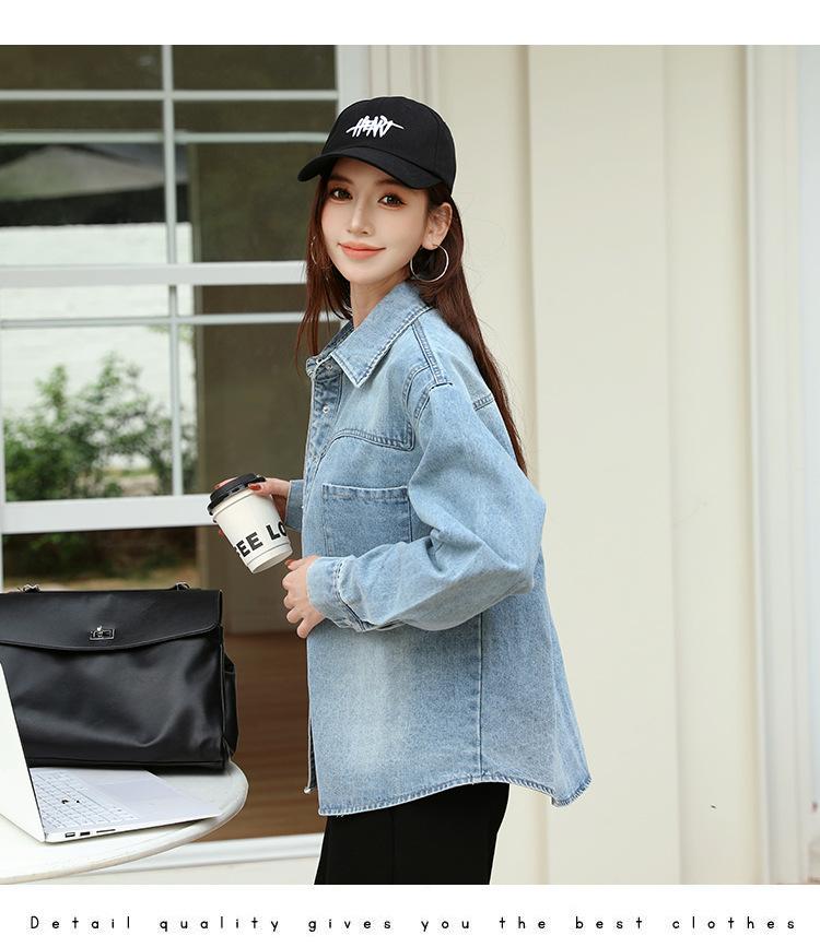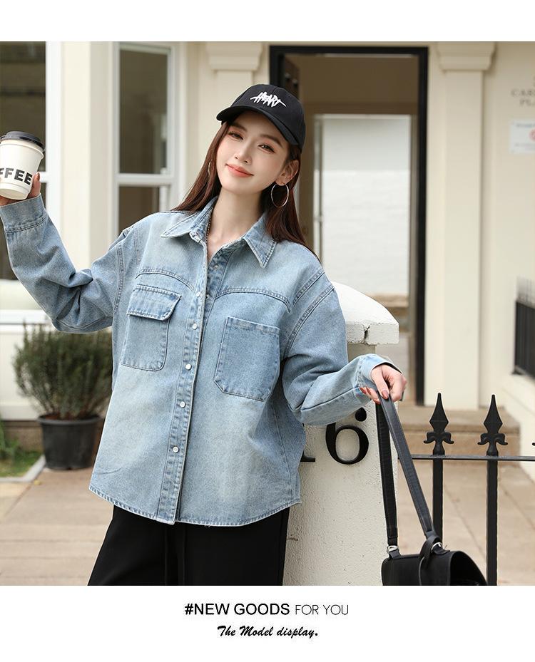 Foto real primavera nuevo temperamento elegante retro amigable con la piel lujo ligero casual versátil chaqueta camisa de mezclilla