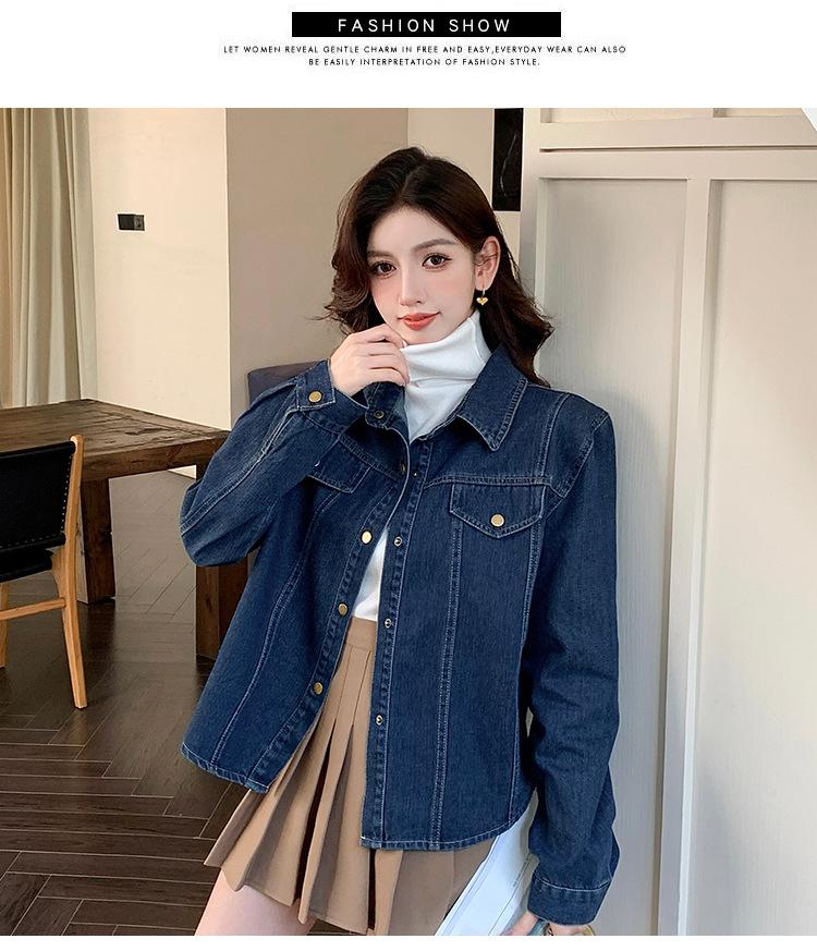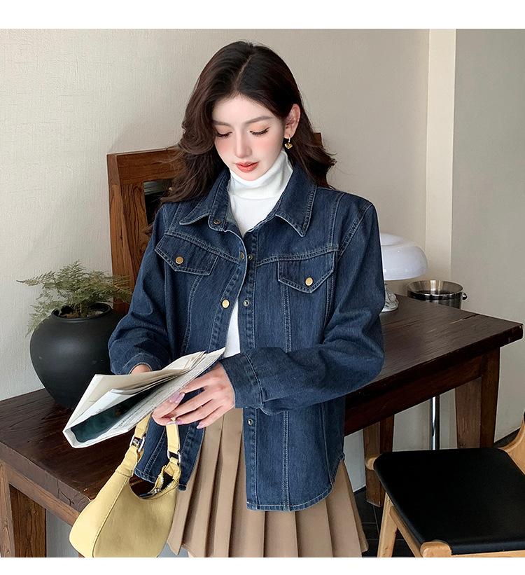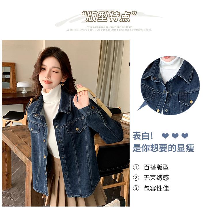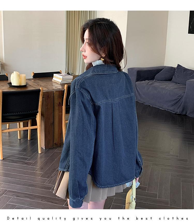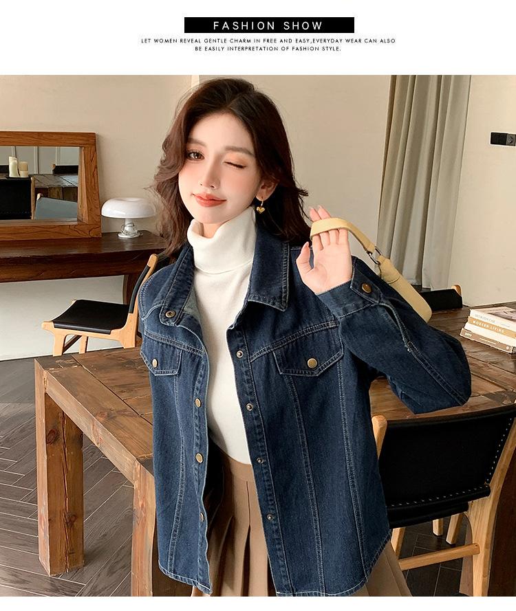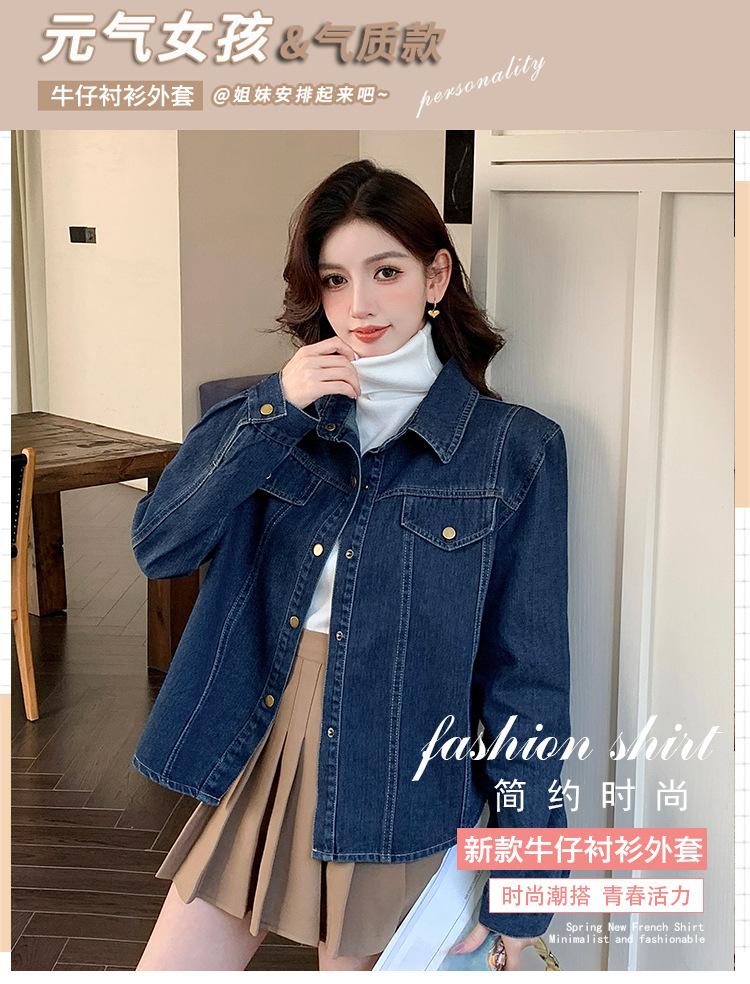 Foto Real Primavera Nuevo Popular Temperamento Retro Juvenil Lujo Ligero Casual Versátil Chaqueta Camisera de Mezclilla