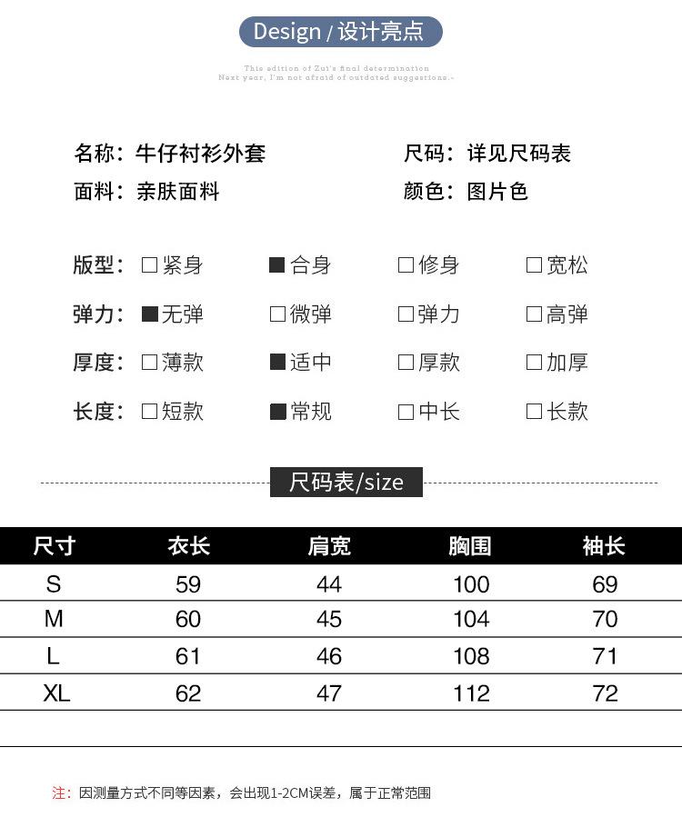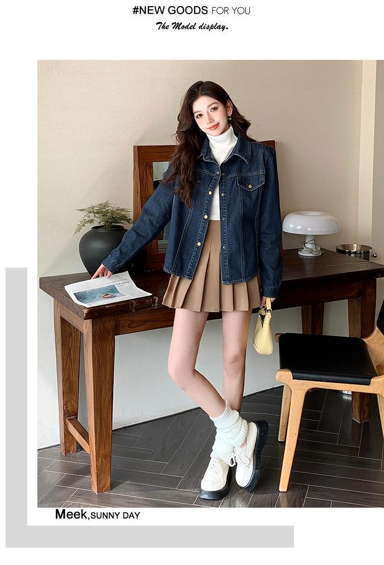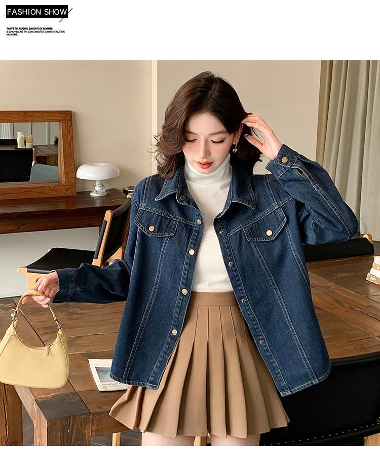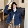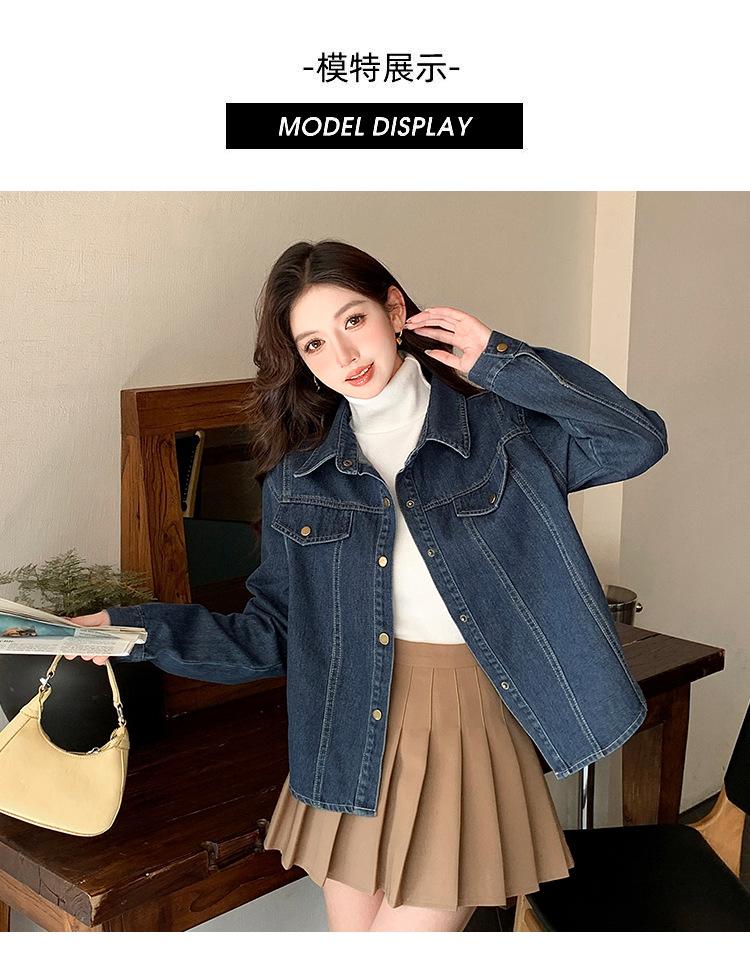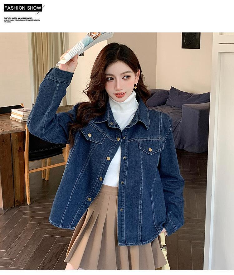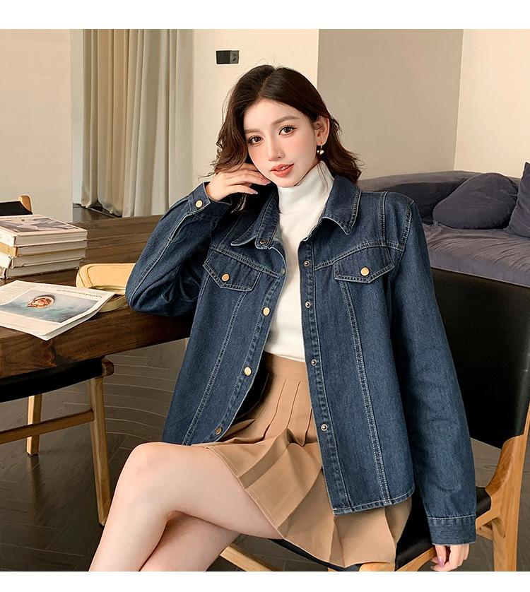 Foto Real Primavera Nuevo Popular Temperamento Retro Juvenil Lujo Ligero Casual Versátil Chaqueta Camisera de Mezclilla
