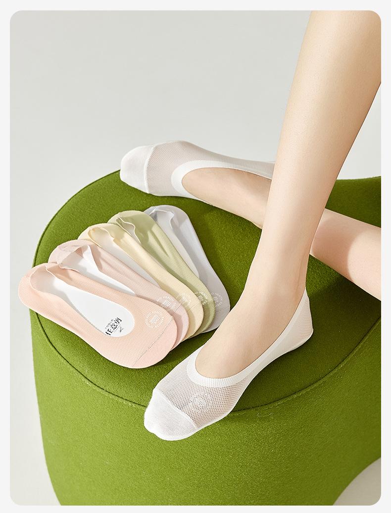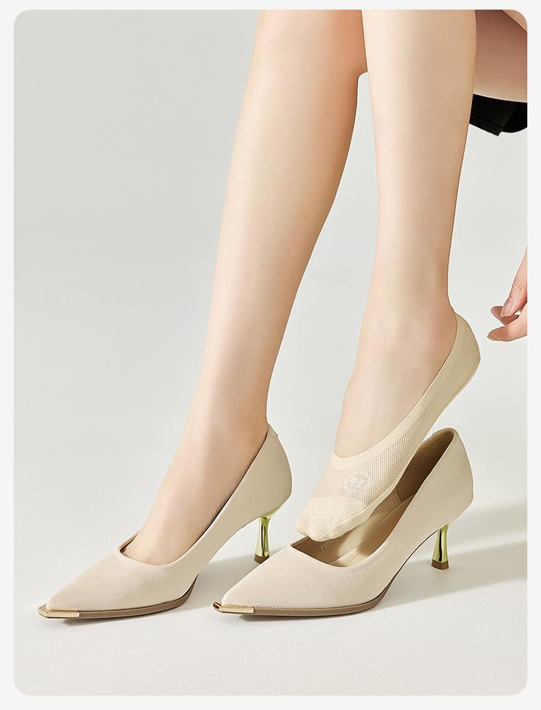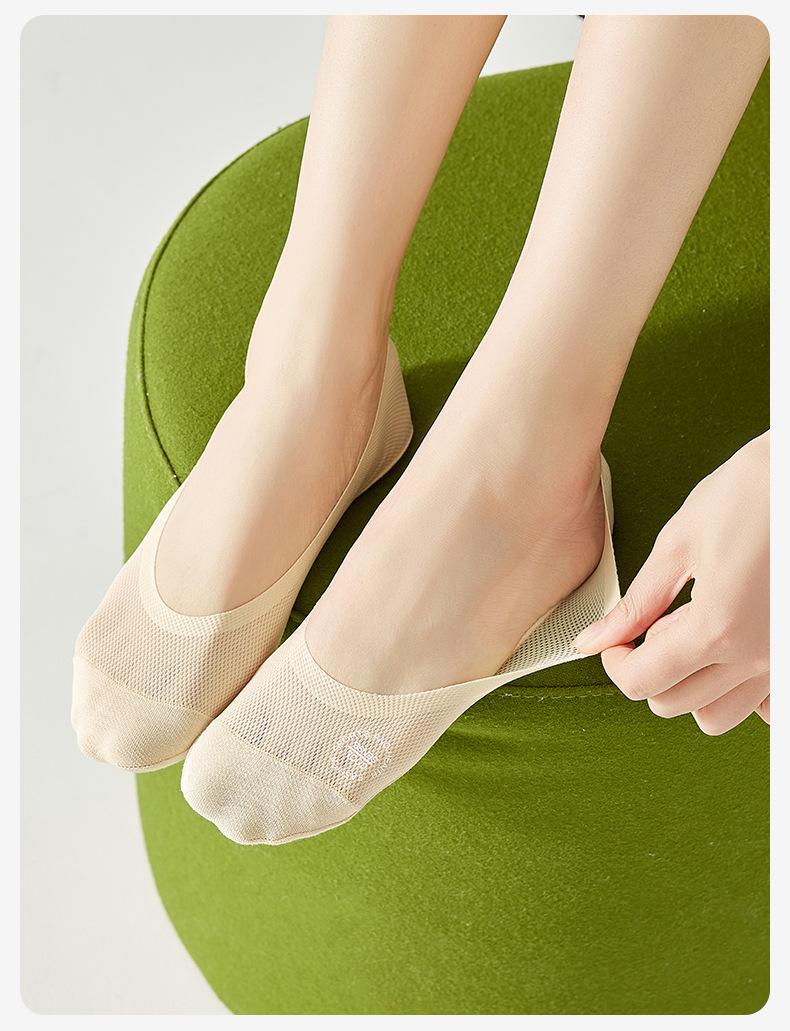 Calcetines de Barco de Seda de Hielo para Mujer Verano Delgados Boca Baja Invisibles Parte Inferior de Algodón Puro Tacones Altos Zapatos Individuales Verano Antideslizantes Calcetines Invisibles