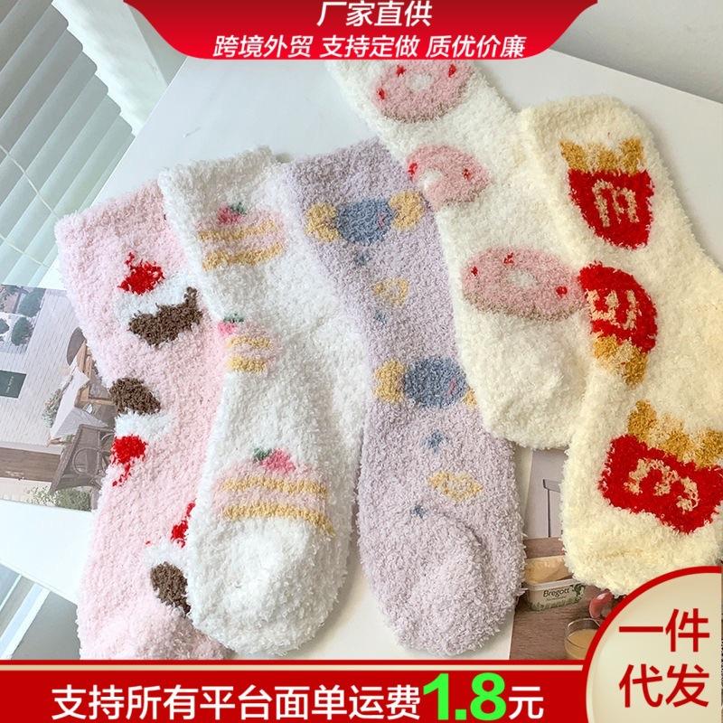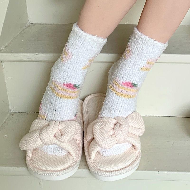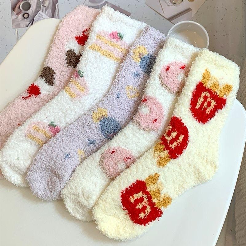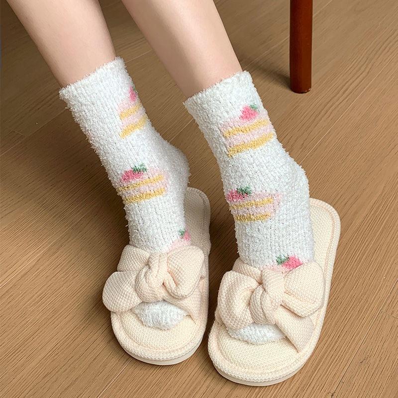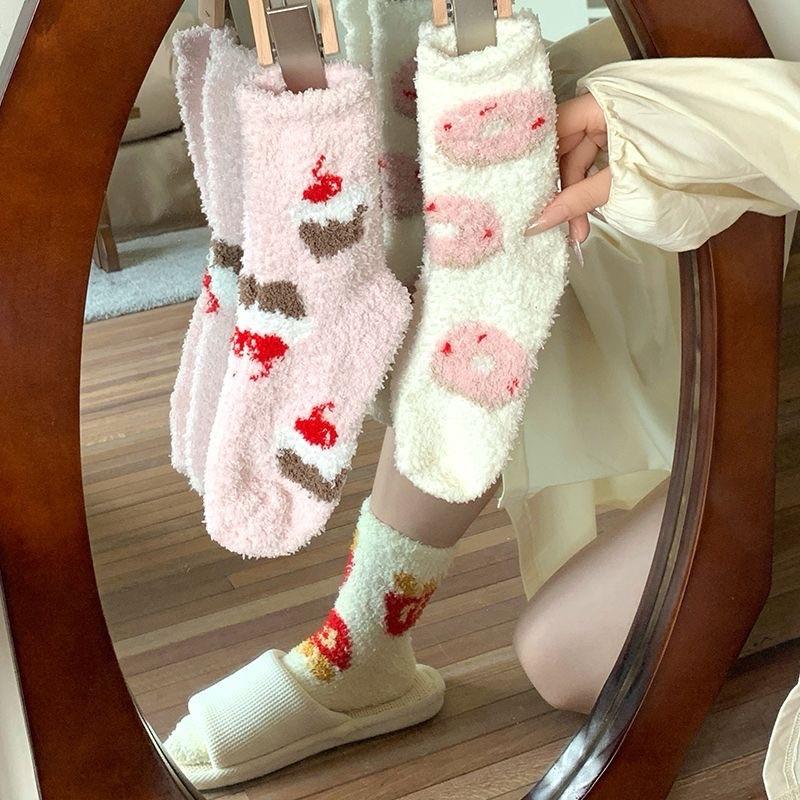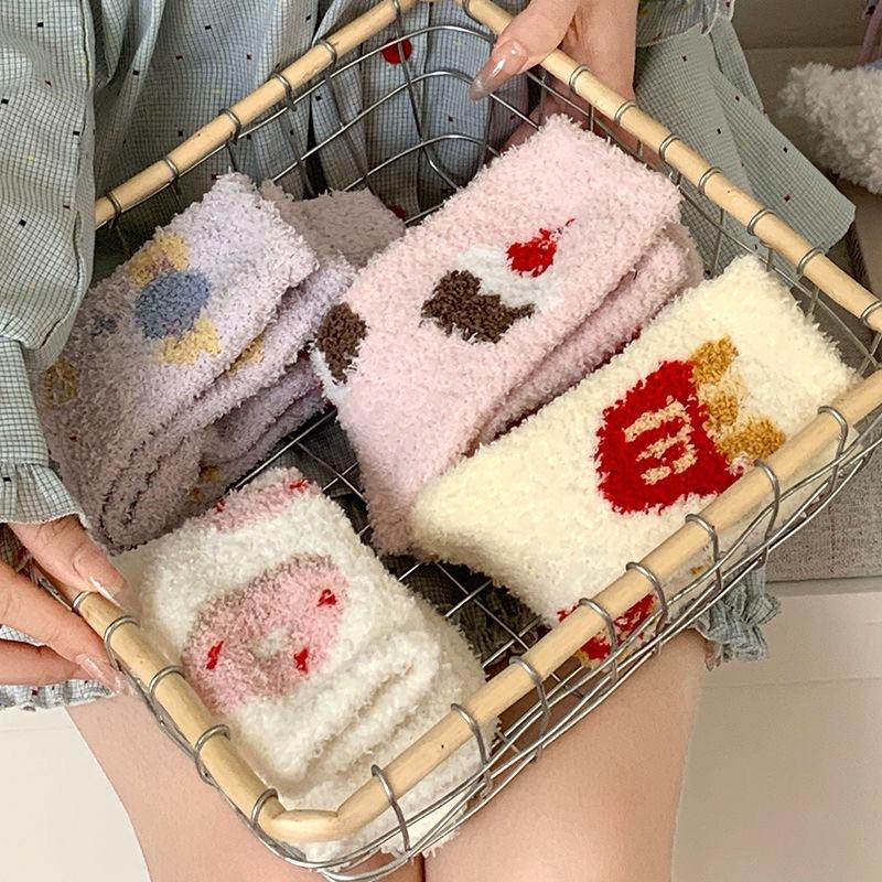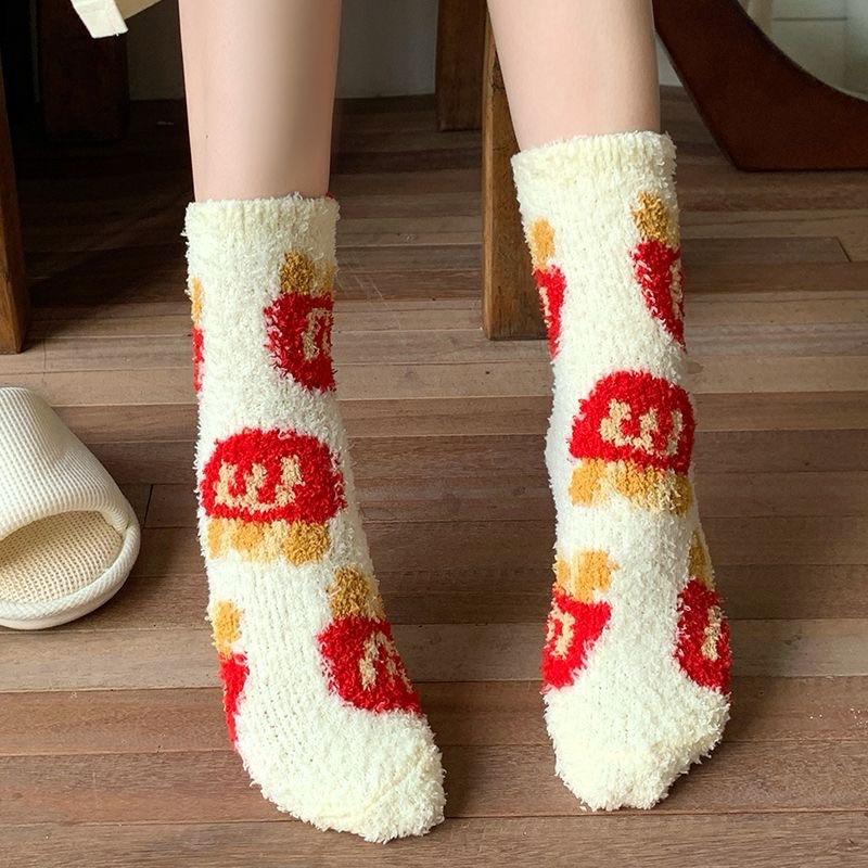 Calcetines Japoneses Lindos de Dibujos Animados para el Hogar Postparto para el Piso Calcetines Cálidos Engrosados para Mujer Otoño Invierno Vellón Coral Más Terciopelo Calcetines para Dormir