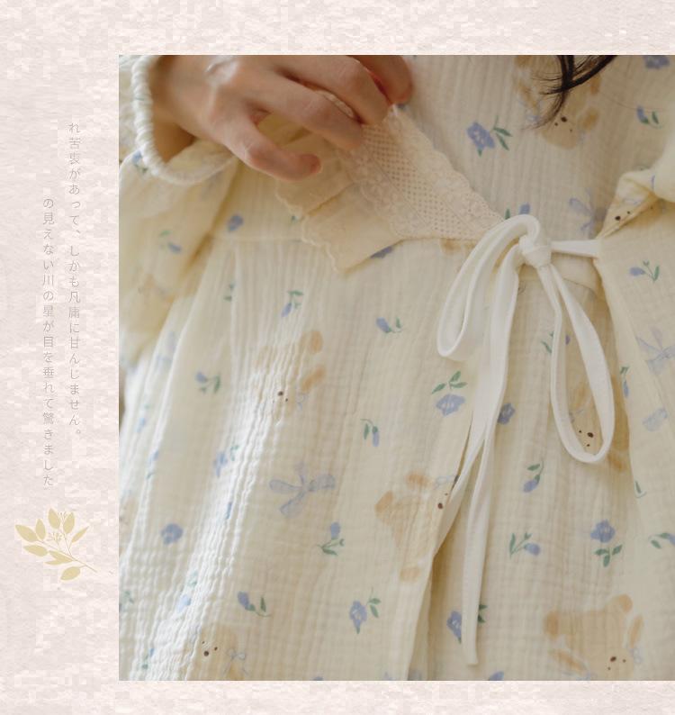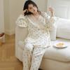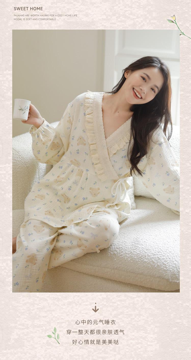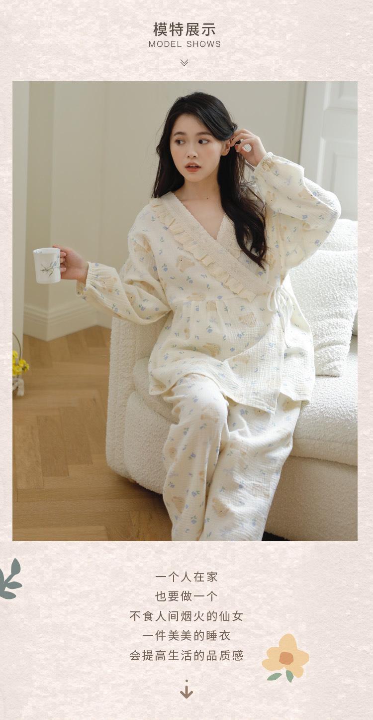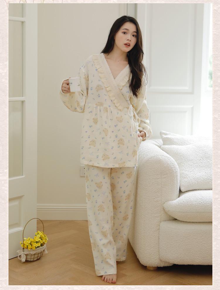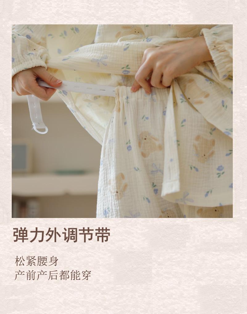 Happy Moon Nuevo Estilo Gasa de Algodón Puro Ropa de Maternidad para Mujer Temporada de Primavera y Otoño Mujeres Embarazadas Postparto Lactancia Fresco Dulce Pijama Conjunto de Dos Piezas