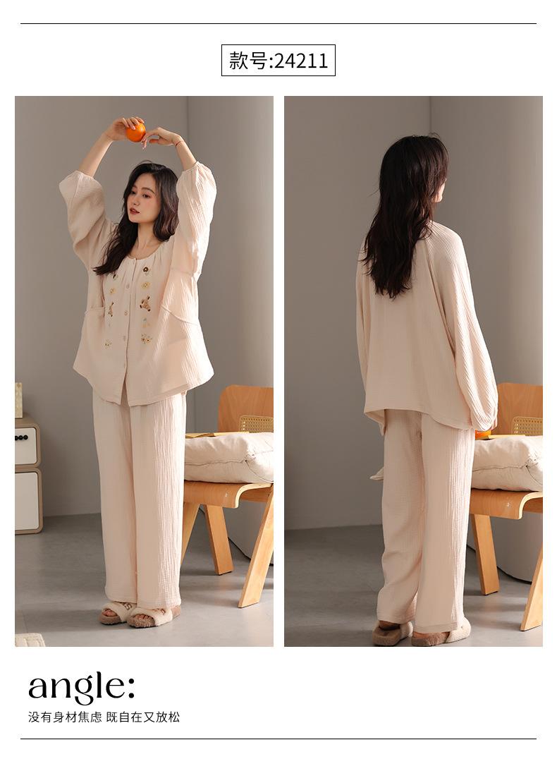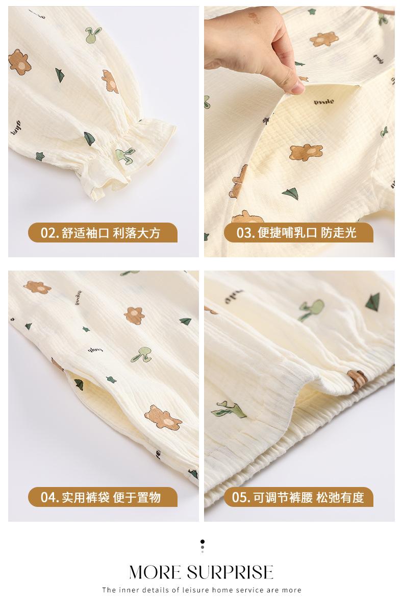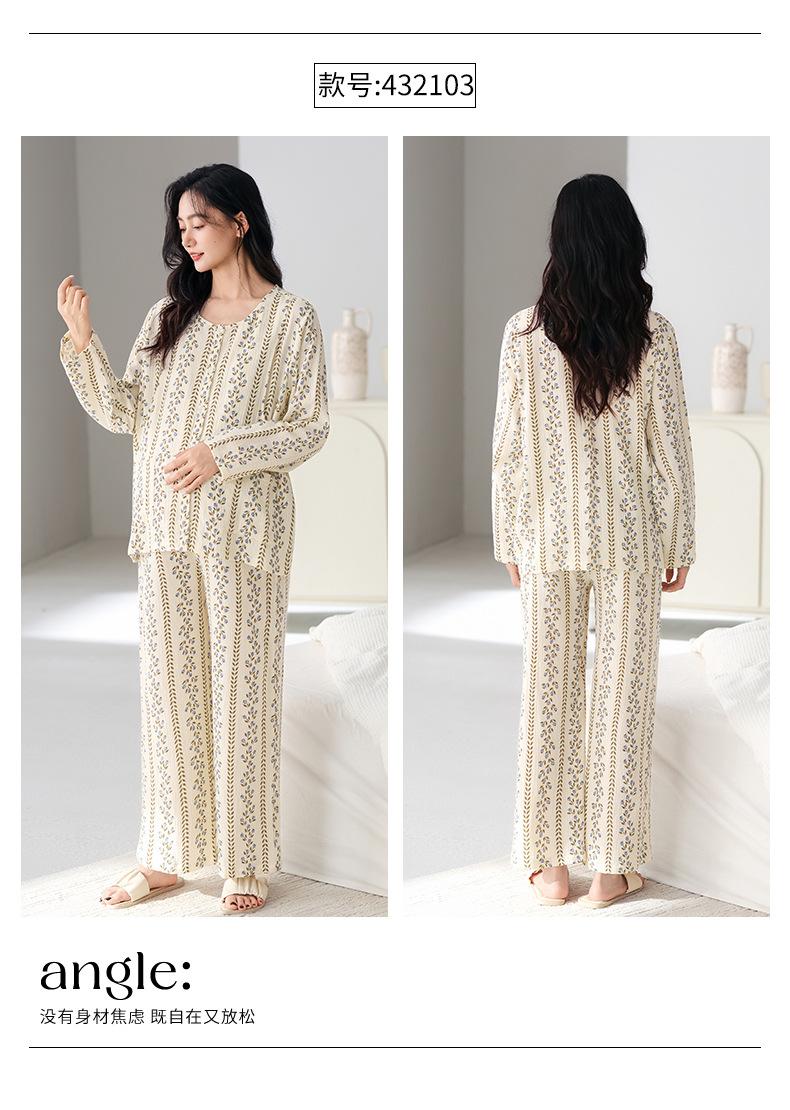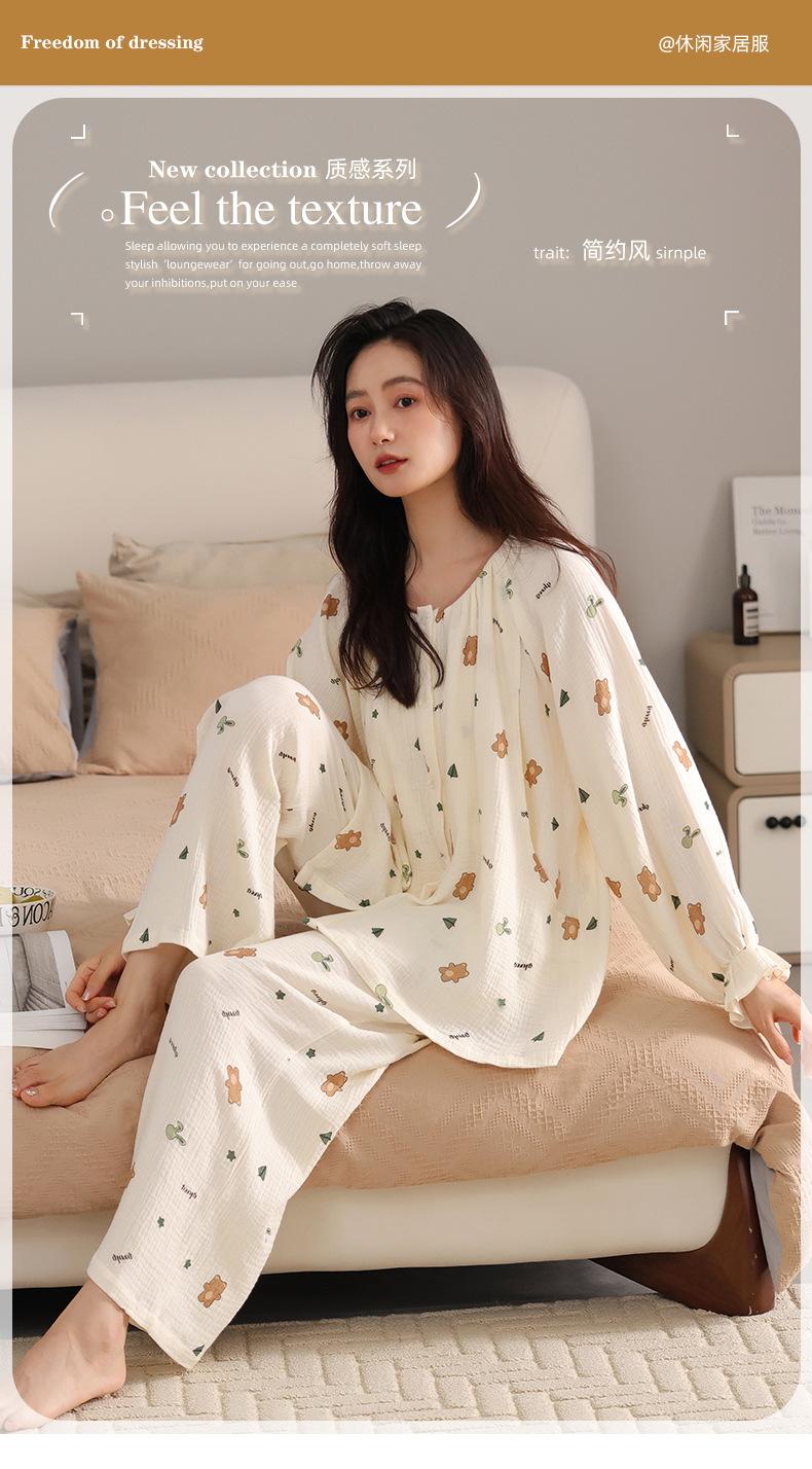 Pijama de Lactancia de Nuevo Estilo de Primavera y Otoño para Mujeres Embarazadas Algodón Gasa Ropa de Lactancia Postparto Manga Larga Pantalón Largo Cuello Redondo Conjunto de Ropa para el Hogar