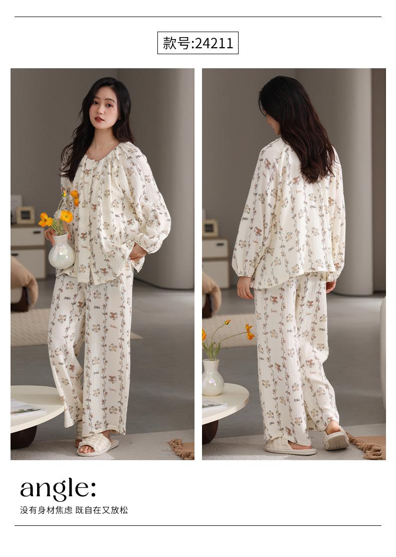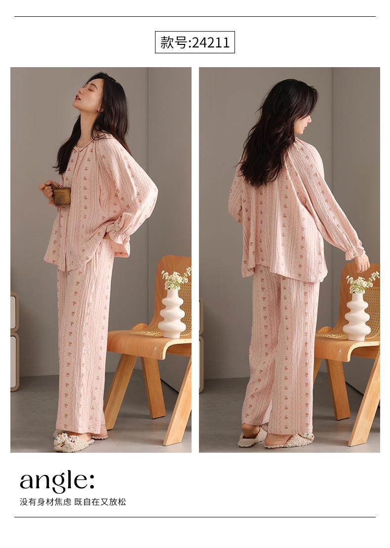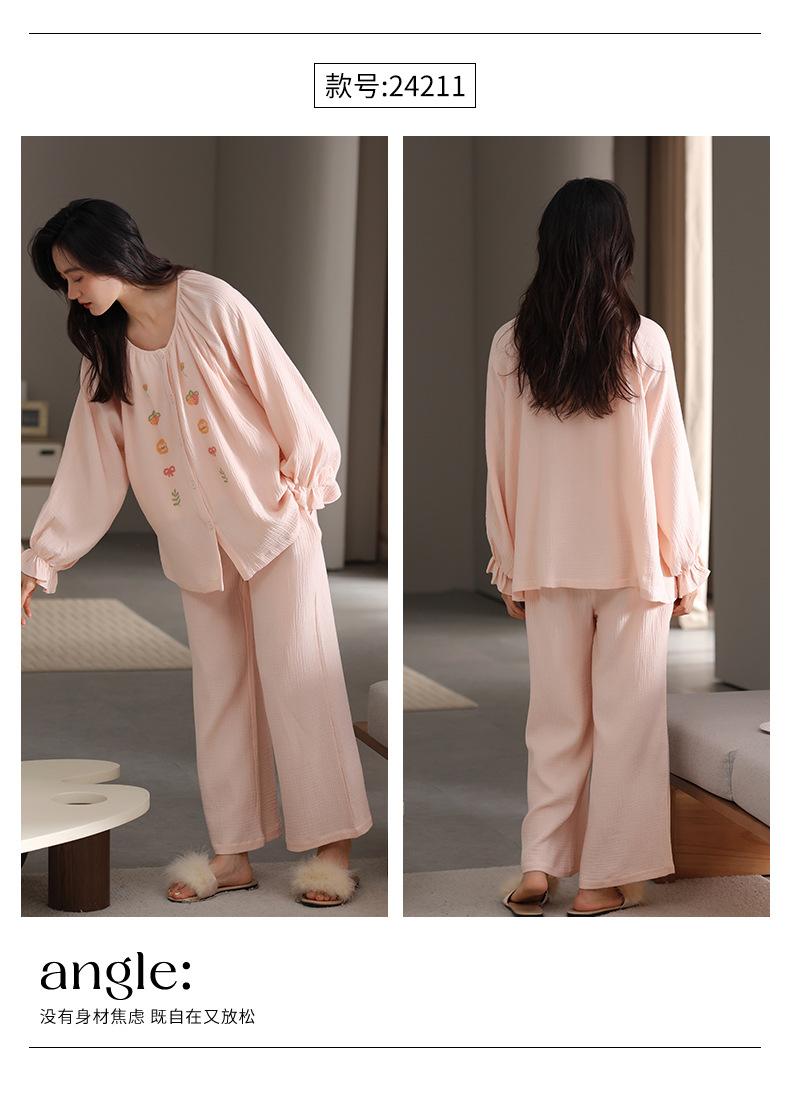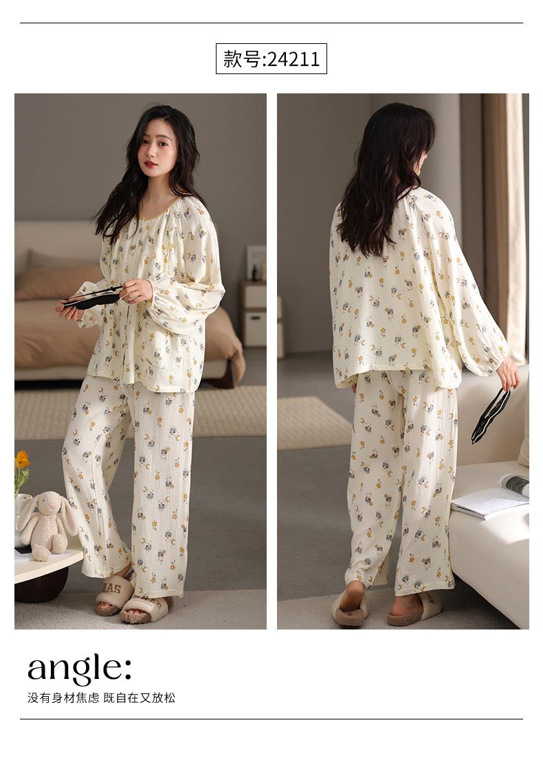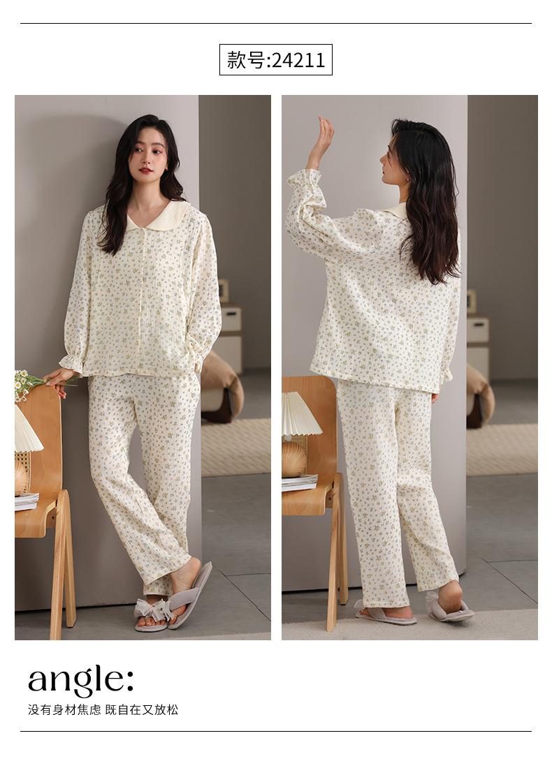 Pijama de Lactancia de Nuevo Estilo de Primavera y Otoño para Mujeres Embarazadas Algodón Gasa Ropa de Lactancia Postparto Manga Larga Pantalón Largo Cuello Redondo Conjunto de Ropa para el Hogar