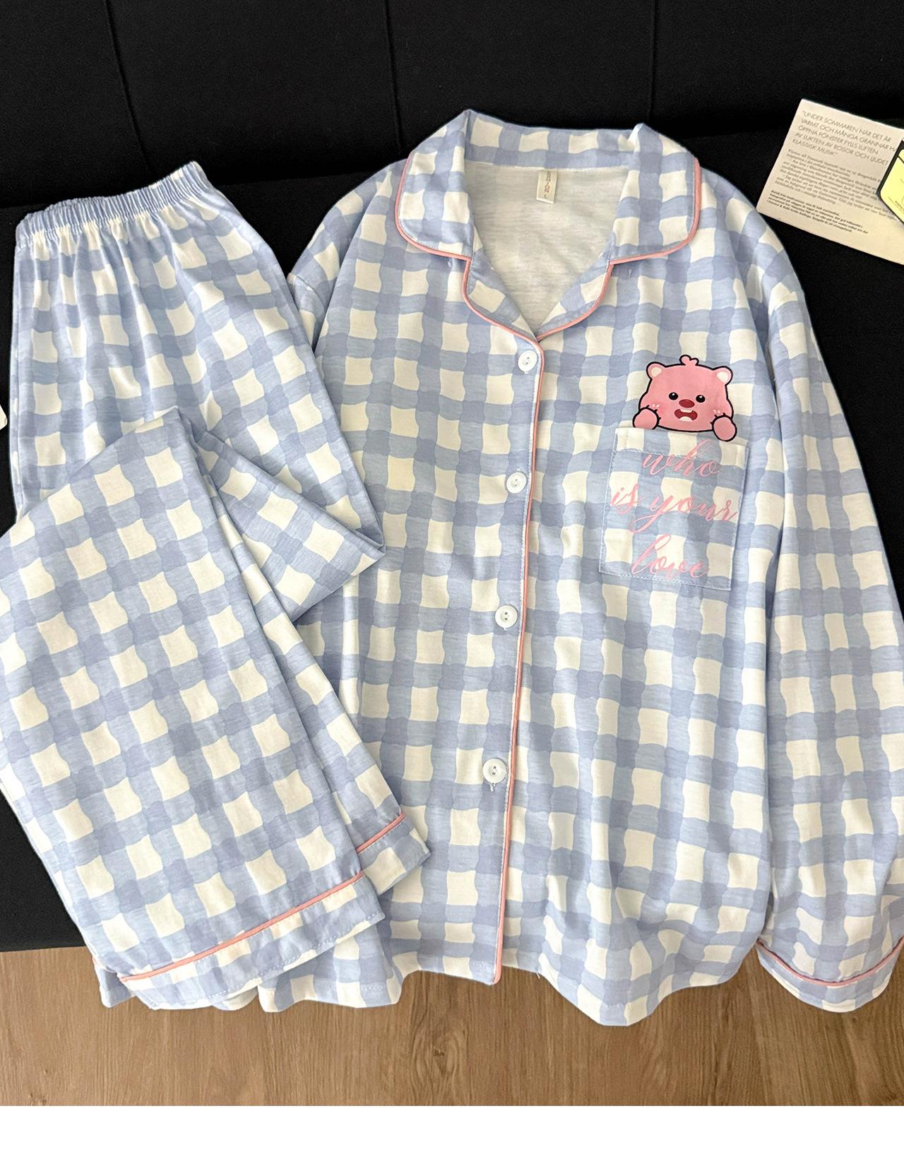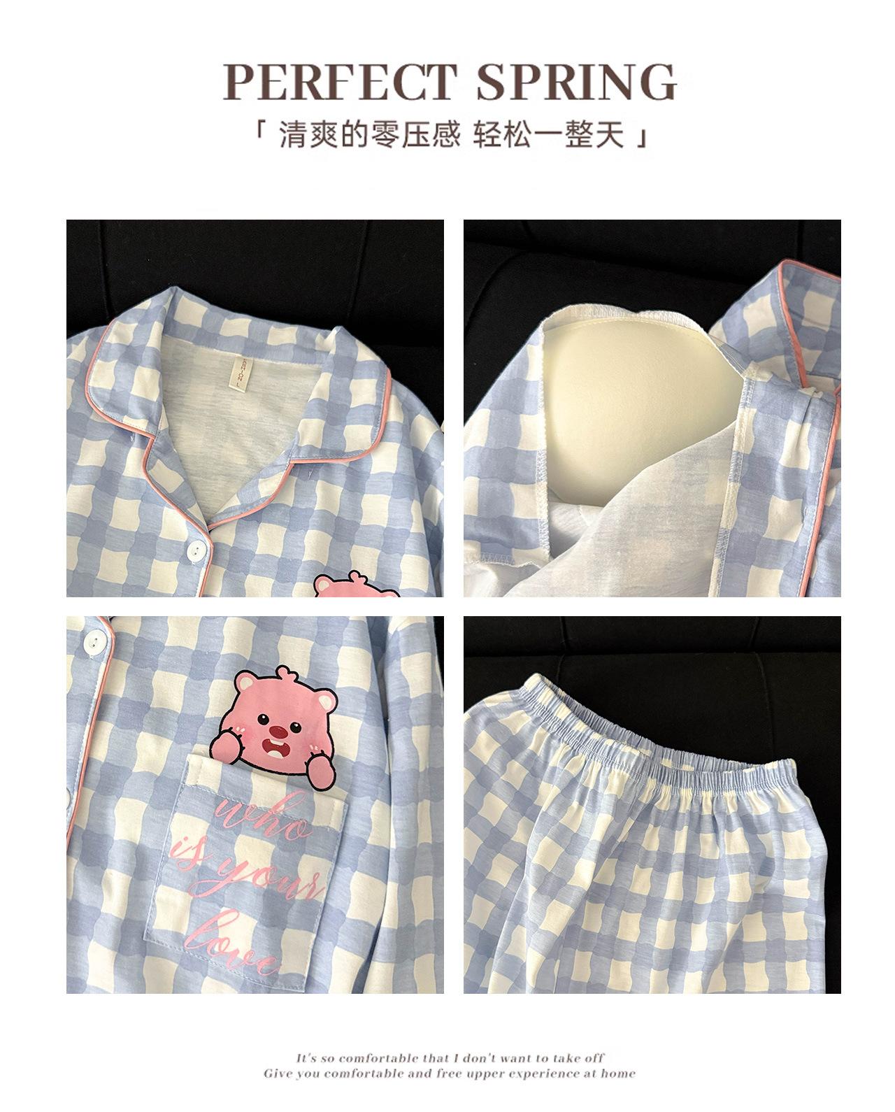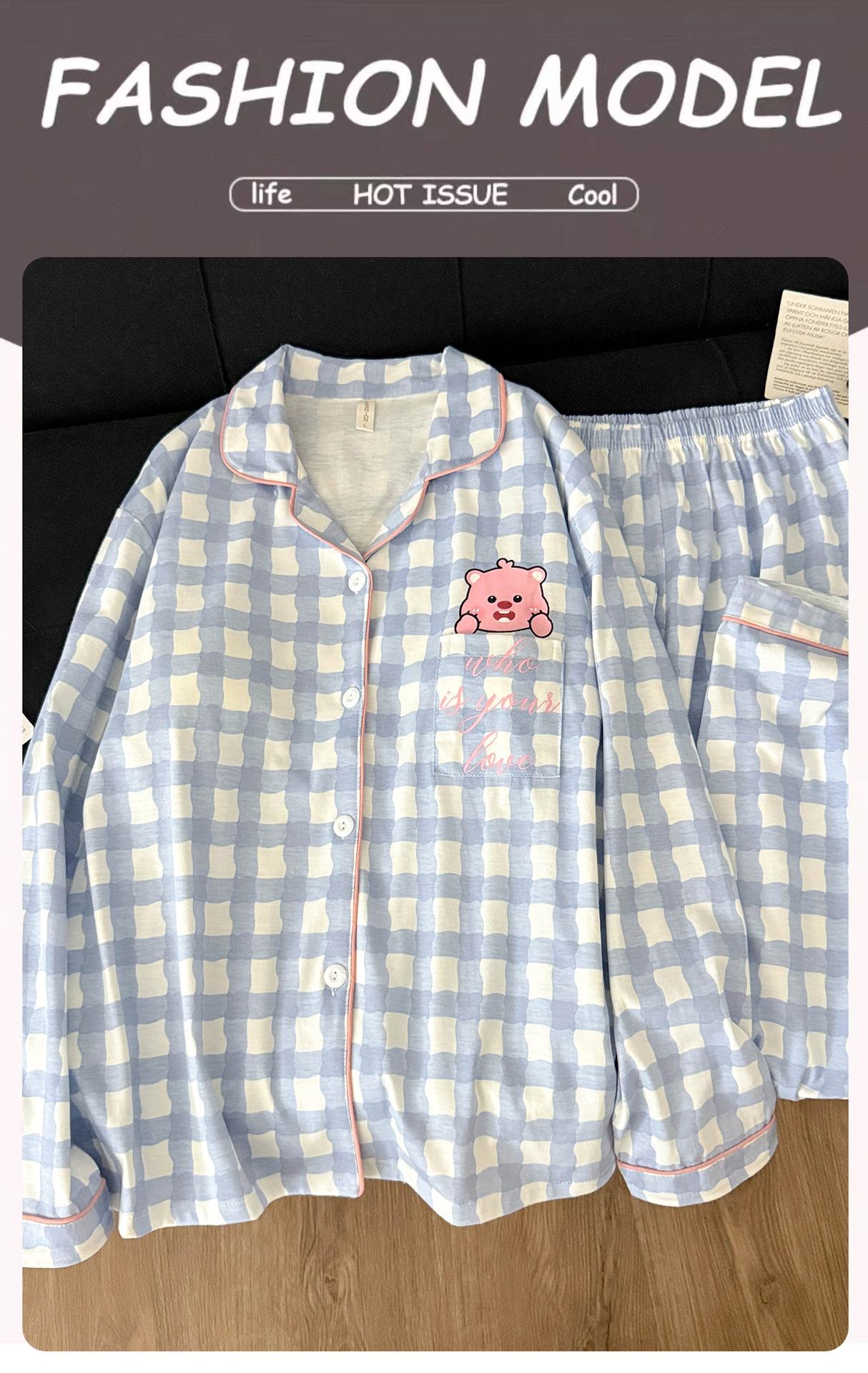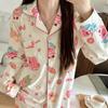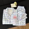 Pijamas de Primavera y Otoño para Mujer Manga Larga Algodón para Mujer Lindo Nuevo Cárdigan de Dibujos Animados Ropa de Casa Venta al por Mayor Set de Alta Gama