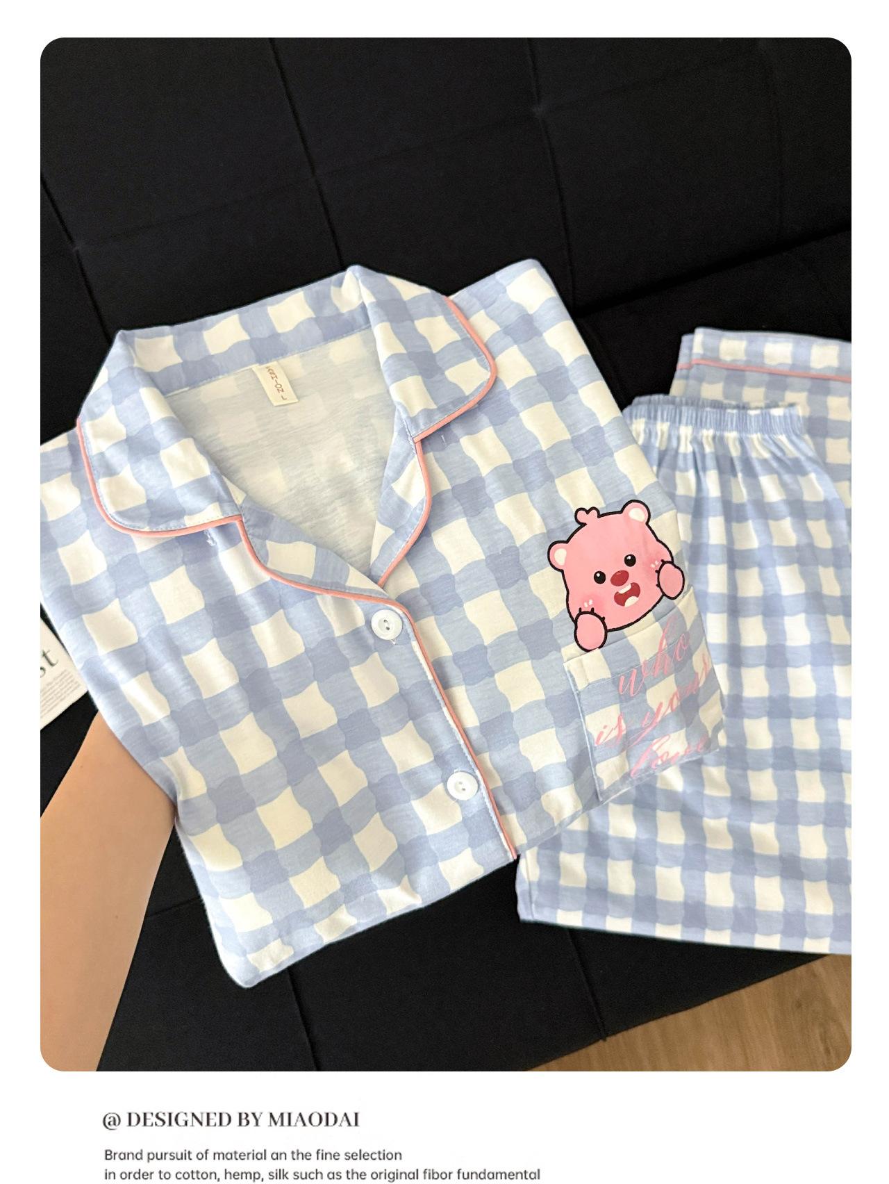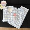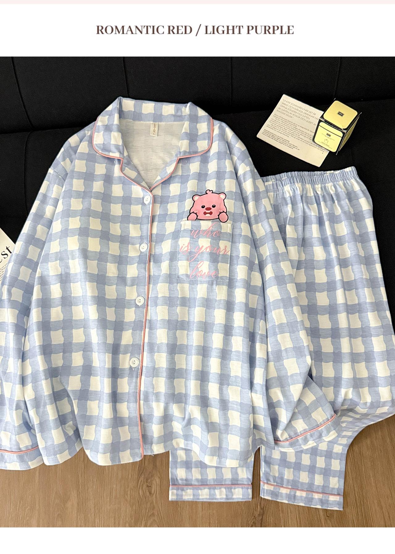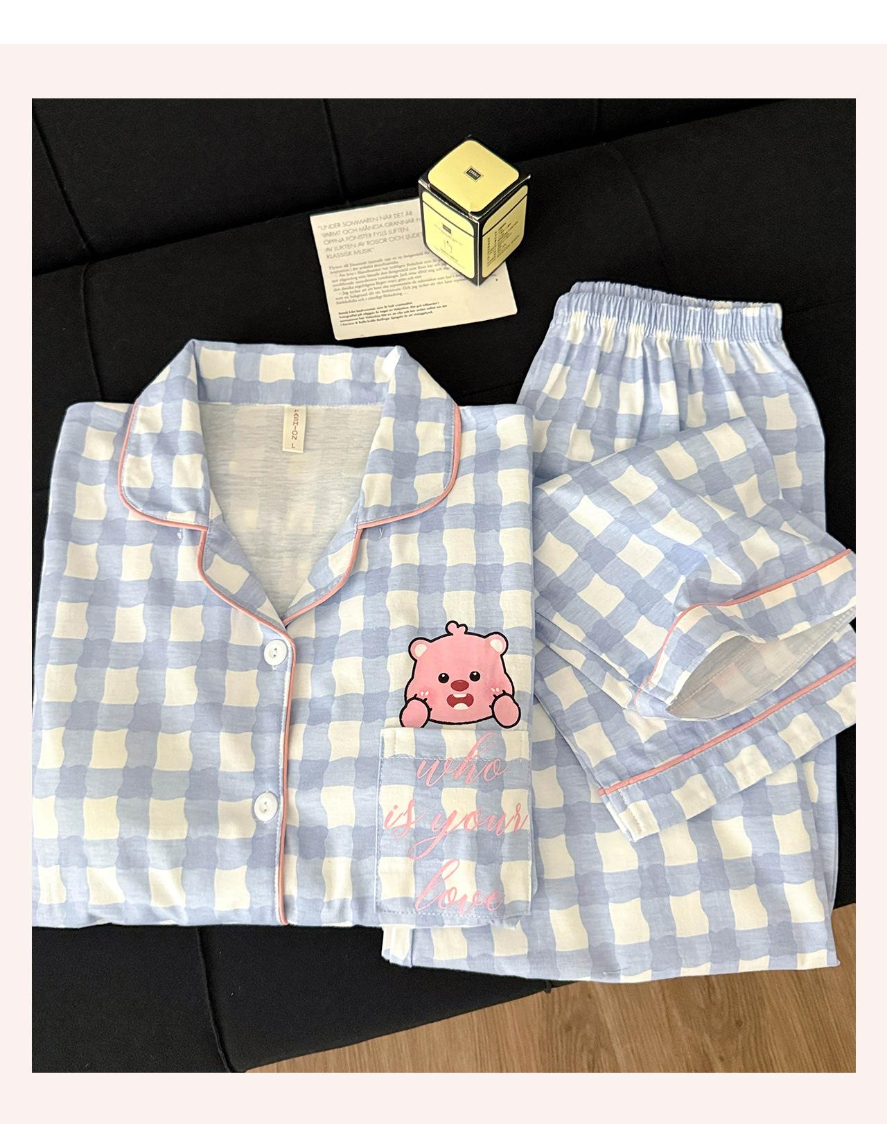 Pijamas de Primavera y Otoño para Mujer Manga Larga Algodón para Mujer Lindo Nuevo Cárdigan de Dibujos Animados Ropa de Casa Venta al por Mayor Set de Alta Gama