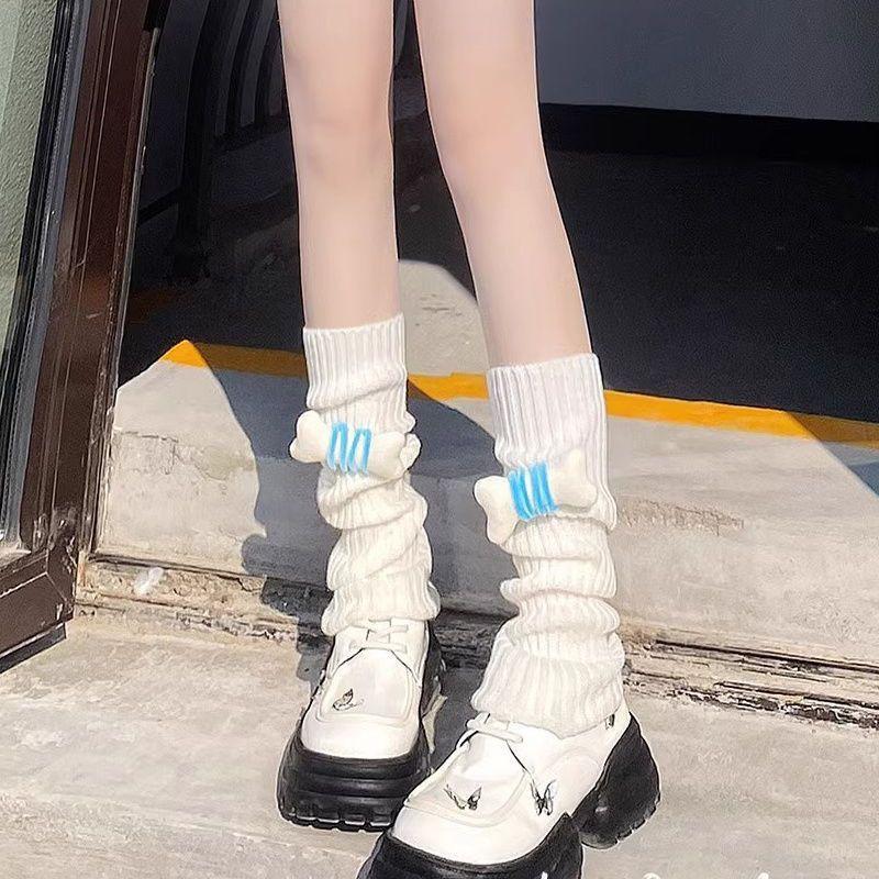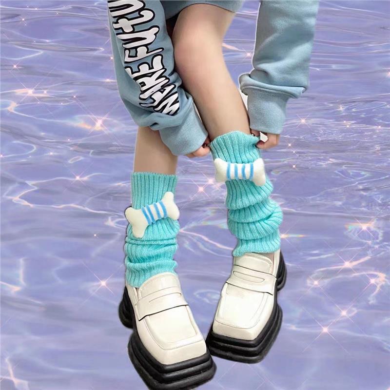 Otoño e invierno lindos calentadores de piernas Lolita transpirables calcetines holgados de dibujos animados calcetines cálidos de punto hasta la pantorrilla calcetines estilo escolar jk mujeres
