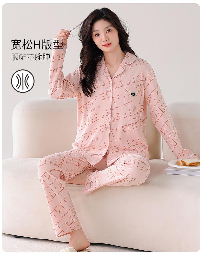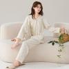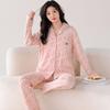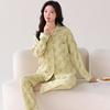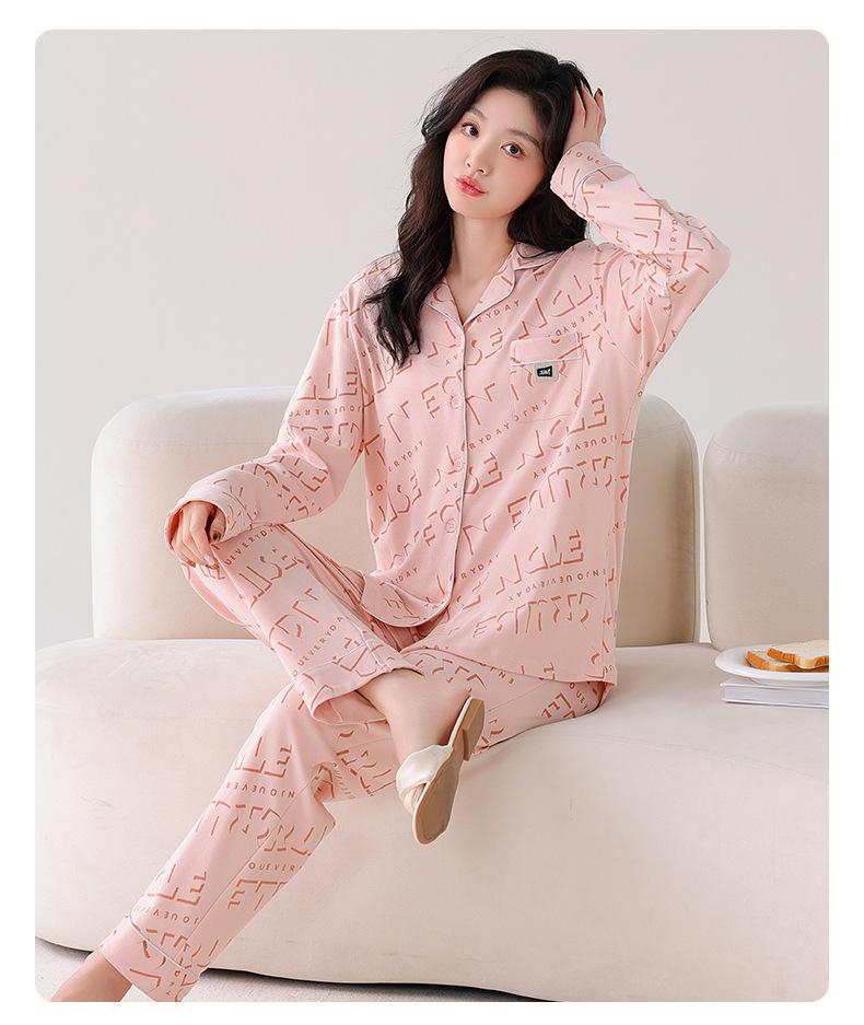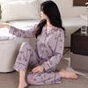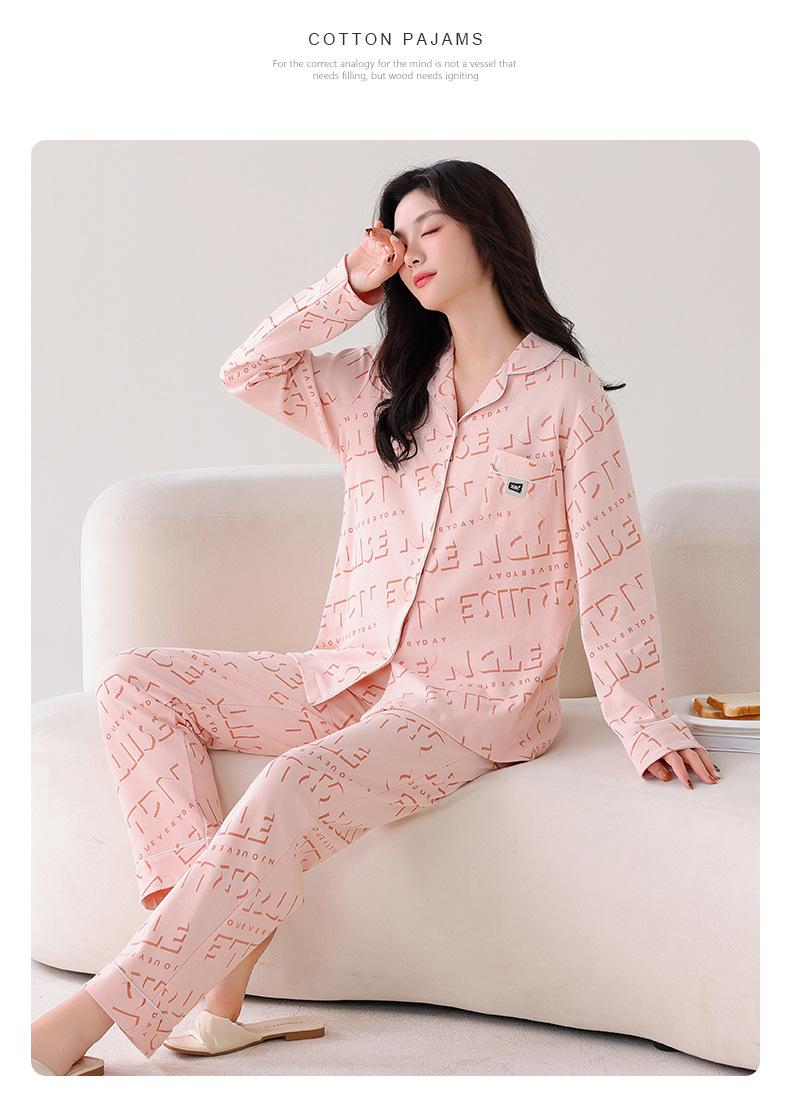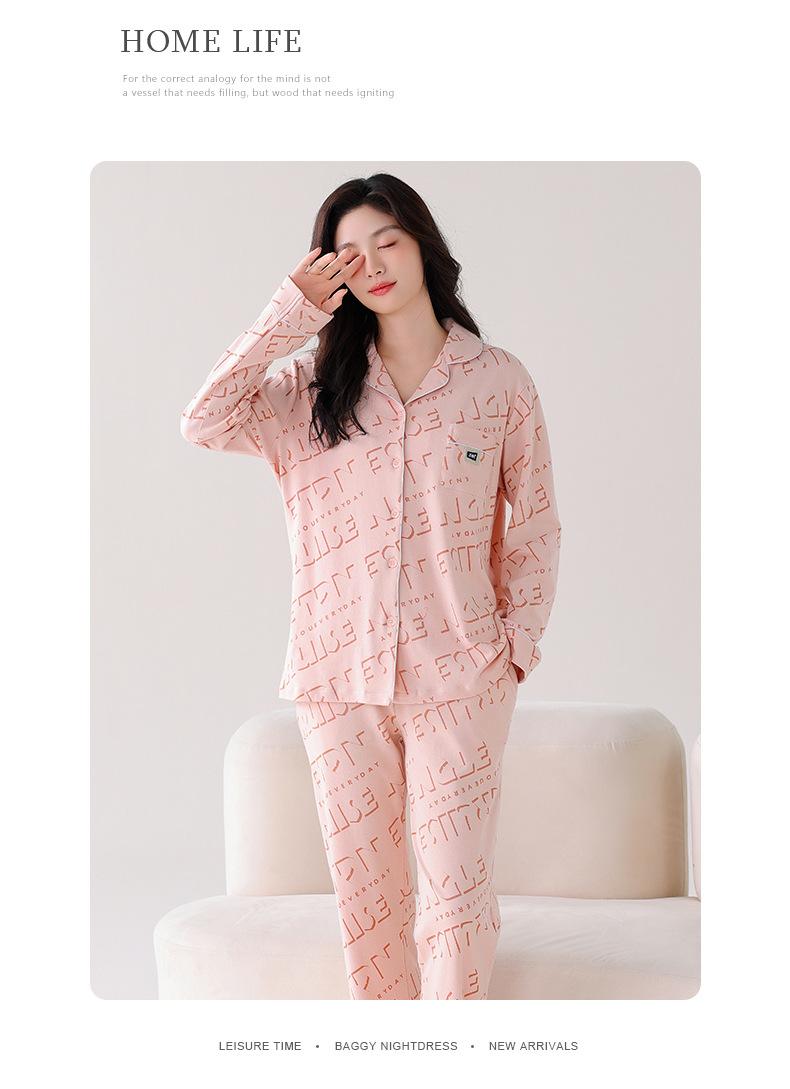 Pijama Nuevo para Mujer 2025 100% Algodón Puro Primavera y Otoño Cárdigan de Manga Larga Talla Extra Casual Conjunto de Ropa de Hogar Todo Algodón