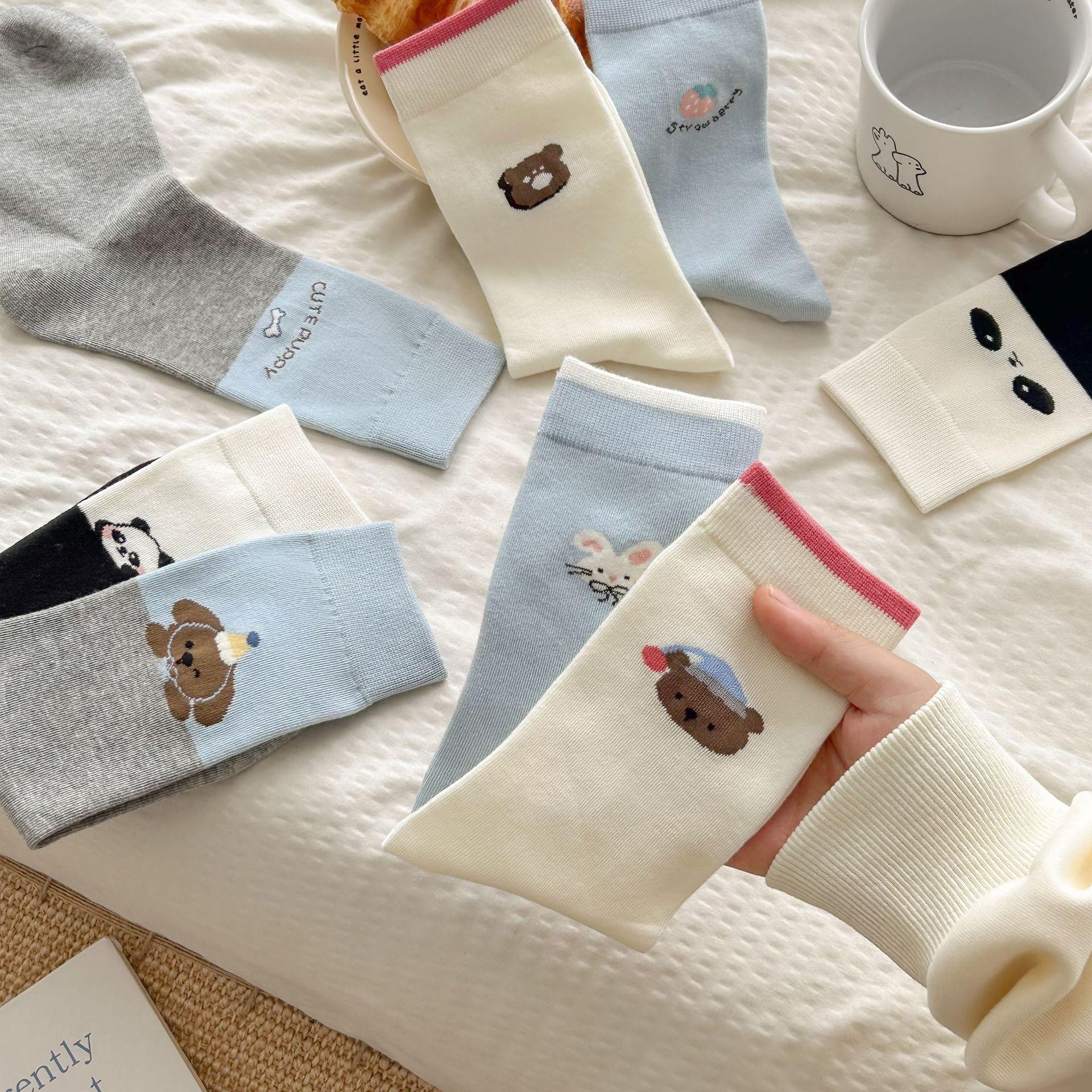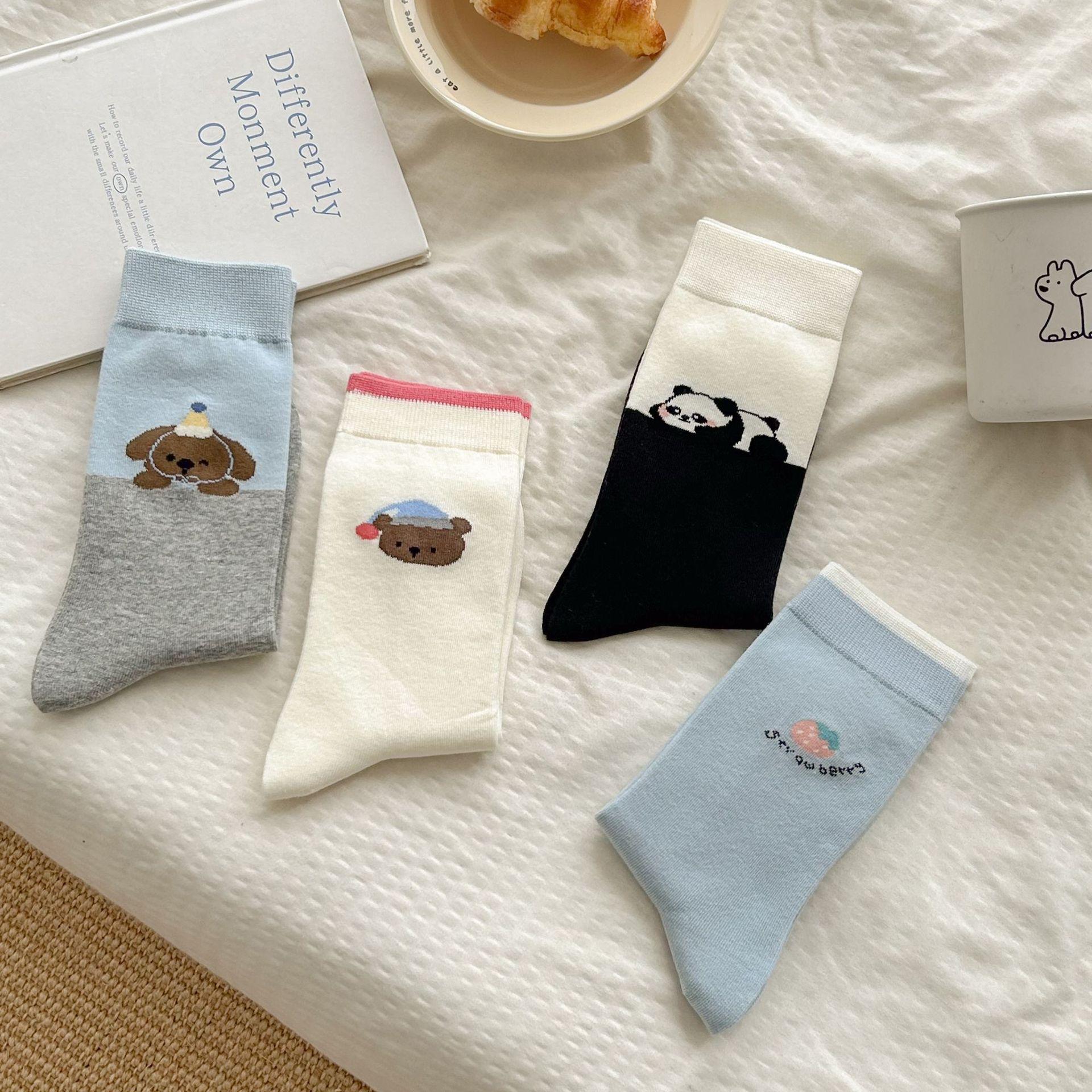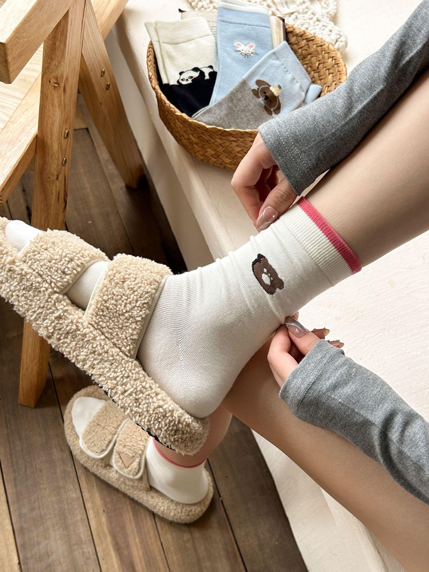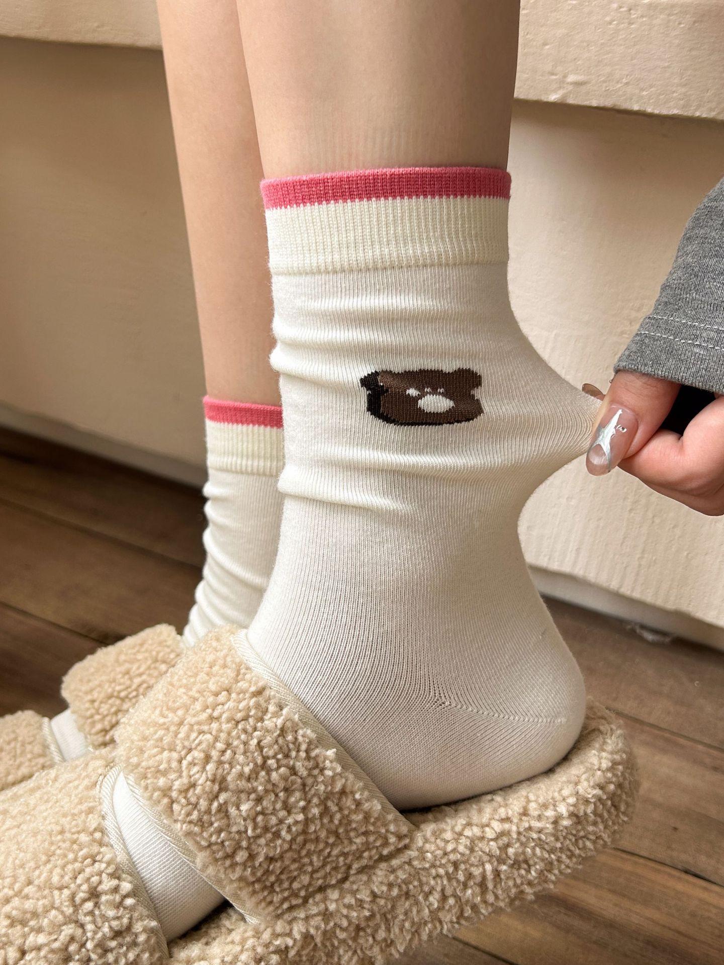 Calcetines de algodón puro para mujer otoño e invierno estilo ins coreano bloque de color suave caricatura calcetines de felpa estilo lindo versátil estilo AB calcetines de media caña