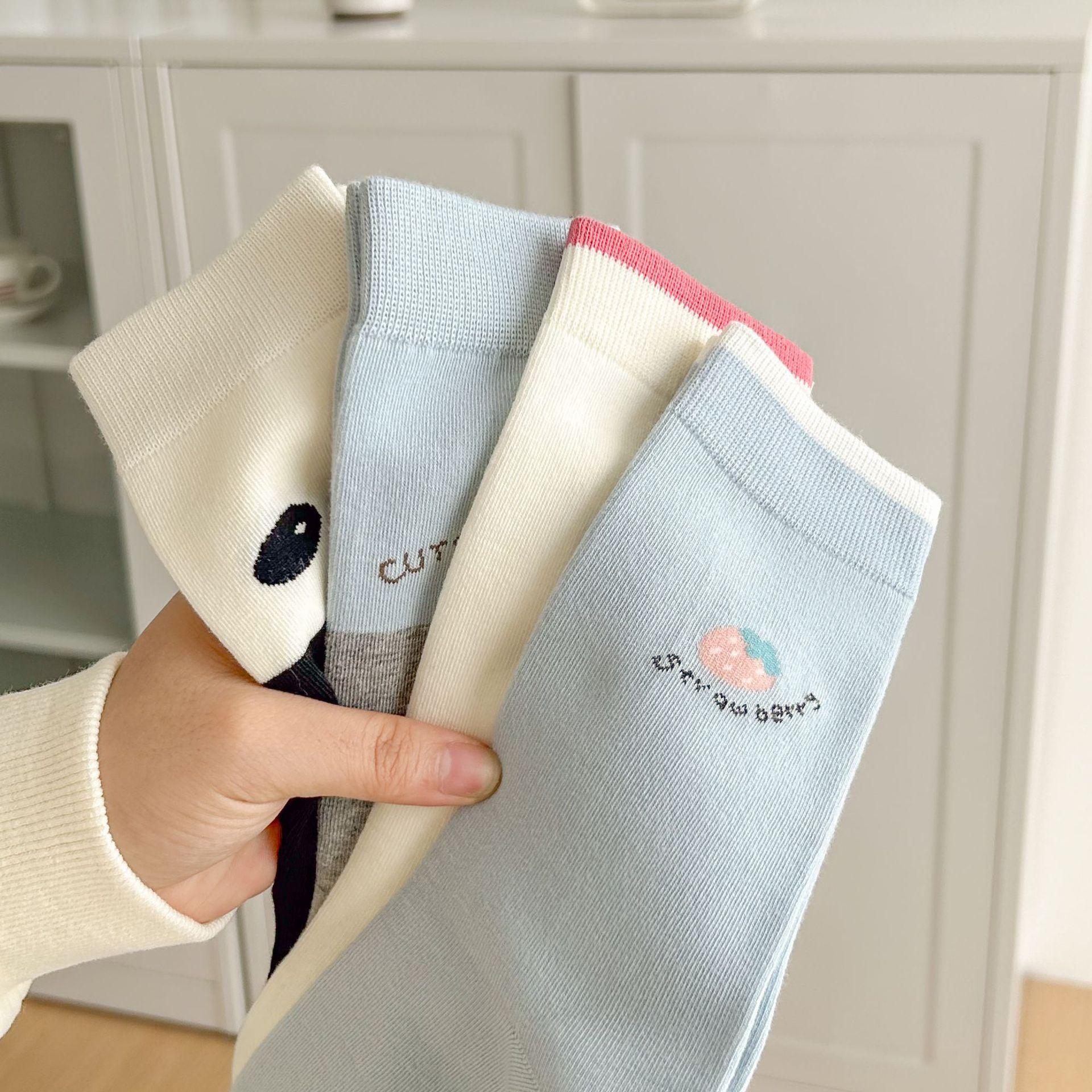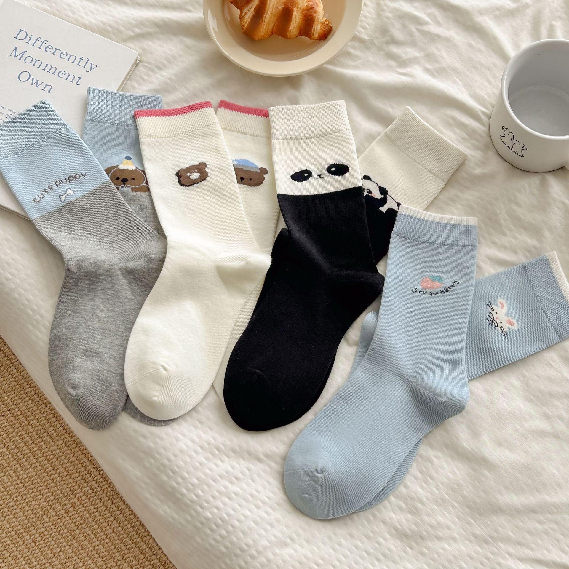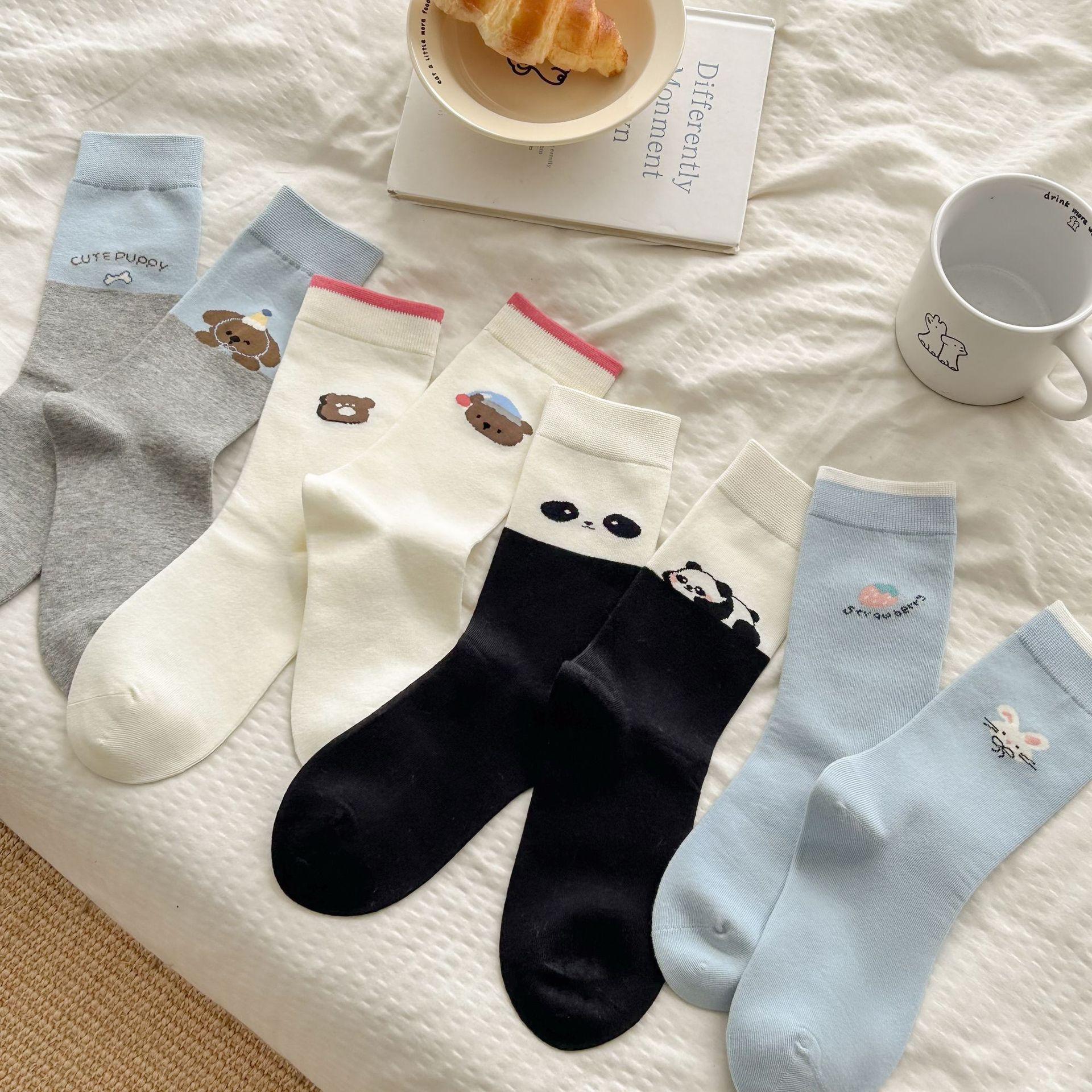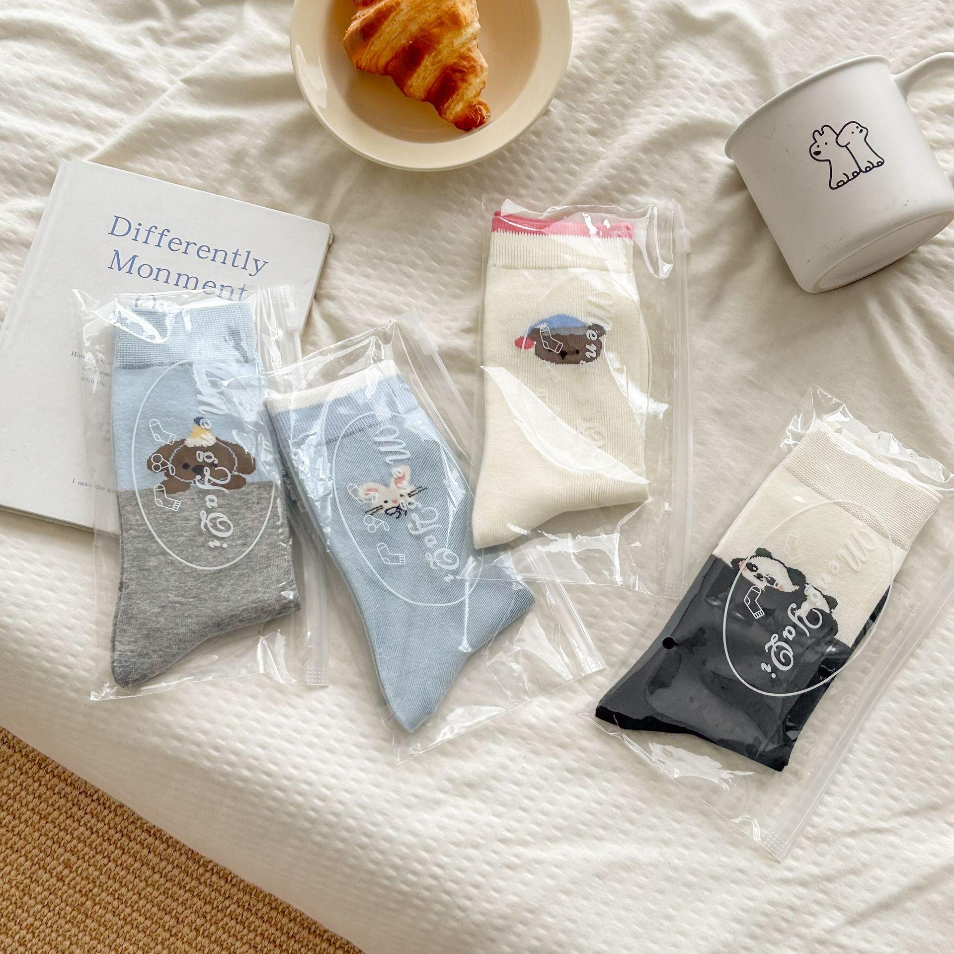 Calcetines de algodón puro para mujer otoño e invierno estilo ins coreano bloque de color suave caricatura calcetines de felpa estilo lindo versátil estilo AB calcetines de media caña
