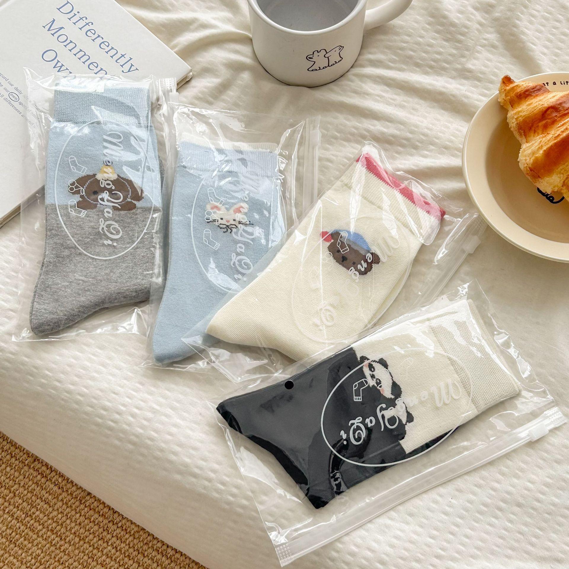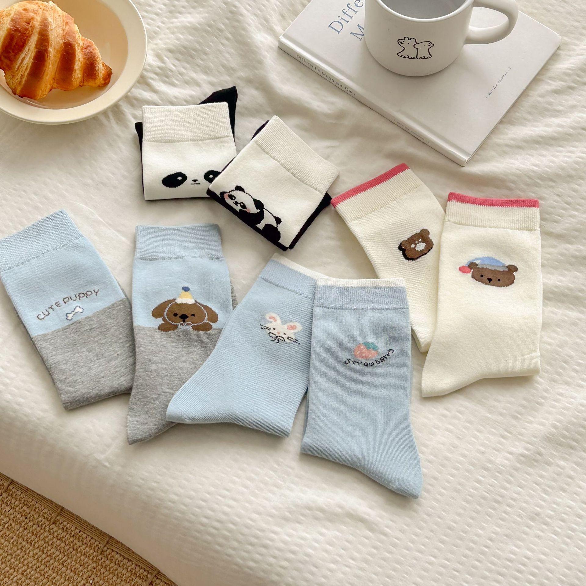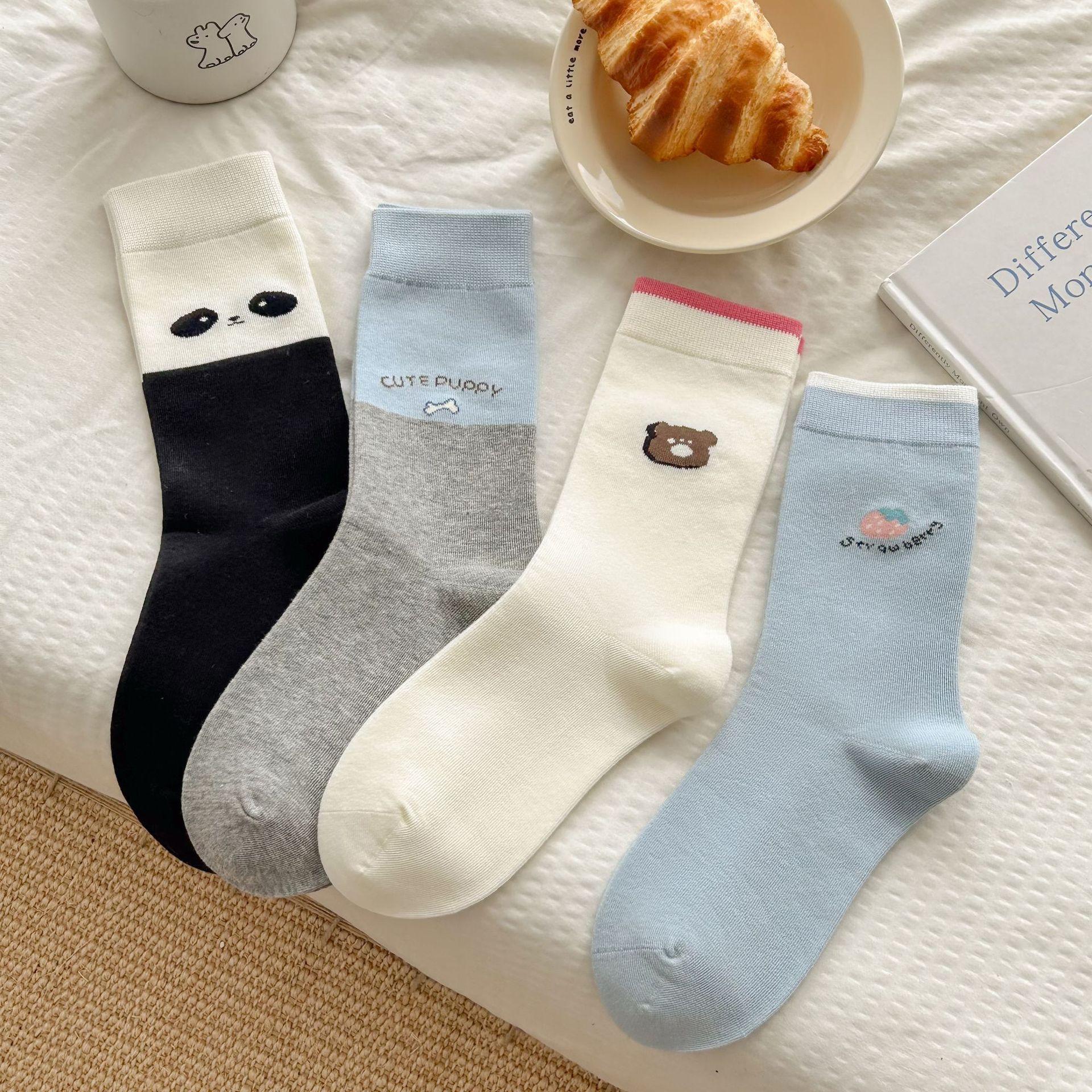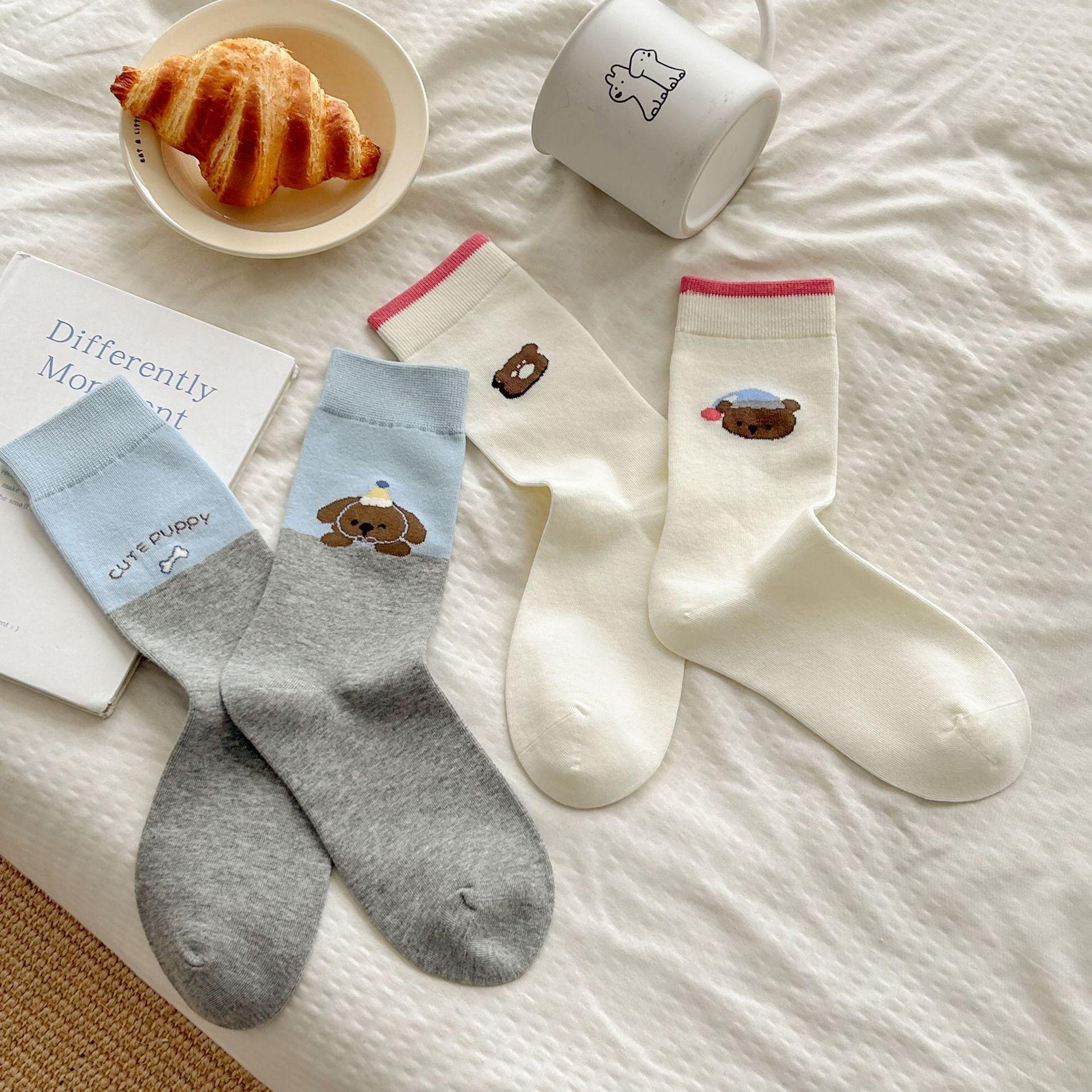 Calcetines de algodón puro para mujer otoño e invierno estilo ins coreano bloque de color suave caricatura calcetines de felpa estilo lindo versátil estilo AB calcetines de media caña
