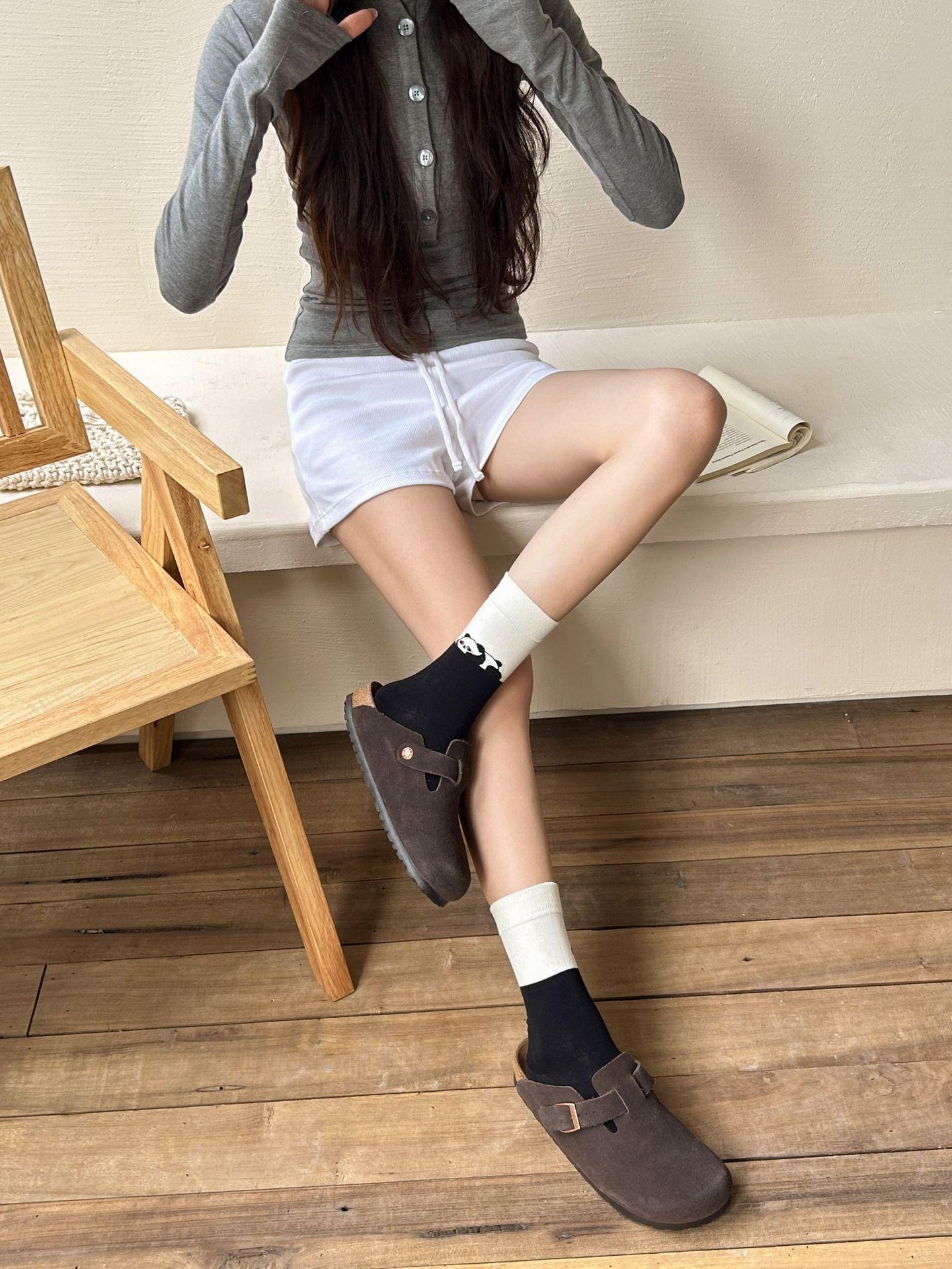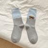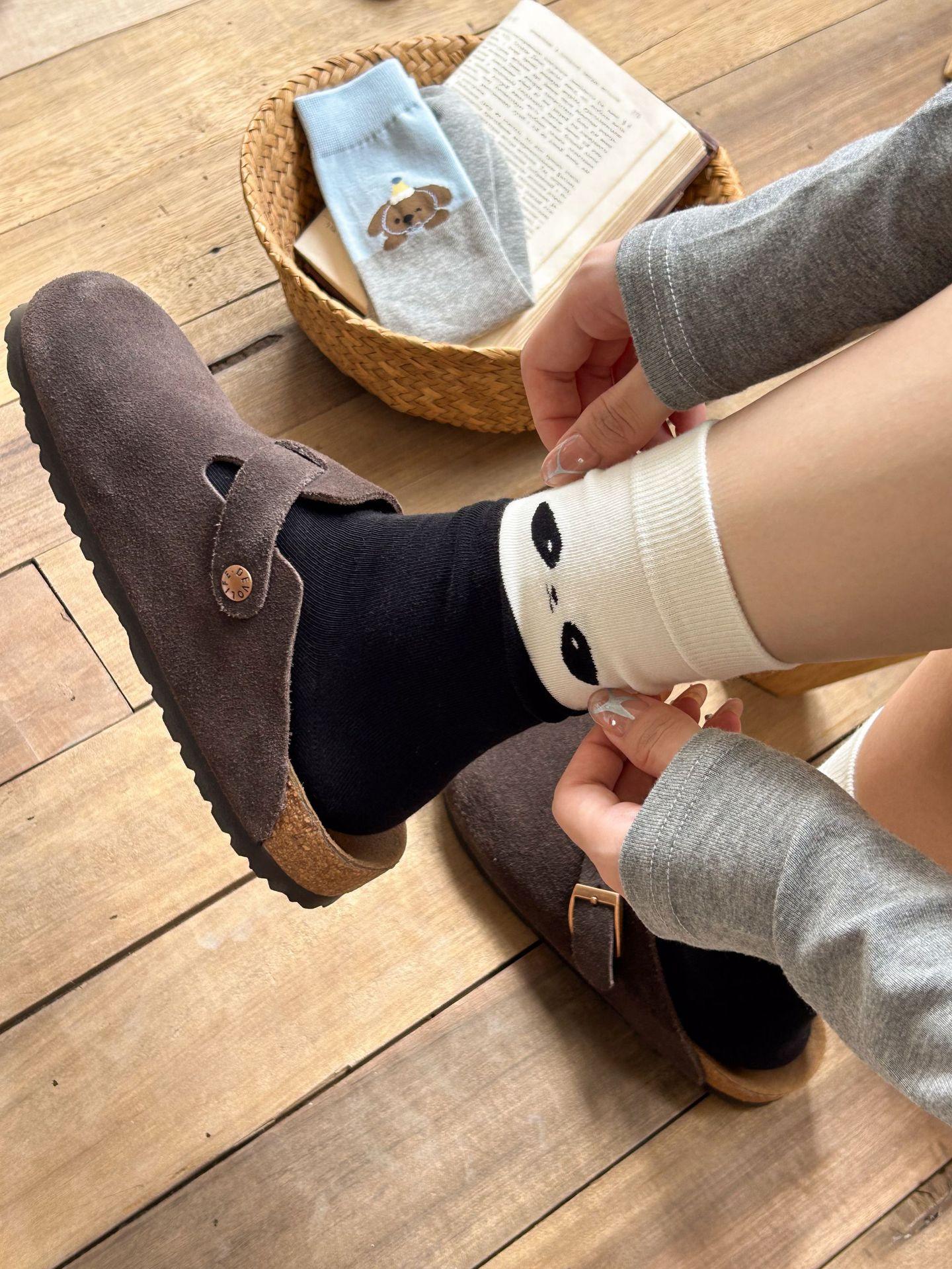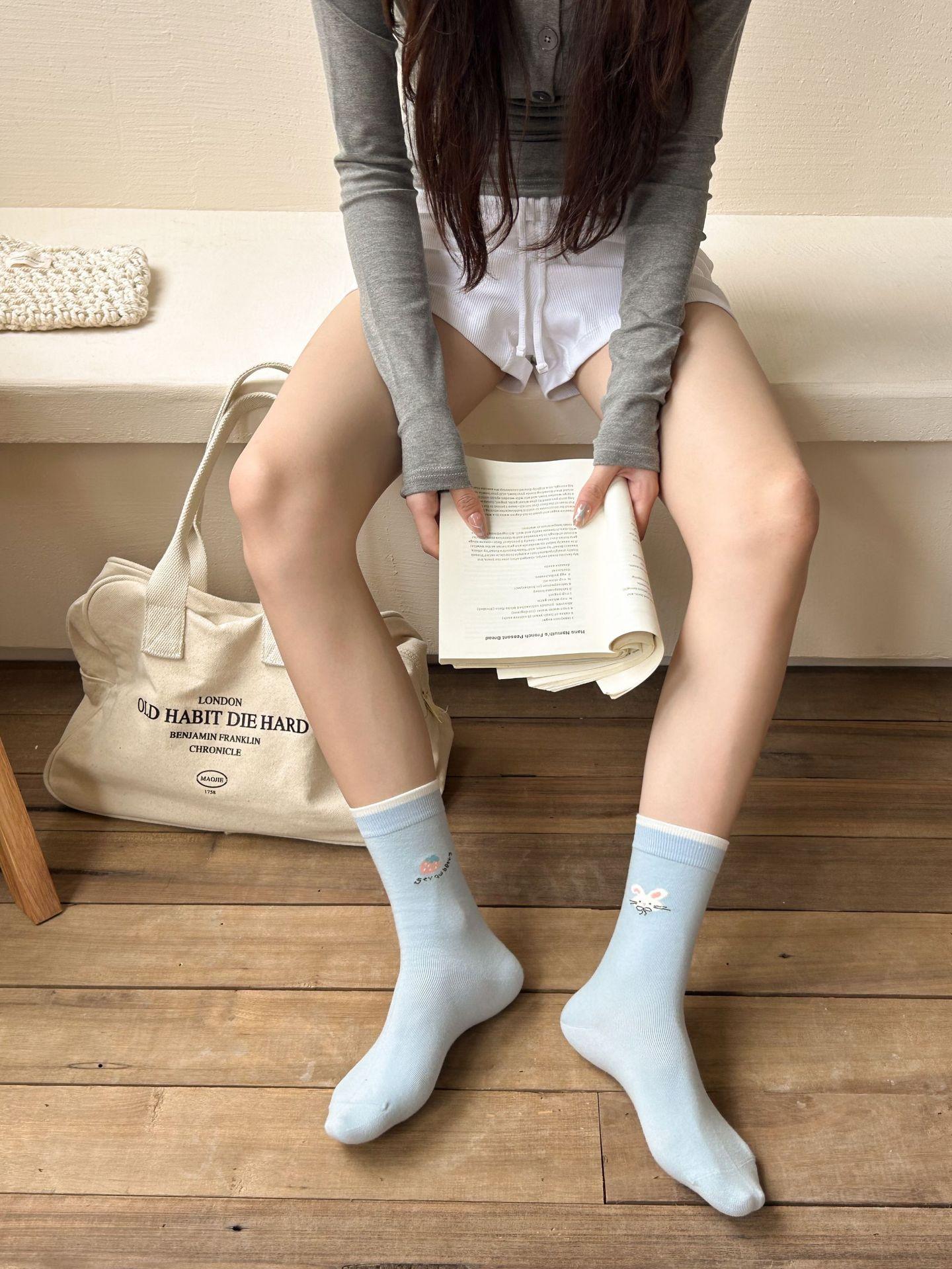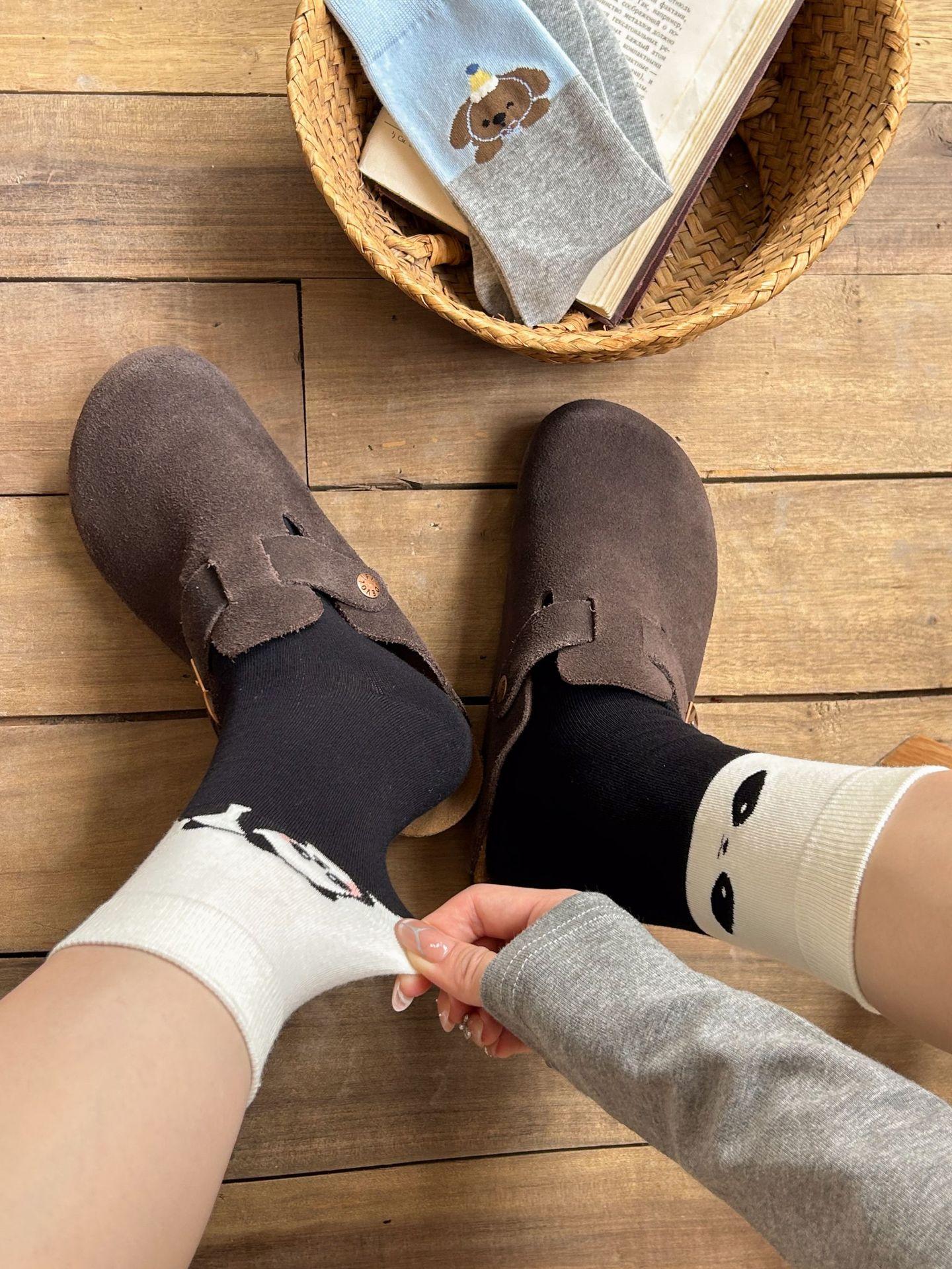 Calcetines de algodón puro para mujer otoño e invierno estilo ins coreano bloque de color suave caricatura calcetines de felpa estilo lindo versátil estilo AB calcetines de media caña